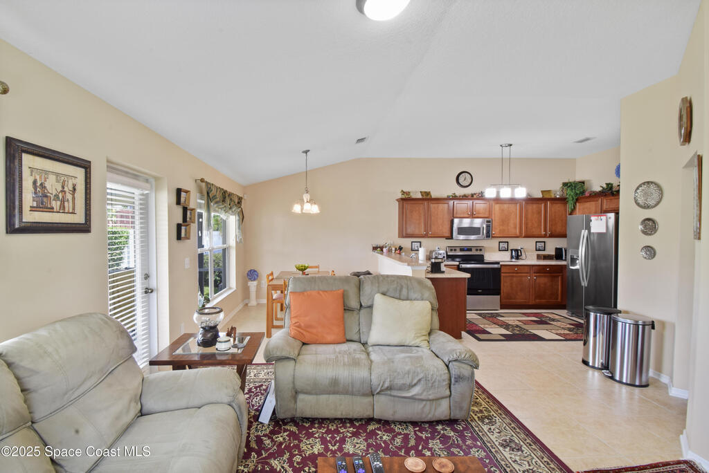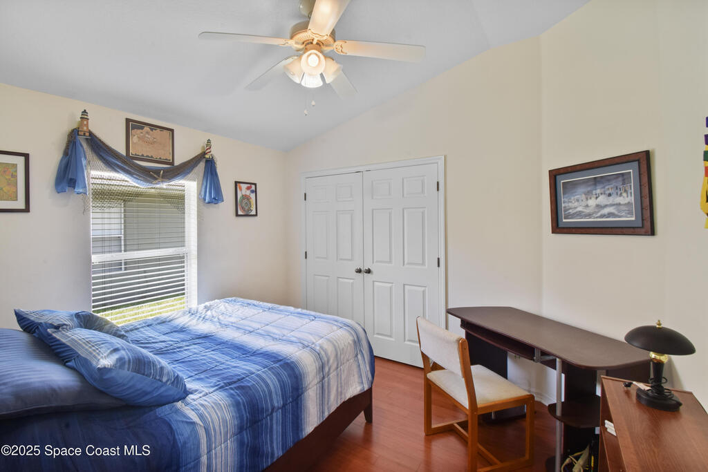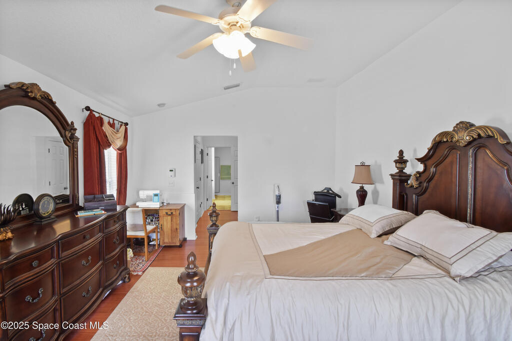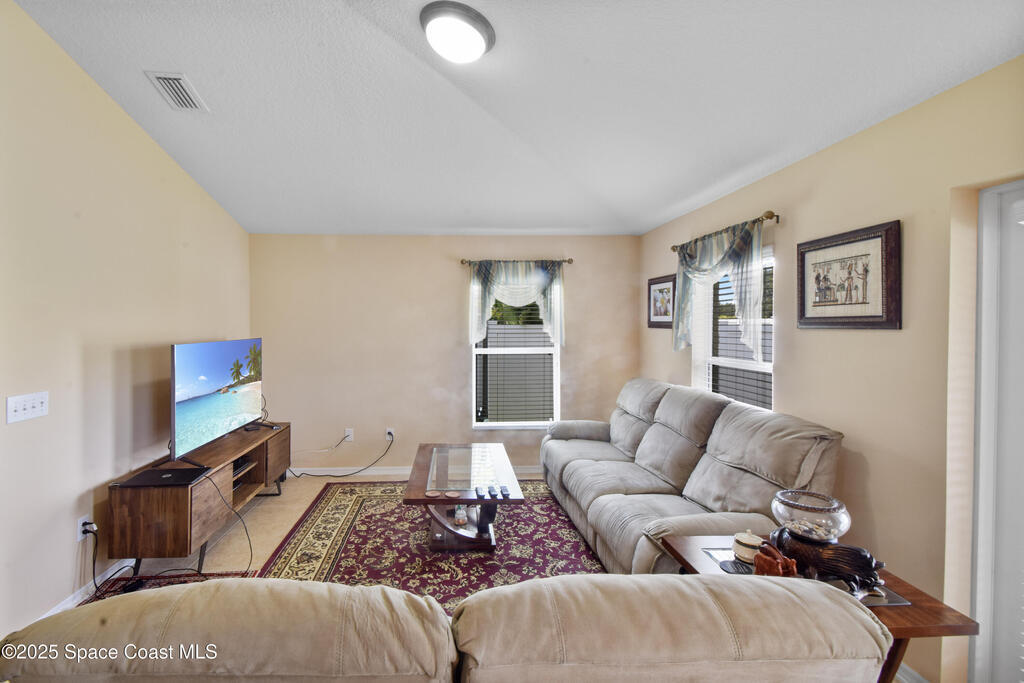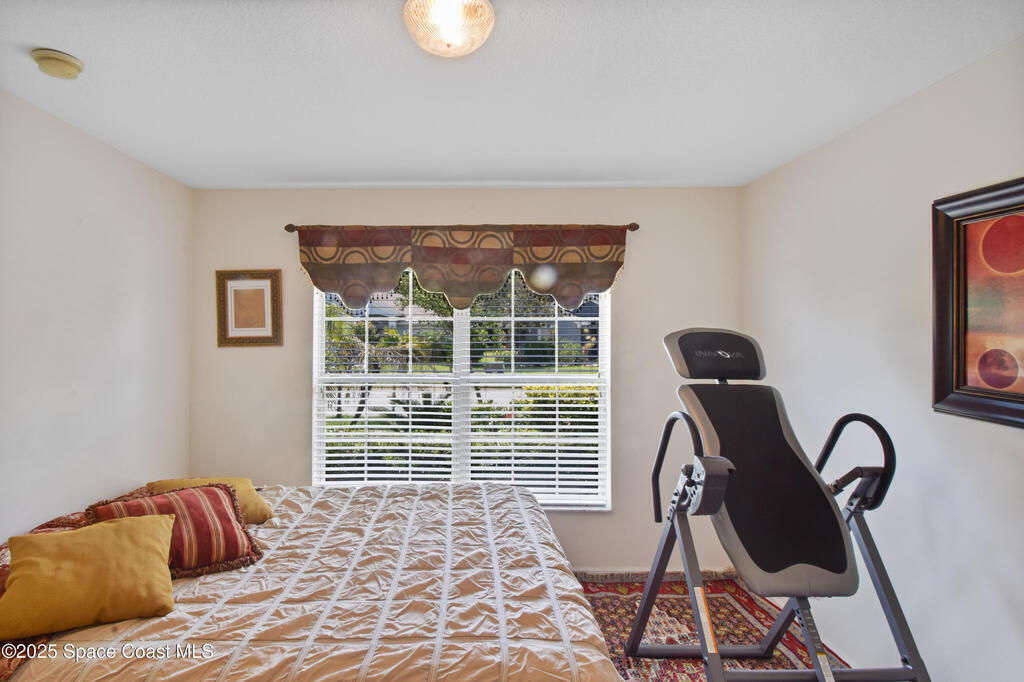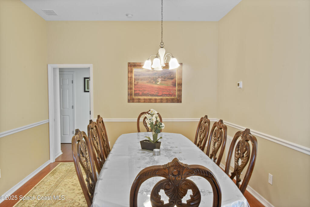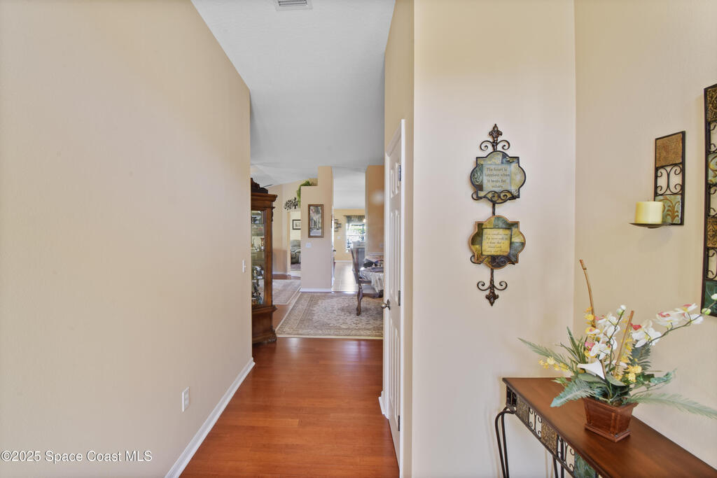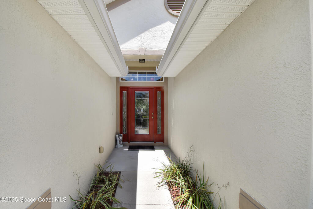Pristinely maintained home in the gated community of Capron Ridge in Viera! This spacious residence offers high ceilings, a split floor plan, two living rooms, a 2024 roof, 2019 AC, and an indoor laundry room with washer and dryer included. Home features plantation-style blinds and window treatments throughout. The private master suite has a dedicated entry hallway, his-and-hers closets, and a luxurious en suite with a walk-in shower, soaking tub, and dual-sink vanity. Some seller updates include replacing sprinkler compressor, controls and heads, Whirlpool electric range and dishwasher, exterior paint, and a replaced air handler fan motor (7/25). Enjoy the vaulted, screened-in porch and a fenced backyard with no rear neighbor. Updated garage motor includes IQ WiFi. Sidewalks throughout the neighborhood. Just a short walk to the pool, clubhouse, and basketball court. Schedule your showing today!