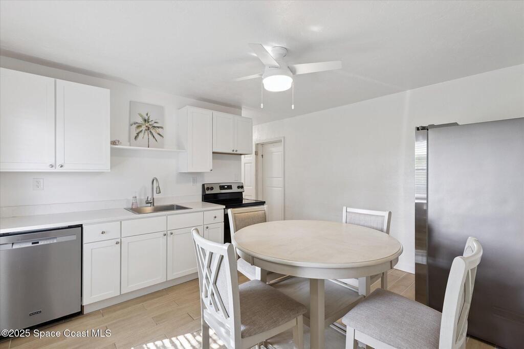 Live the ultimate Cocoa Beach lifestyle on Florida's beautiful Space Coast! This unique property at 104 W Osceola is just a short walk to the beach and has been thoughtfully converted from a single-family home into a flexible duplex, offering two separate 2 bed/1 bath units--ideal for full-time living with rental income, a vacation home with guest/in-law suite, or multi-generational living.Enjoy peace of mind with a 220-mph rated metal roof and solar panels that produce near $0 electric bills. The home features tile flooring throughout and two beautifully renovated bathrooms with custom walk-in showers--plus a soaking tub in one for added comfort. Located just minutes from the Cocoa Beach Pier, Ron Jon Surf Shop, dining, and entertainment, this home puts you in the heart of coastal living. Whether you're seeking a primary residence, a vacation getaway, or a smart investment, this Cocoa Beach gem checks every box.