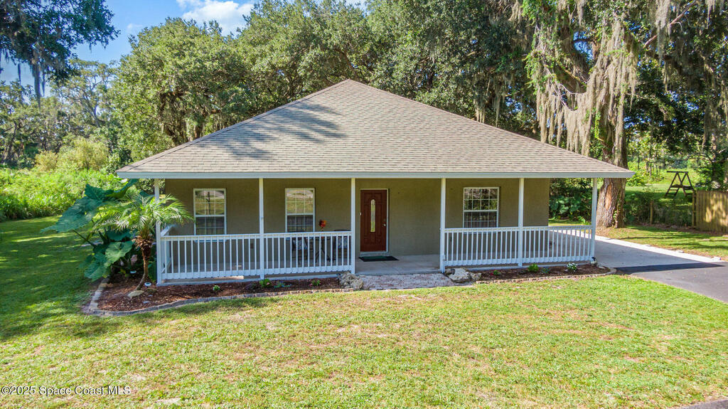 Tucked away in a serene country setting, this elegant home rests on just under an acre of beautifully wooded land--offering the perfect blend of privacy, peace, and purpose. The expansive lot provides ample space to add a pool, workshop, or create the garden of your dreams. Step into a thoughtfully remodeled kitchen adorned with granite countertops, a custom backsplash, and gleaming stainless steel appliances. The primary suite is a private retreat, featuring a spacious layout, a luxurious walk-in shower, and a corner soaking tub. Two additional bedrooms and a refined guest bath offer comfort for family or guests. Unwind on the wide, covered front porch that stretches the full width of the home--ideal for rocking chairs, coffee at sunrise, or quiet country evenings. Sophisticated rural living at its finest.