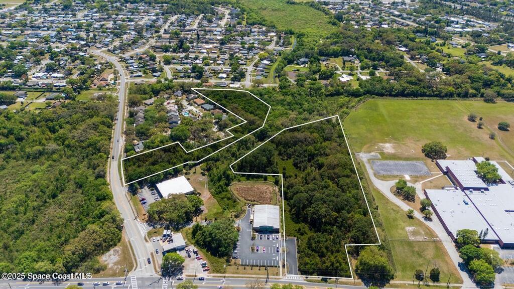 This prime 10.18+/- acre corner parcel at Dairy Road and Singleton Avenue in Titusville offers an exceptional opportunity for commercial or mixed-use development in one of the most rapidly expanding areas of North Brevard. Zoned Community Commercial, the site permits a wide variety of uses including retail, medical, office, QSR, daycare, schools, assisted living, self-storage, and mixed-use residential/commercial development. The property is fully surveyed, with approximately 3.5 acres of field-verified wetlands and 5-6 acres of usable uplands, offering strong flexibility for layout and design. Water/ sewer/ electric are available along both road frontages, and a shared driveway is already in place with the adjacent retail store. Located within walking distance of Oak Park Elementary, Madison Middle School, Astronaut High School, and Eastern Florida State College, the site is ideally situated to serve both residential & student populations. Adjacent to a busy Winn-Dixie shopping plaza.