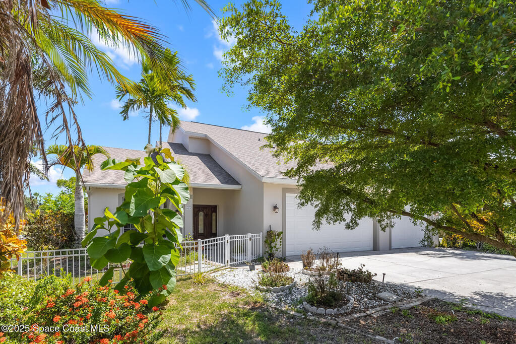Experience coastal living in this pristine 4-bedroom Cape Canaveral concrete home! Featuring a 2022 roof, 2020 AC, freshly painted interiors, tile floors, vaulted ceilings, and abundant light. Sunny kitchen boasts newer Granite countertops & garden window. Master offers Jacuzzi, river views, and his and hers closet. Flexible layout: 2 beds/1.5 baths down, 2 beds/master/office up.Enjoy screened patio, deck, and incredible rooftop deck. This riverview tropical paradise, on a quiet cul-de-sac with Manatee Park as its backyard. Marvel at panoramic views of ships, river, parks, and rocket launches from your balconies! Close to the beach. Enjoy rapid access to Orlando/Disney (Beachline 2 mins), Port Canaveral & Cocoa Beach Pier (5 mins). Includes 3-car garage. Move-in ready comfort, style, and an unbeatable location!