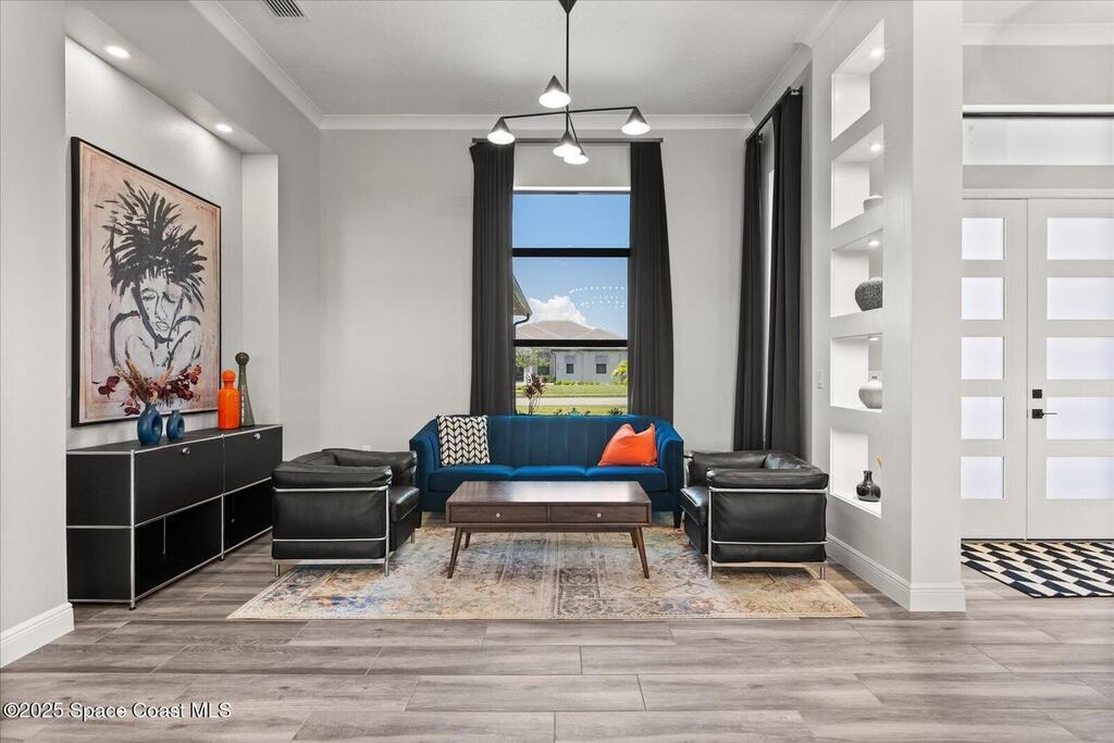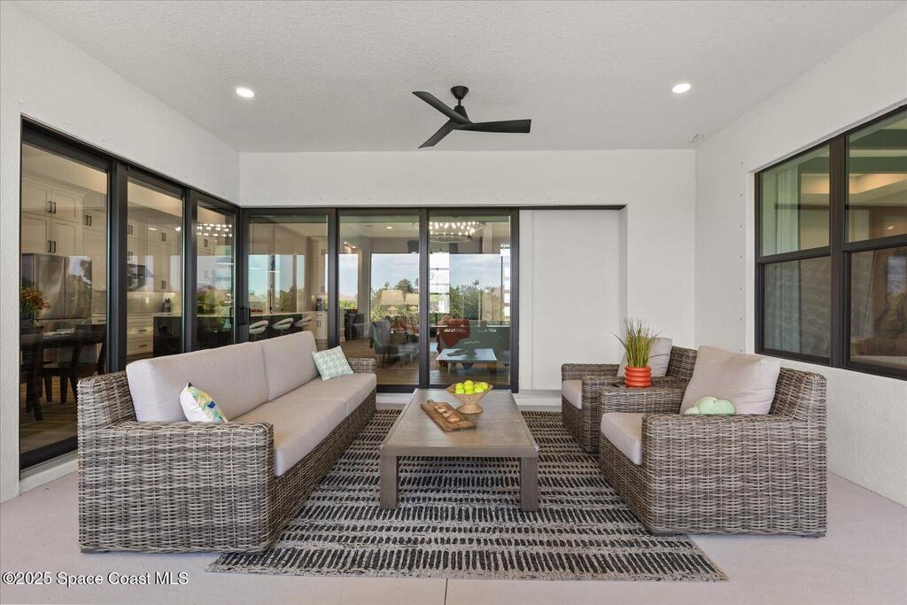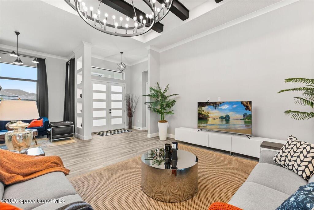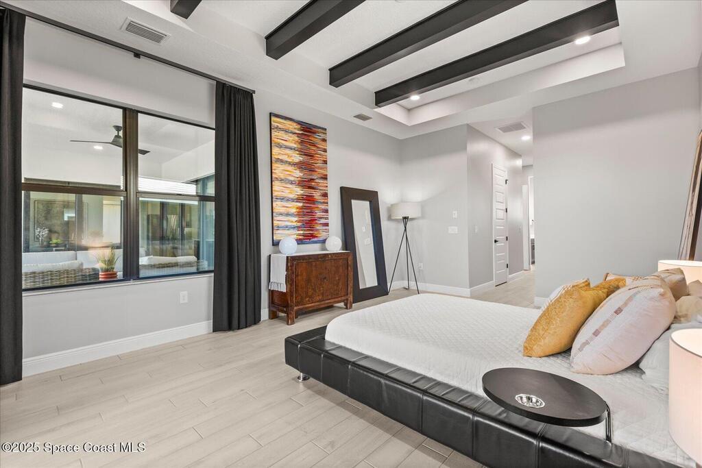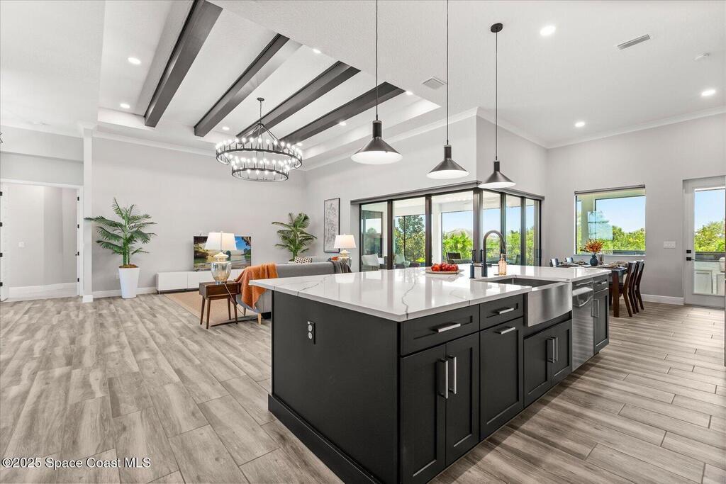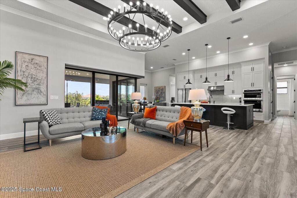 Live the Lake Washington lifestyle in this one-of-a-kind Lifestyle-built beauty. Tucked inside an exclusive gated Enclave Community is the perfect blend of Florida luxury and laid-back comfort. From the moment you step through the double doors, you'll be wowed by the soaring 12-foot ceilings, exposed faux wood beams, and open, airy layout that draws you straight to the lakefront views. The heart of the home is the expansive great room with a wall of disappearing sliders that make the corner of the house feel like it melts into the outdoors. Step onto the oversized screened patio with a full Summer Kitchen--ideal for relaxing evenings or hosting game-day cookouts with a lake breeze. The kitchen? A dream. Designed for both function and beauty, it features a massive quartz island, custom cabinetry, and a walk-in pantry with built-in organizers to keep life running smoothly. Thoughtful architectural details, elegant finishes, and a true indoor-outdoor flow make this home perfect!