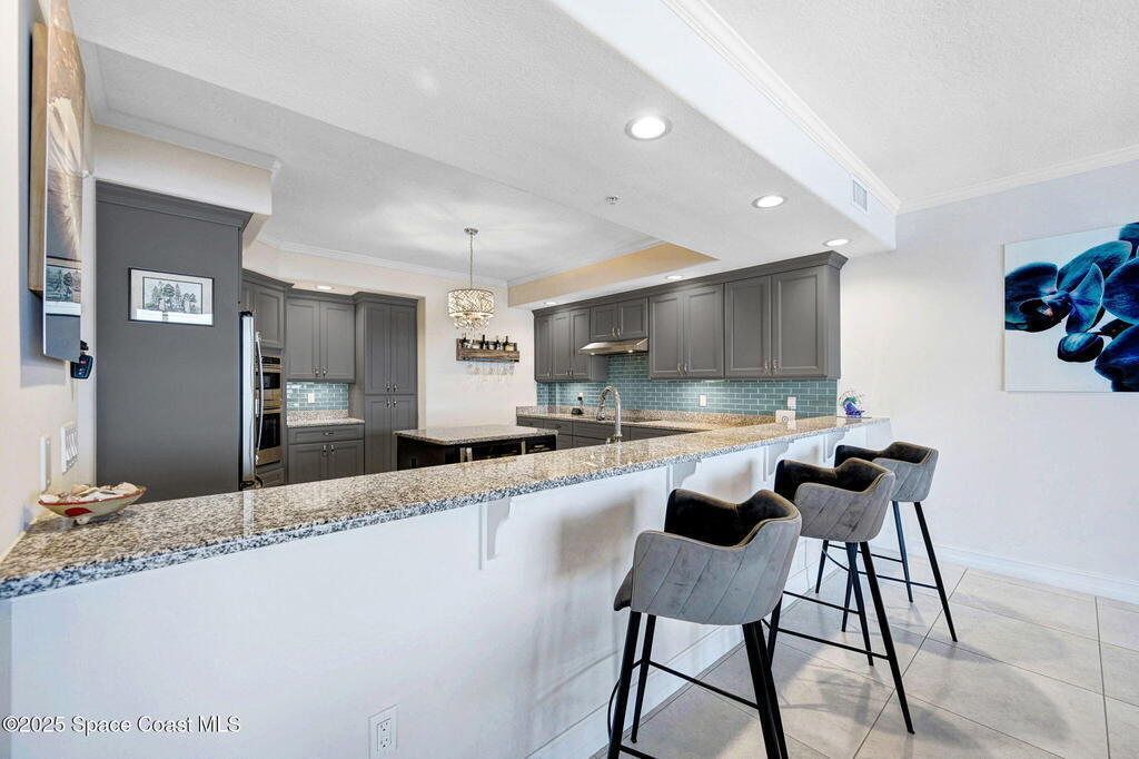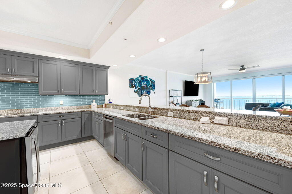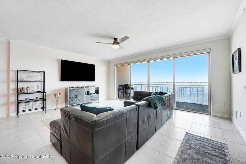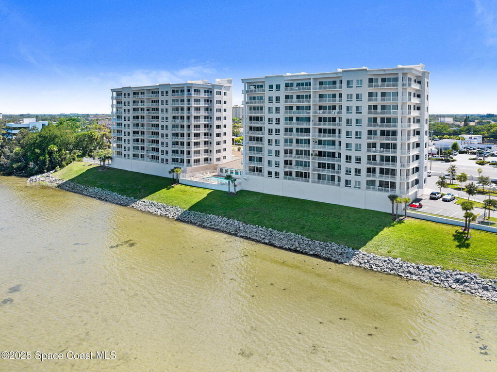Welcome to MODERN RIVERFRONT living in a SUPERSTRUCTURE! Experience ease and comfort of ideal condo ownership in a 4-year-old new construction CEMENT FORTRESS with none of the concerns or expenses of older buildings. This 3 BEDROOM, 3 FULL BATH residence on the 6th FLOOR is GORGEOUS and comes with a 1-CAR ATTACHED GARAGE. Along with a MILLION DOLLAR VIEW overlooking the INDIAN RIVER, and a HUGE BALCONY from which to enjoy it, this home features a designer kitchen with EUROPEAN CABINETRY, upgraded appliances, GRANITE countertops, CROWN MOLDING, cordless REMOTE-controlled blinds, CUSTOM CLOSETS, tile throughout (NO CARPET), and a FULL-SIZE LAUNDRY room with storage and sink. All windows and sliders are HURRICANE IMPACT GLASS. The monthly condo fee of $819 is a bargain because it includes HOMEOWNERS INSURANCE, cable TV, INTERNET, maintenance, WATER AND SEWER, management, HEATED POOL, and clubhouse. It's a great CENTRAL LOCATION - only 10 minutes to the BEACH and 50 minutes to ORLANDO.