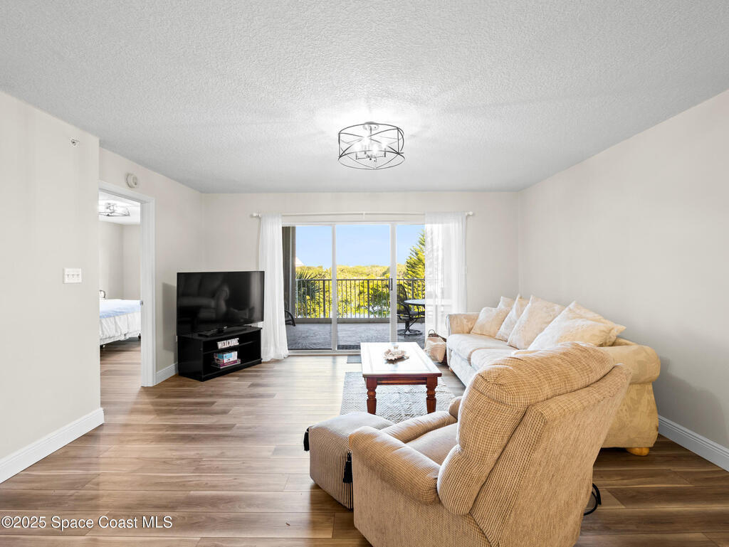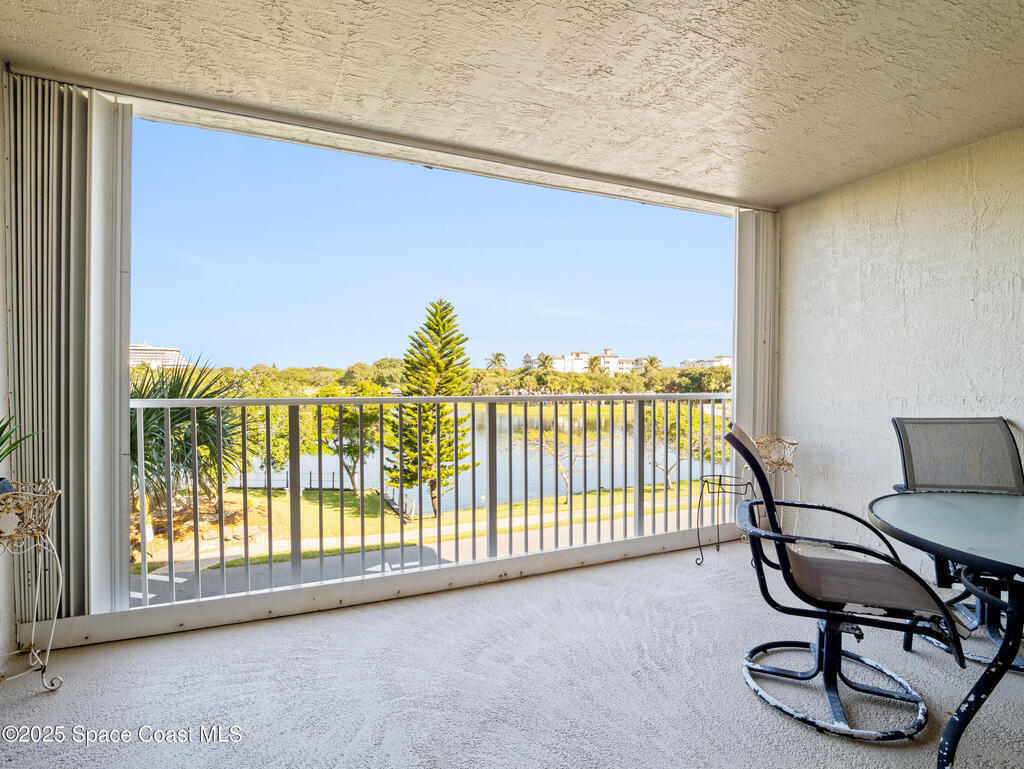 Move right in! Partially furnished 2 bedroom 2 bath beautifully updated condo with serene views of the pond. Enjoy waving bon voyage to the cruise ships leaving the famous Port Canaveral and rocket launches from your 3rd floor balcony. Spacious floorplan with over sized bedrooms with adjoining bathrooms, walk in closets and the primary suite has a tub and slider to the balcony. Kitchen has granite counters, dishwasher and built in microwave, large pantry and breakfast bar. Inside laundry closet, owners closet and ground floor garage provide amble storage. Easy maintenance with LVP/tile flooring and hurricane shutters for peace of mind. Gated and updated grounds with private beach access, pool, exercise room, car wash station and clubhouse. Active community with socials, pickleball, tennis and acqua aerobics. 35 minutes to Orlando airport, 5 minutes to the Cruise lines, restaurants, only a 5 minute walk to the beach. Let your Florida Condo life begin now!