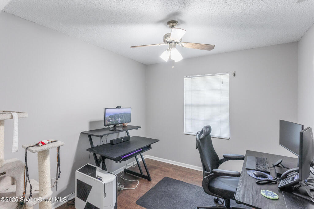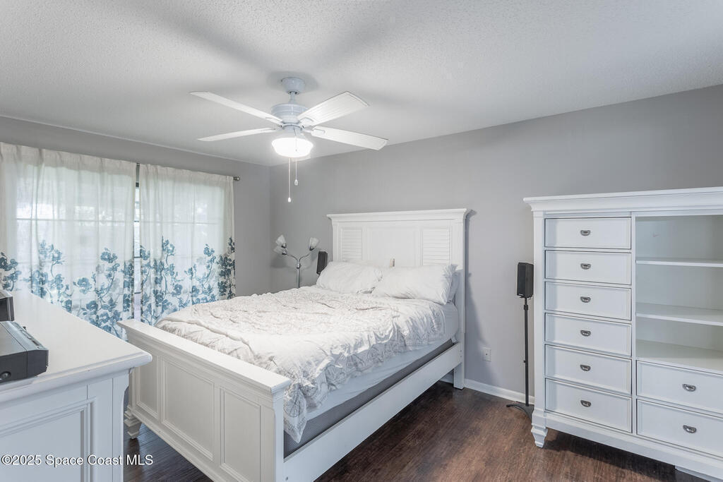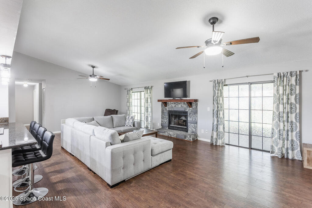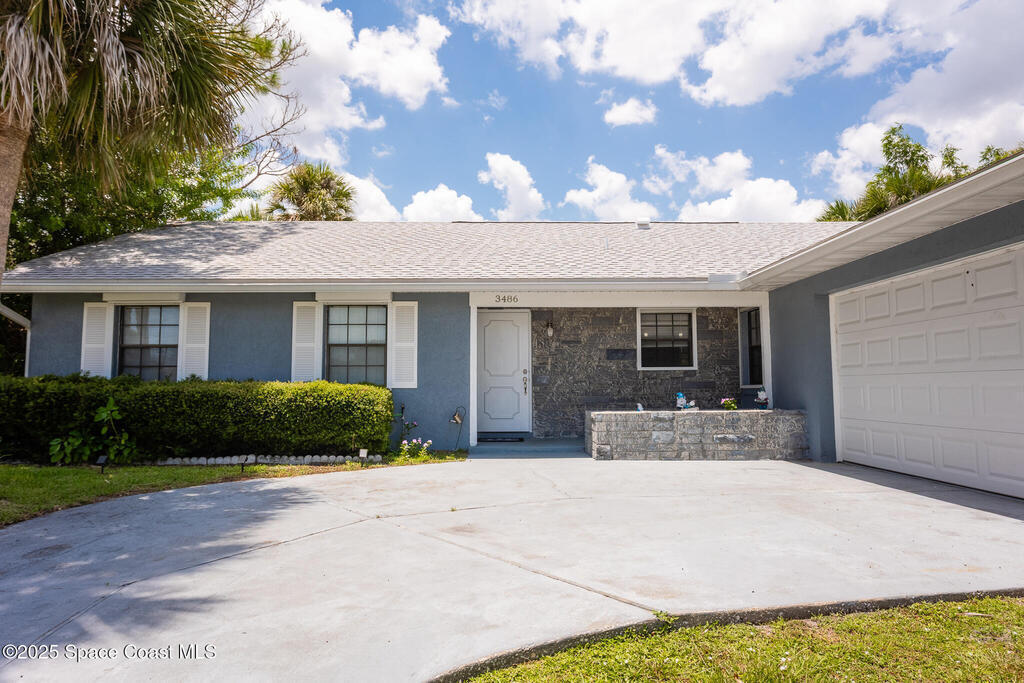 Completed UPDATED 4 bedroom house with 1740 sq ft in the perfect location. Updates include.... brand new kitchen from top to bottom with a huge breakfast bar opening to the living & dining rooms, granite counter tops, stainless steel appliances, new luxury waterproof vinyl flooring & NO CARPET. Both bathrooms updated with walk in shower in the master & double sinks in both bathrooms. NEW ROOF in 2023, water heater only 4 years old & a new hurricane rated garage door. Convenient roll down hurricane shutters, huge private back porch and 3/4 of yard is fenced in & has a fire pit for lots of fun. Light and bright with vault ceilings, wood burning fireplace and freshly painted inside. Double sliders from living room to the porch and sliders from the master to the porch and guest bath has access to the porch as well. One of the best neighborhoods that's super close to Florida Tech and 10-15 minutes from the beach. Corner lot so plenty of space for parking and a super chill HOA.