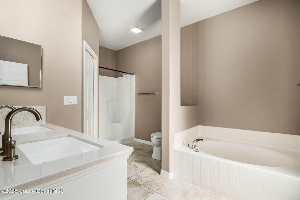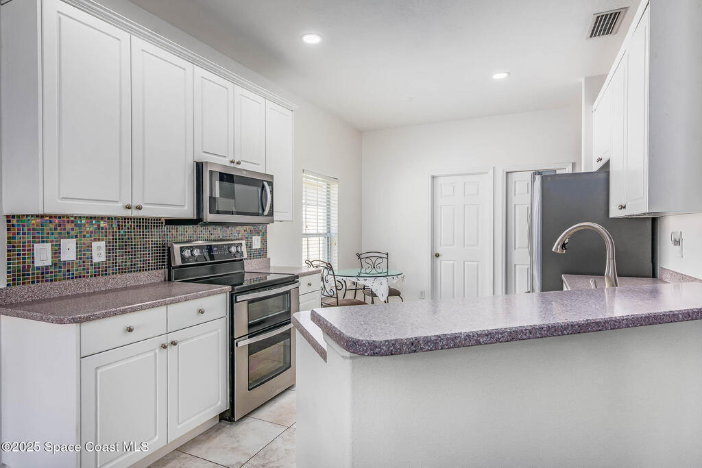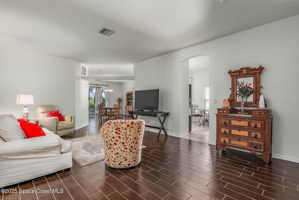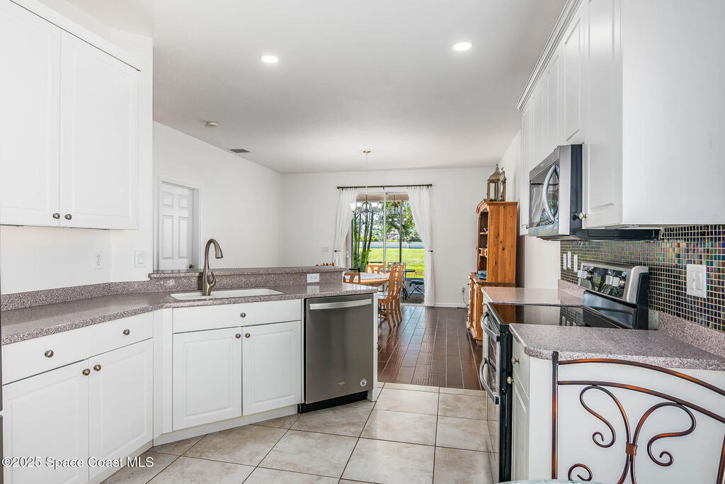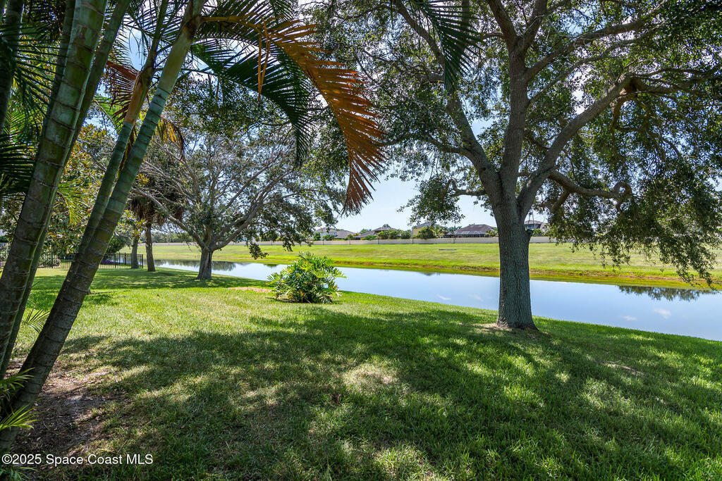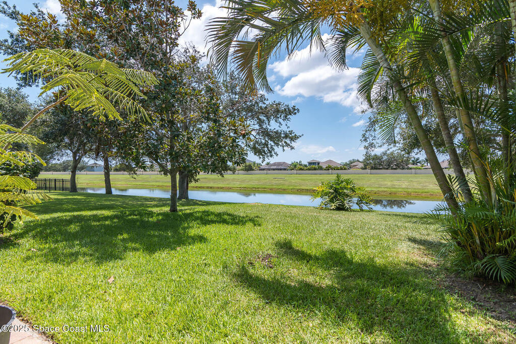 Welcome to this immaculate waterfront home in the heart of West Viera, offering modern updates and effortless living! Enjoy the benefits of a brand-new roof (2023), water heater (2025), interior/exterior painted (2025) & AC (2015). Step inside to an open layout w/ vaulted ceilings, wood-look tile floors, a spacious great room, and a large casual dining area. The kitchen features tall cabinets, matching stainless steel appliances, generous counter space with a breakfast bar, and a huge walk-in pantry. The en-suite offers a tranquil retreat with a walk-in closet, a new vanity with dual sinks, a garden tub, and a separate step-in shower. The guest bathroom also has a new vanity. Sliding doors lead to the screened porch, where you can relax with serene water views and no rear neighbors. A sprinkler system in the front and back keeps the lawn lush year-round. All of this just minutes from top-rated schools, shopping, dining, golf, and parks--in one of Brevard's most desirable neighborhoods.