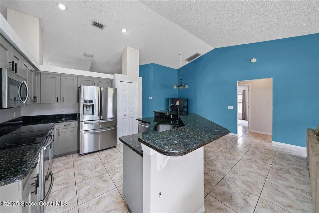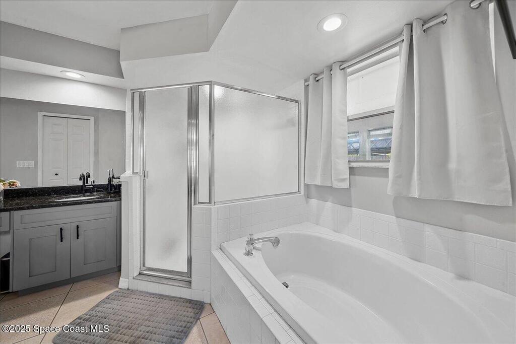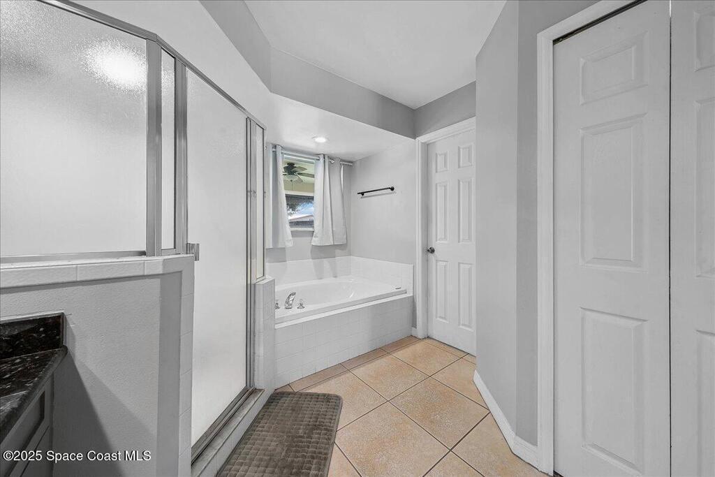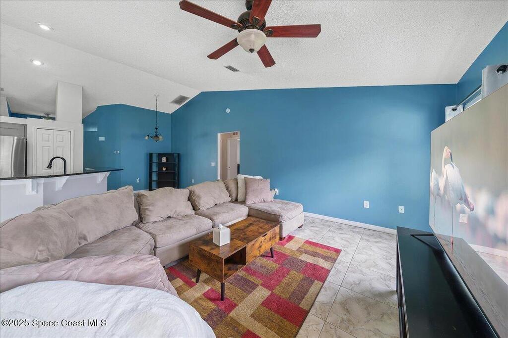 Welcome to this spacious and beautifully maintained 4-bedroom, 2-bathroom home nestled in a quiet, secluded Palm Bay neighborhood. This move-in-ready residence blends style, comfort, and convenience. Inside, you'll find granite countertops in the kitchen and bathrooms, tile flooring throughout the main living areas, and a combination of laminate and carpet in the bedrooms. The large laundry room includes a washer and dryer and provides ample storage. The open layout makes entertaining a breeze. Enjoy outdoor living on the spacious back patio with direct access to a full bathroom -- ideal for gatherings or relaxing evenings. The fully fenced backyard offers privacy and security. Conveniently located just minutes from I-95 and directly across from Hammock Landing, this home puts shopping, dining, and entertainment at your doorstep. Don't miss the opportunity to own this well-maintained gem in one of Palm Bay's most desirable locations!