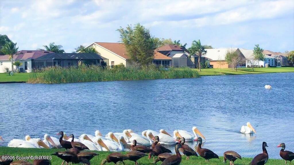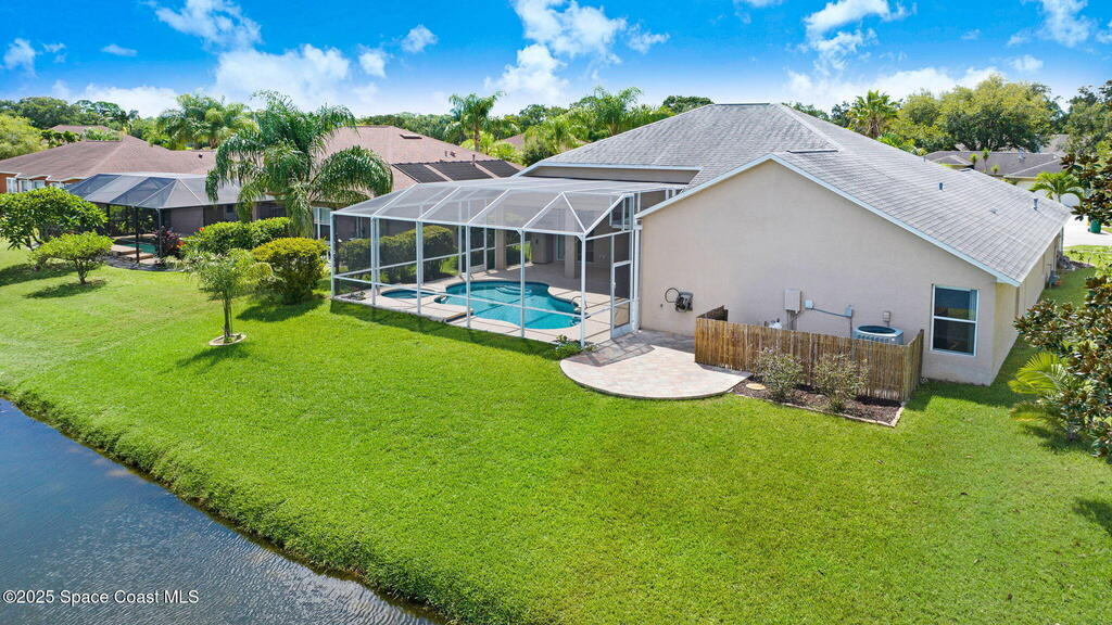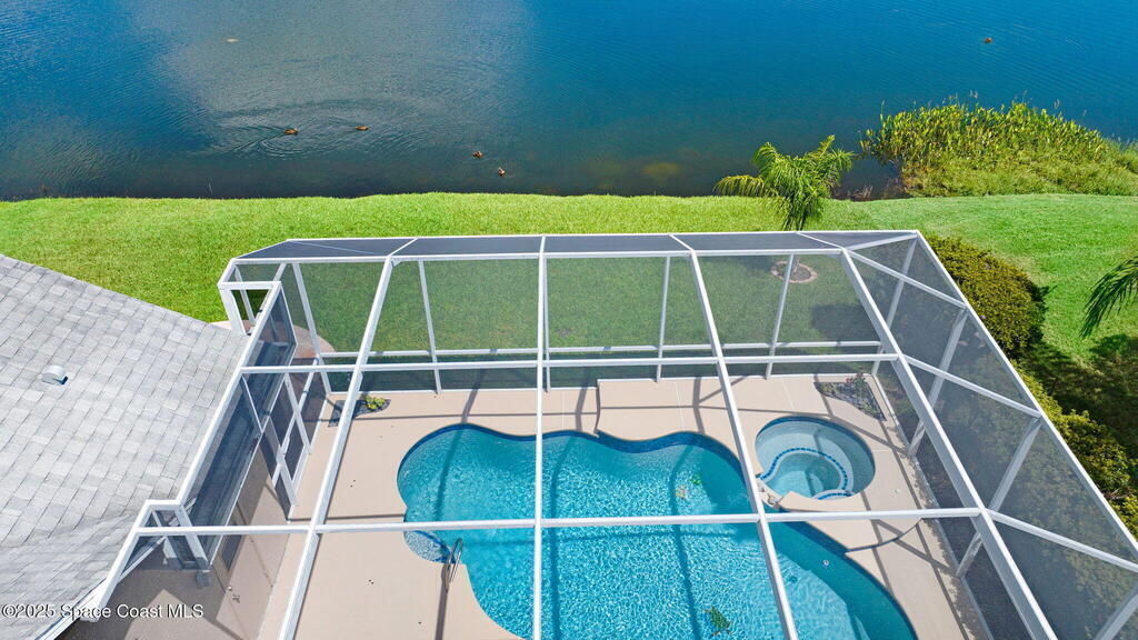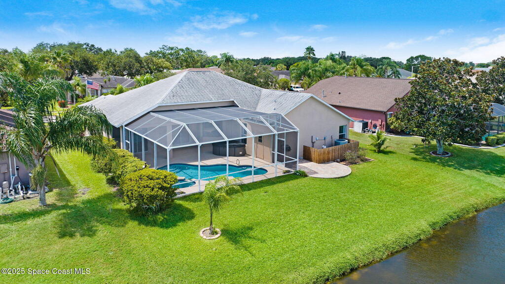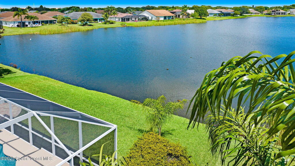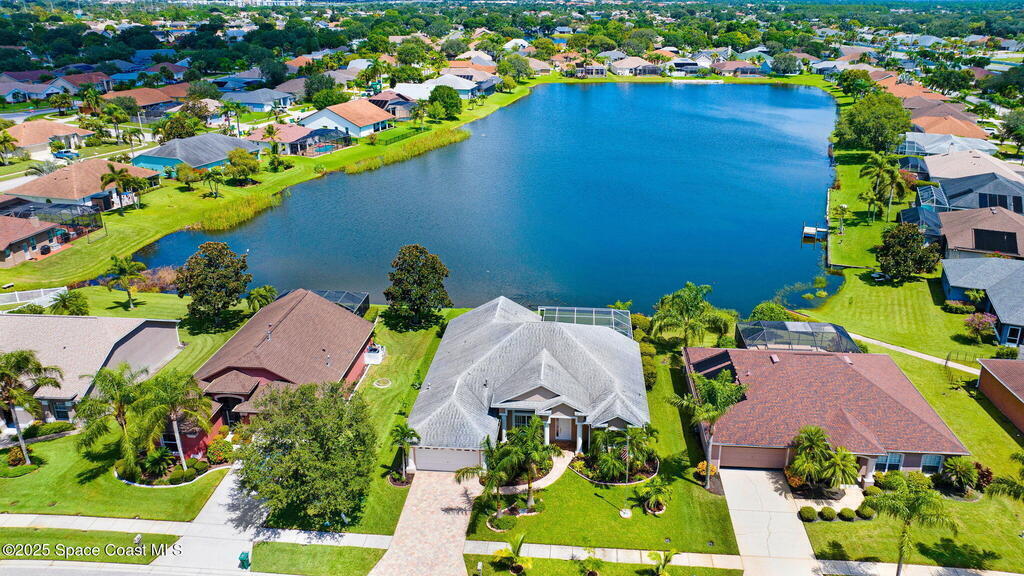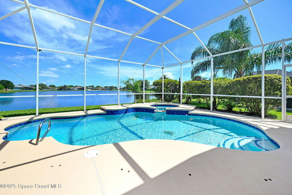 Significant Price Improvement! Experience luxury, comfort and serene lake views in this beautiful Viera retreat. Manicured landscaping and elegant curb appeal sets the stage for what's inside. Soaring ceilings, warm wood-look plank flooring, and tranquil water views greet you at the front door. Formal living and dining areas are perfect for hosting or relaxing in style. At the heart of the home is a chef-inspired kitchen featuring granite counters, a center island, breakfast bar, stainless appliances and a new gas range. Split floor plan with 4th bedroom near pool bath--ideal for guests or a home office. Full-home water filtration, softening system, and instant hot water in the primary bath add luxury and convenience. A perfect blend of indoor comfort and outdoor serenity--now at an exceptional new price!
