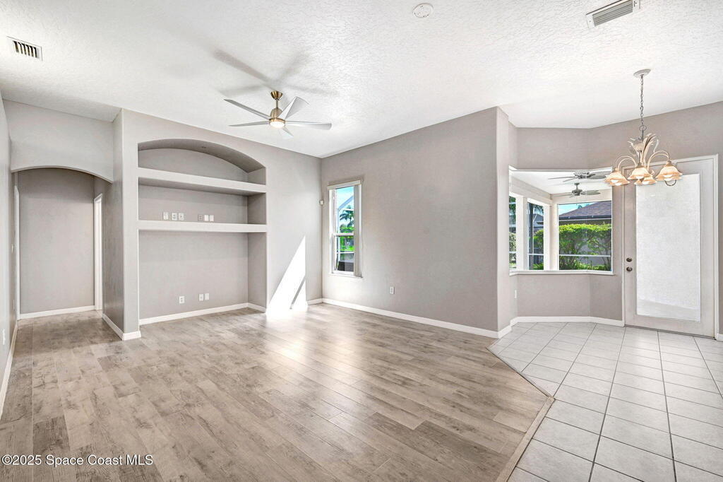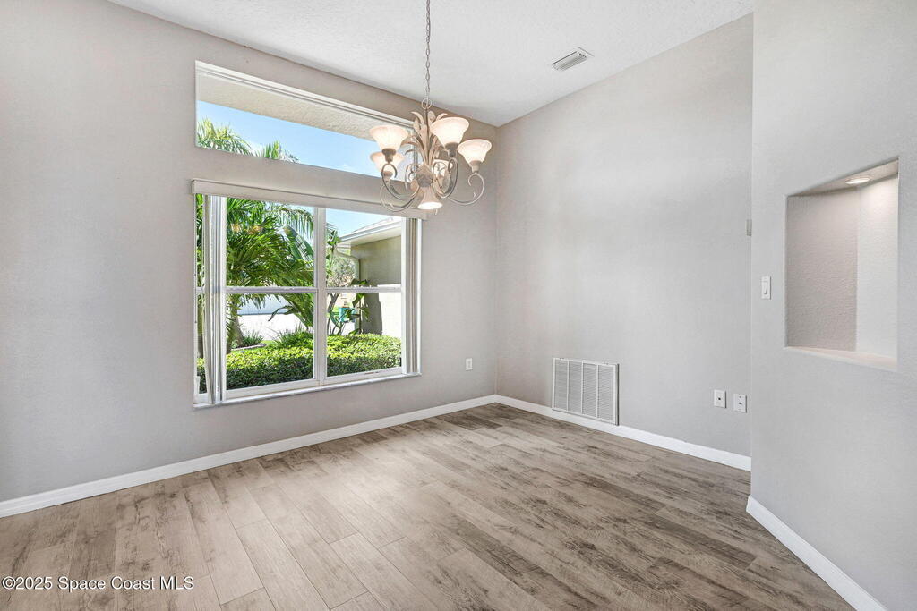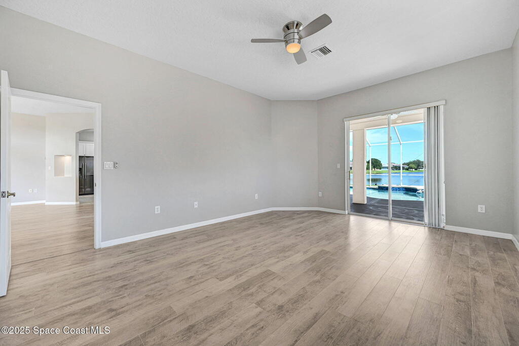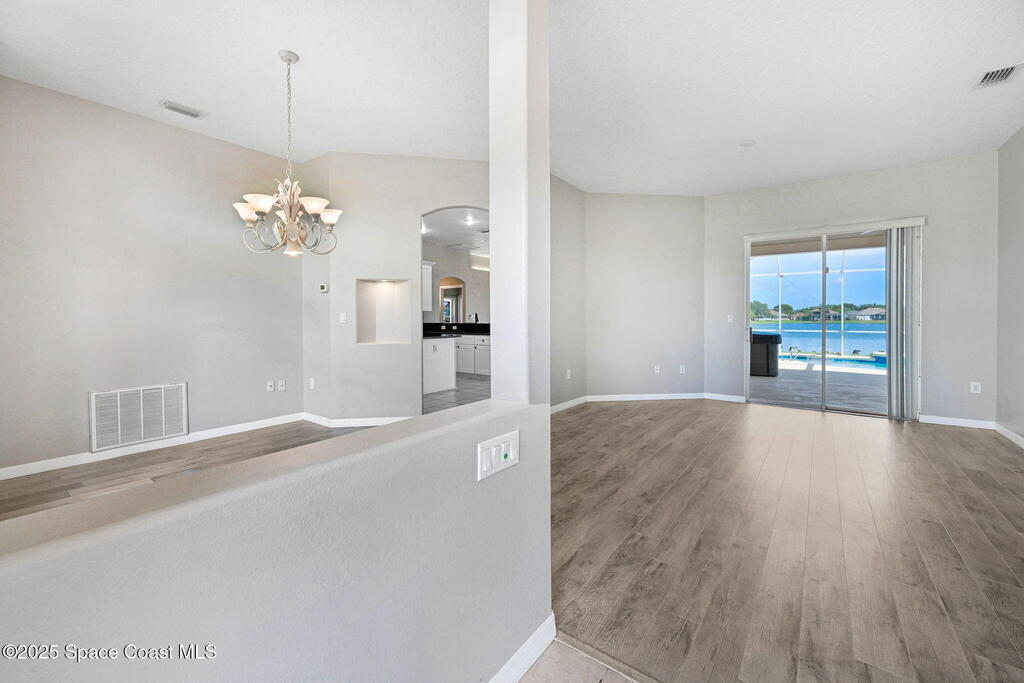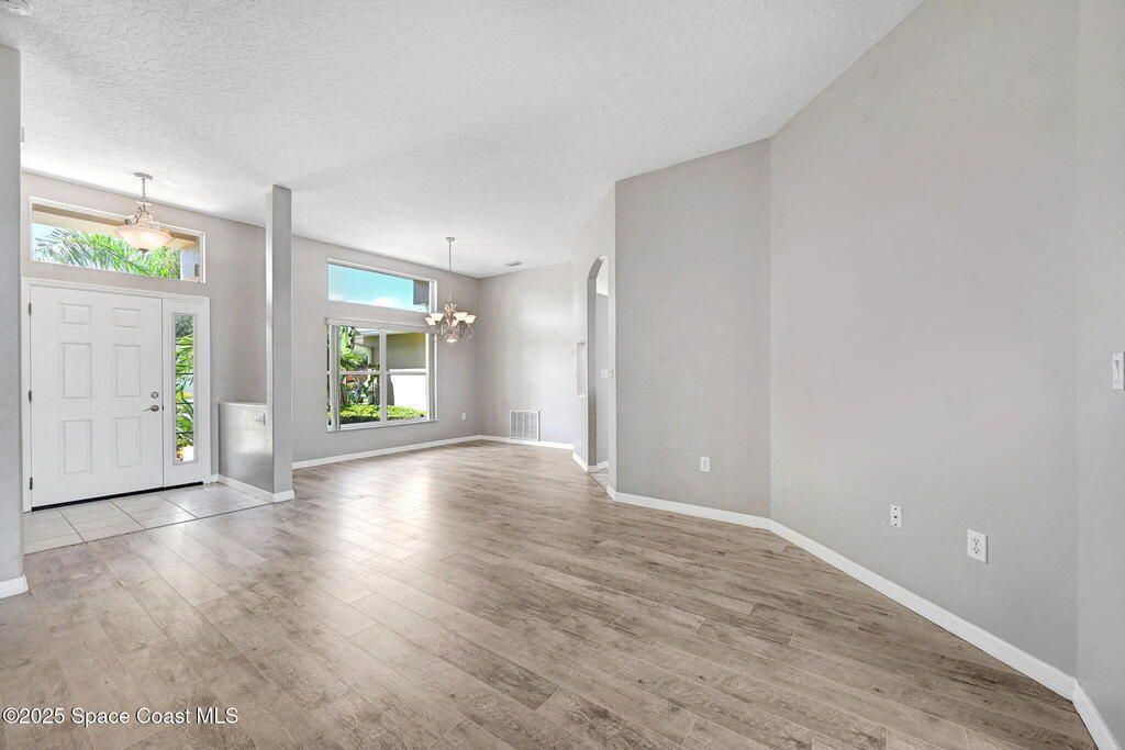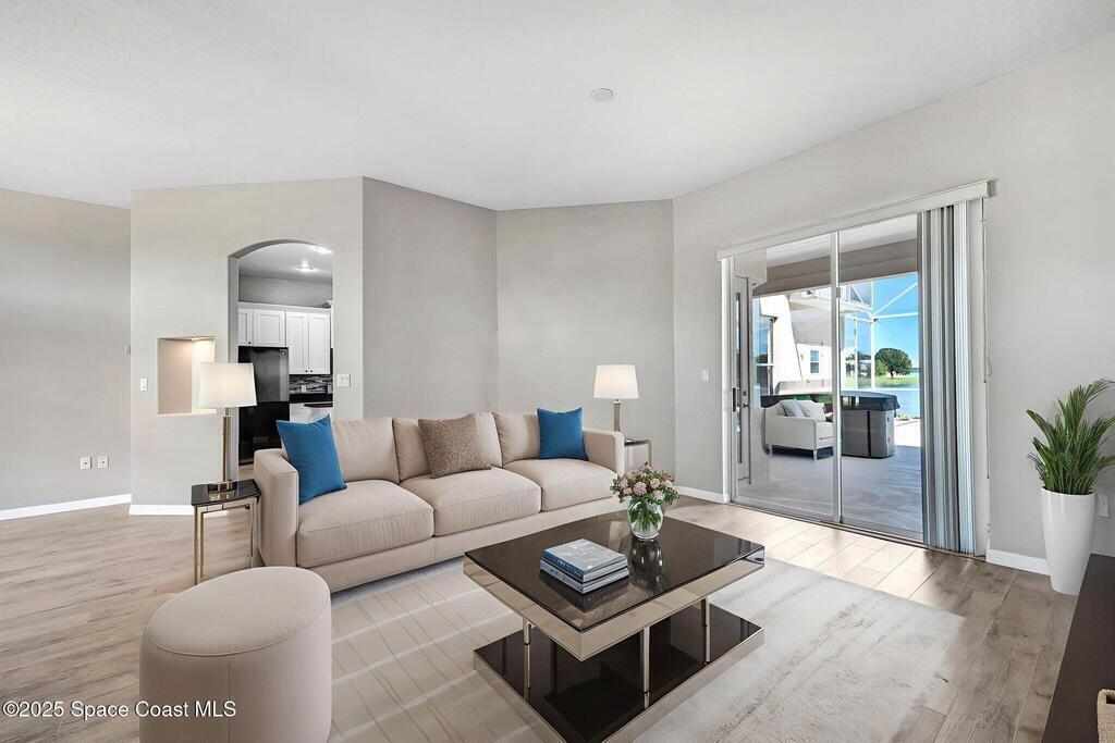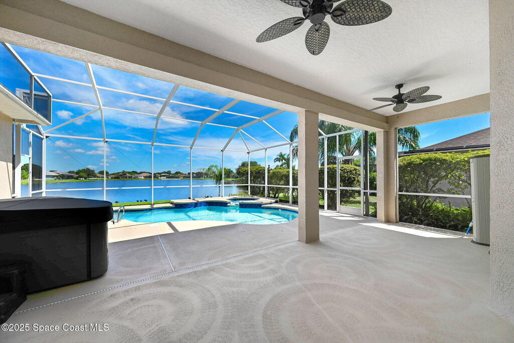 Significant Price Improvement! Experience luxury, comfort and serene lake views in this beautiful Viera retreat. Manicured landscaping and elegant curb appeal sets the stage for what's inside. Soaring ceilings, warm wood-look plank flooring, and tranquil water views greet you at the front door. Formal living and dining areas are perfect for hosting or relaxing in style. At the heart of the home is a chef-inspired kitchen featuring granite counters, a center island, breakfast bar, stainless appliances and a new gas range. Split floor plan with 4th bedroom near pool bath--ideal for guests or a home office. Full-home water filtration, softening system, and instant hot water in the primary bath add luxury and convenience. A perfect blend of indoor comfort and outdoor serenity--now at an exceptional new price!