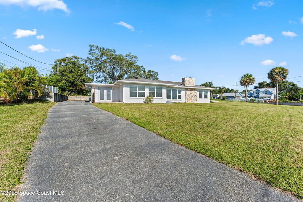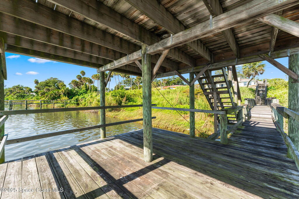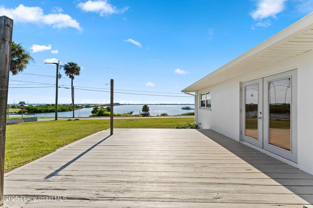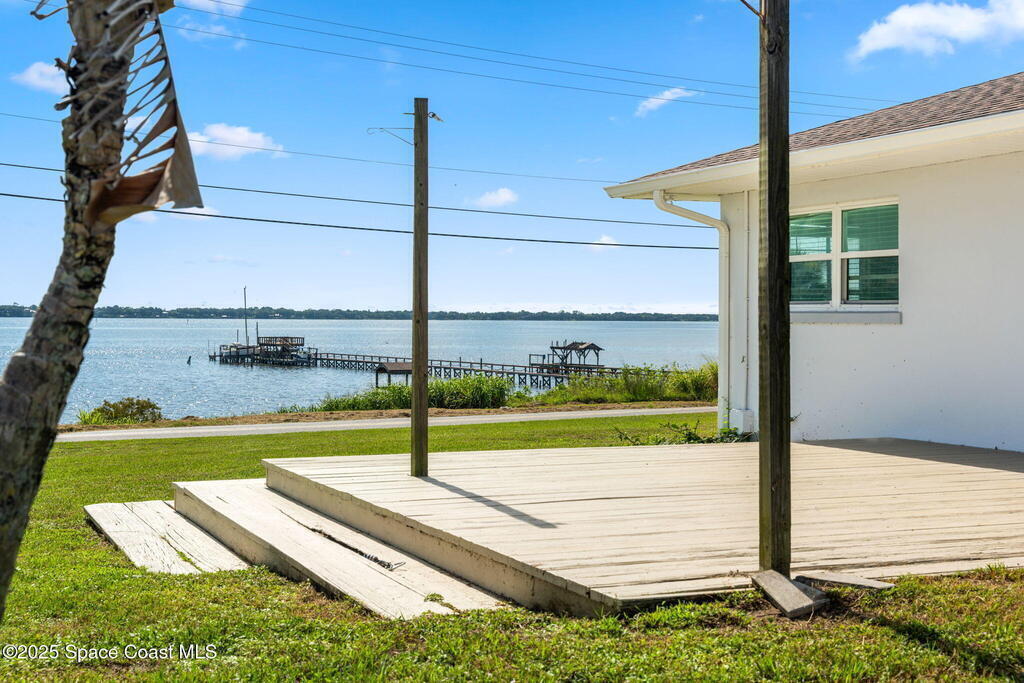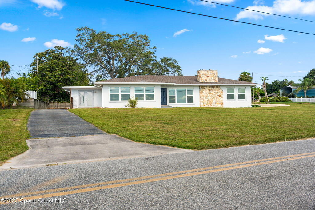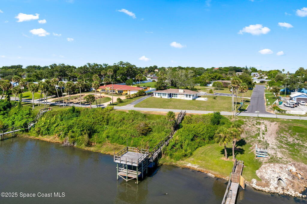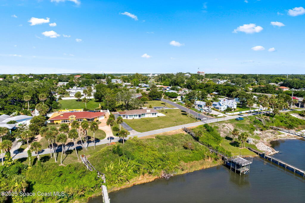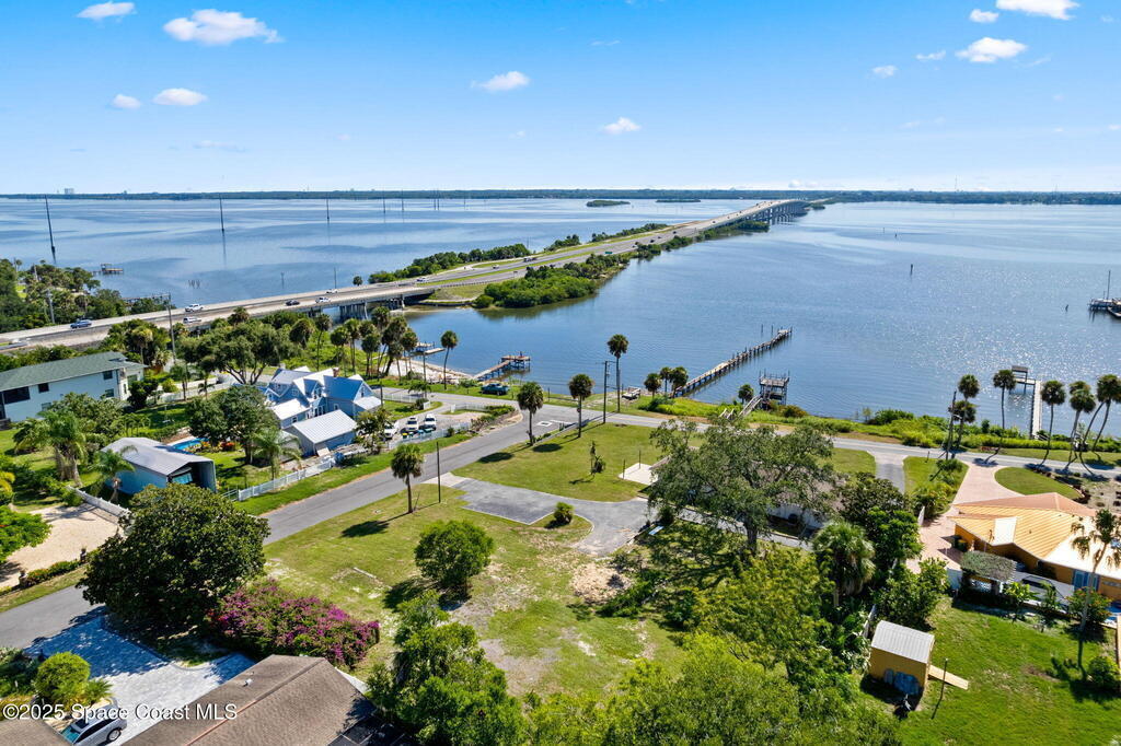 Enjoy an exceptional elevation above the Intracoastal Waterway (Indian River) with sweeping views. This larger home offers a boat dock and observation deck. This property has a whopping 1.12 acres offering nearly limitless potential for additional dwellings, guest house, or expanded living. Situated on a corner lot at desirable Indian River Drive and Sunset Terrace. The home has panoramic views from 2 front bedrooms and living room with fireplace. The in-law/guest room has an additional kitchen and one bonus room has laundry access. This property has so much potential to renovate or build your dream home on a desirable lot. The lot size itself offers the potential for subdivision. Easy access to FL528 to Orlando or the beaches and Port Canaveral just minutes away. AC 2023, HW Heater 2005, modern electrical panel.