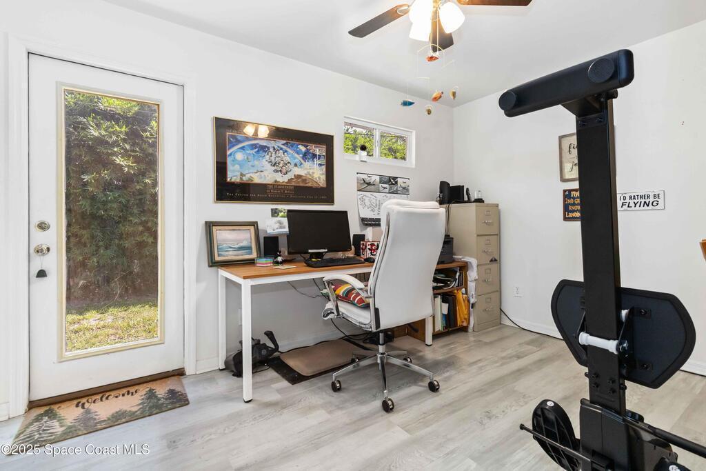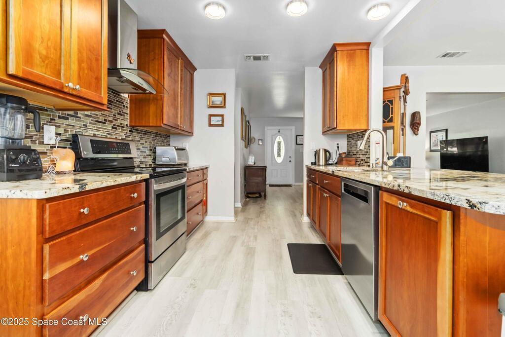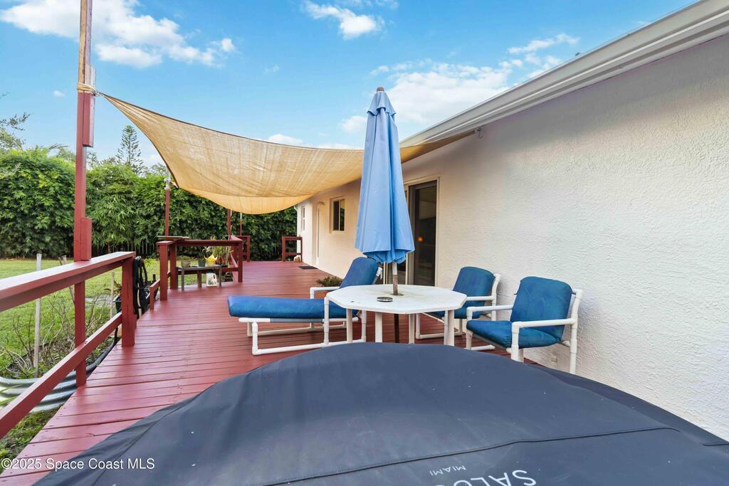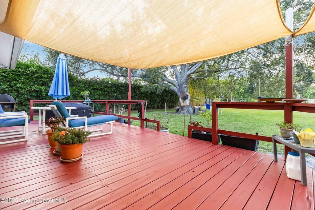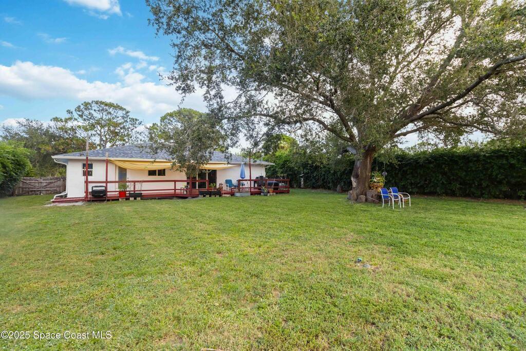 Tucked away near Grant Valkaria, this updated 3 bed, 2.5 bath home offers privacy, space, and direct access to nature! The split floorplan gives everyone room to spread out, with luxury plank flooring throughout the home. The kitchen is a standout with stone counters, a tile backsplash, and plenty of drawer storage. The following have been remodeled in the past 3 years: New kitchen, new roof, new septic, new hot water tank, generator hookup, panel box, updated bathrooms, hurricane doors and windows, newly painted outside, new flooring, newly painted inside, new pressure tank for water system. The oversized 2.5-car garage is a dream for gear, projects, or toys. Out back, enjoy a deck that runs nearly the full width of the home, with serene views of the large backyard. Direct access to trails from the backyard, backing on to wildlife refuge.The Habitat Championship golf course is 5 minutes away! Schedule your tour today!