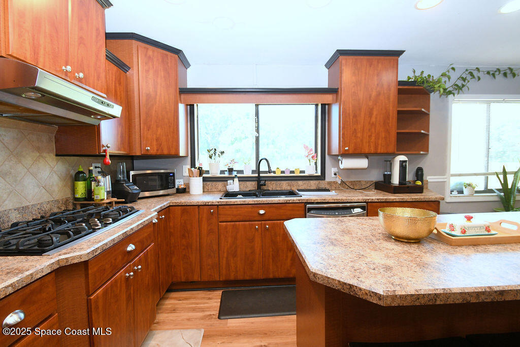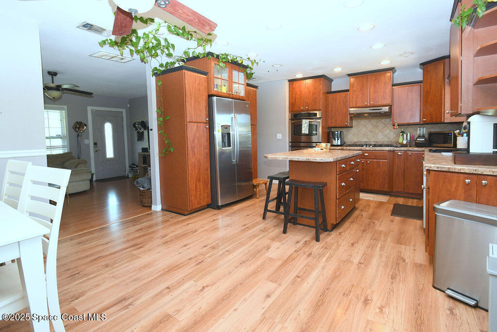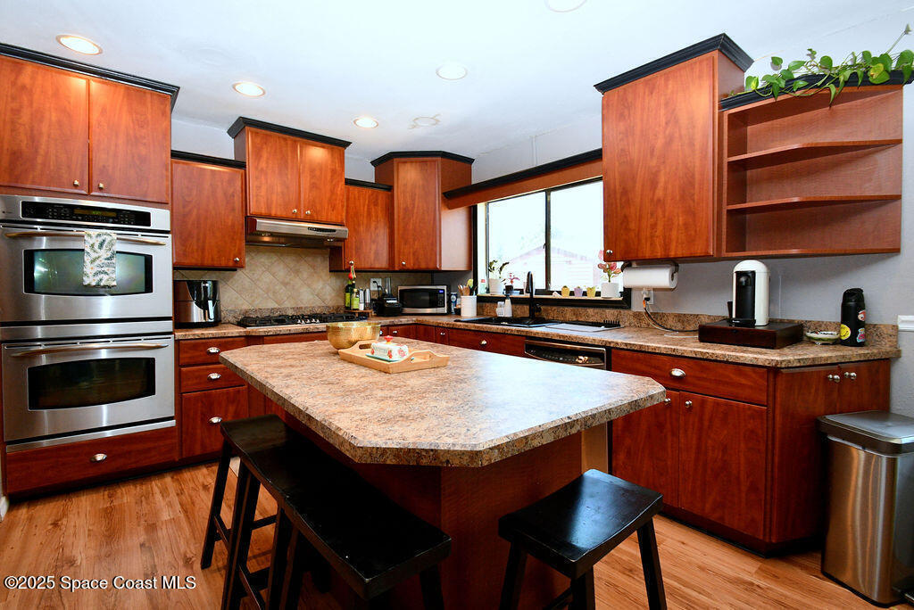 NEW ROOF being installed before closing!! Chef's Dream OR Craftsman's Dream? Under recently appraised value! The custom island kitchen makes this a Chef's dream, and the back yard Shed with Permitted Electricity connection makes an ideal for a Craftsman! The kitchen features electric DOUBLE wall ovens, gas cooktop, and stainless steel appliances. Enjoy tile and laminate flooring throughout--no carpet! The garage has been converted into 3 separate areas including a 12X6 bonus space to the back yard, a 12X9 under-air laundry room, and a 12X8 front garage area for additional storage. AC was replaced in 2021. The fenced backyard offers a great outdoor space to enjoy and make your own. This Cozy home is located in a quiet yet convenient neighborhood street just minutes from schools, parks, shopping, dining, and I-95, offering the perfect blend of convenience, community, and comfort.
