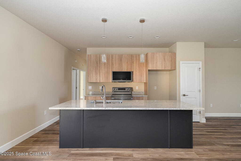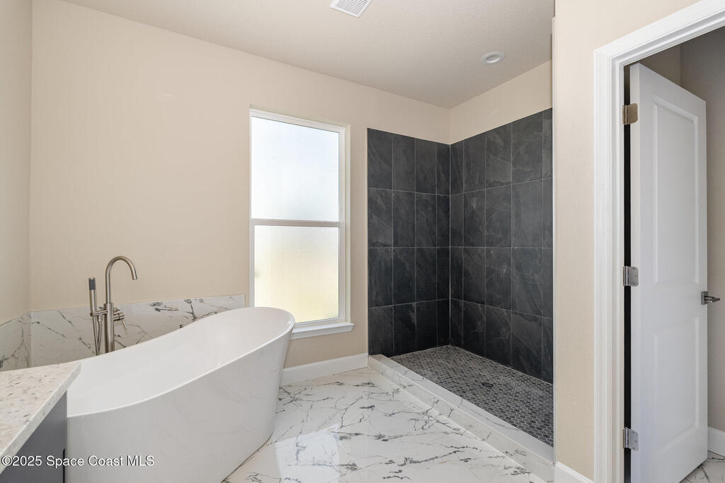 Welcome to this stunning semi custom 4 bedroom 2 full bathroom, NEW construction home. This beautiful concrete block home with warm subtle tones is nestled on .24 of an acre. Spacious open floor plan, expansive 9'4'' high interior ceilings, vinyl plank flooring for easy care and maintenance. Granite countertops, breakfast bar and 42'' upper cabinets for additional storage space and stainless steel appliances make entertaining a breeze. The primary bathroom with granite countertops and dual sinks, over-sized walk-in shower with glass enclosure, free standing soaker tub and elegant designer tile complete this stunning look. Large primary bedroom features His and Her closets. The energy efficient 38'' x 78'' impact windows allow for a light and open feel. Ceiling fans, Indoor laundry room, 2 car garage with insulated garage door and opener and 25 year shingle roof.