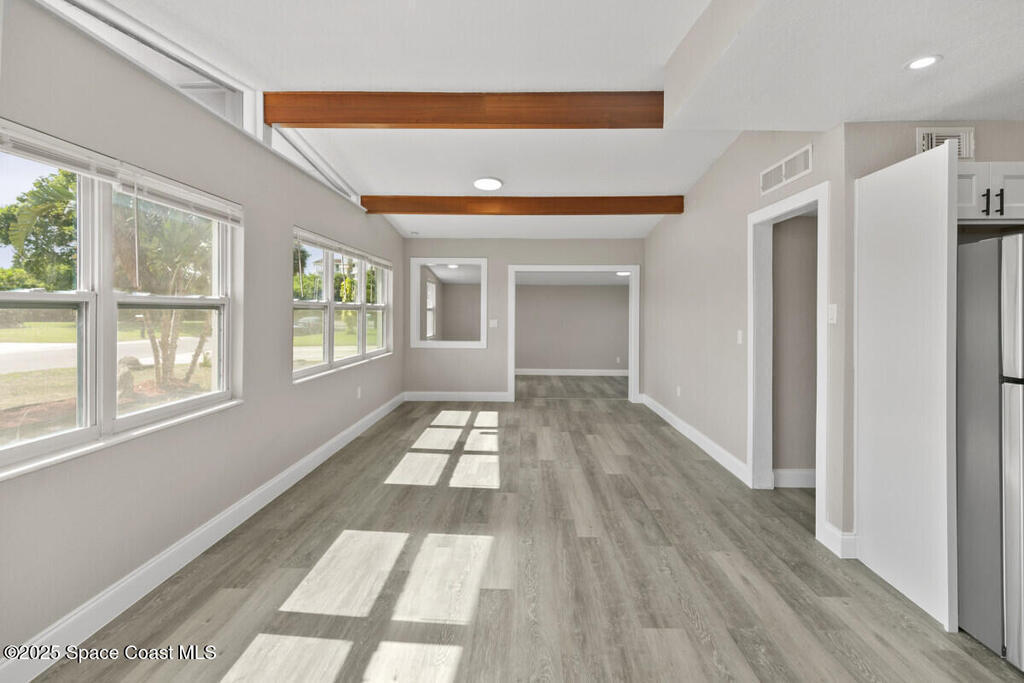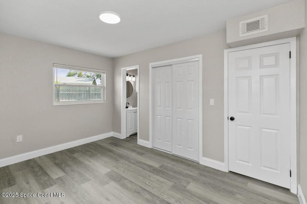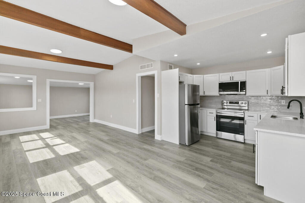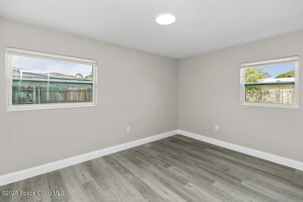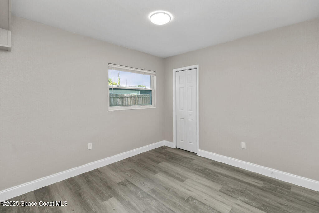Fully renovated 3-bedroom, 2-bath home in the heart of Merritt Island, situated in a no-flood zone and loaded with premium upgrades. This move-in ready gem features a brand-new kitchen with shaker cabinets, quartz countertops, stylish backsplash, and stainless steel appliances. Both bathrooms are fully updated with modern tile and sleek matte black fixtures. Luxury vinyl plank flooring flows seamlessly throughout the home, complemented by new lighting, hardware, and finishes inside and out.Additional highlights include a new roof, water heater, and HVAC system for peace of mind and efficiency. The 1-car garage offers an interior laundry area plus bonus storage space. The spacious backyard provides plenty of room for entertaining or future expansion.Enjoy easy access to Target, BJ's, Home Depot, and the brand-new $410M Cape Canaveral Hospital set to open nearby in 2027. Don't miss the opportunity to own a beautifully updated home in one of Merritt Island's most desirable locations!