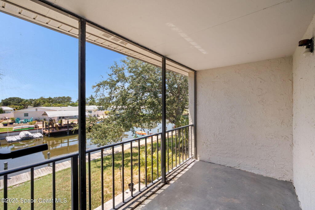 Rare end unit waterfront townhome in the coveted Waterway community of Satellite Beach with your own DEED BOAT SLIP just steps away. Enjoy direct access to navigable water leading to the Banana River and the full beauty of the Intracoastal Waterway right from your backyard. Soak in stunning canal views from your screened porch or take your boat out for a sunset cruise. Inside, the updated kitchen with quartz countertops flows into open living and dining spaces perfect for entertaining. Upstairs, two spacious bedrooms each have private baths for comfort and privacy. As an end unit, you also have an entire side yard with beautifully landscaped grass your kids can enjoy, along with extra light, added privacy, and only one shared wall. This property sits in unincorporated Satellite Beach which means significantly lower taxes while still being minutes from the beach, shopping, dining, and top rated schools. Community perks include a sparkling pool, tennis and basketball courts, and