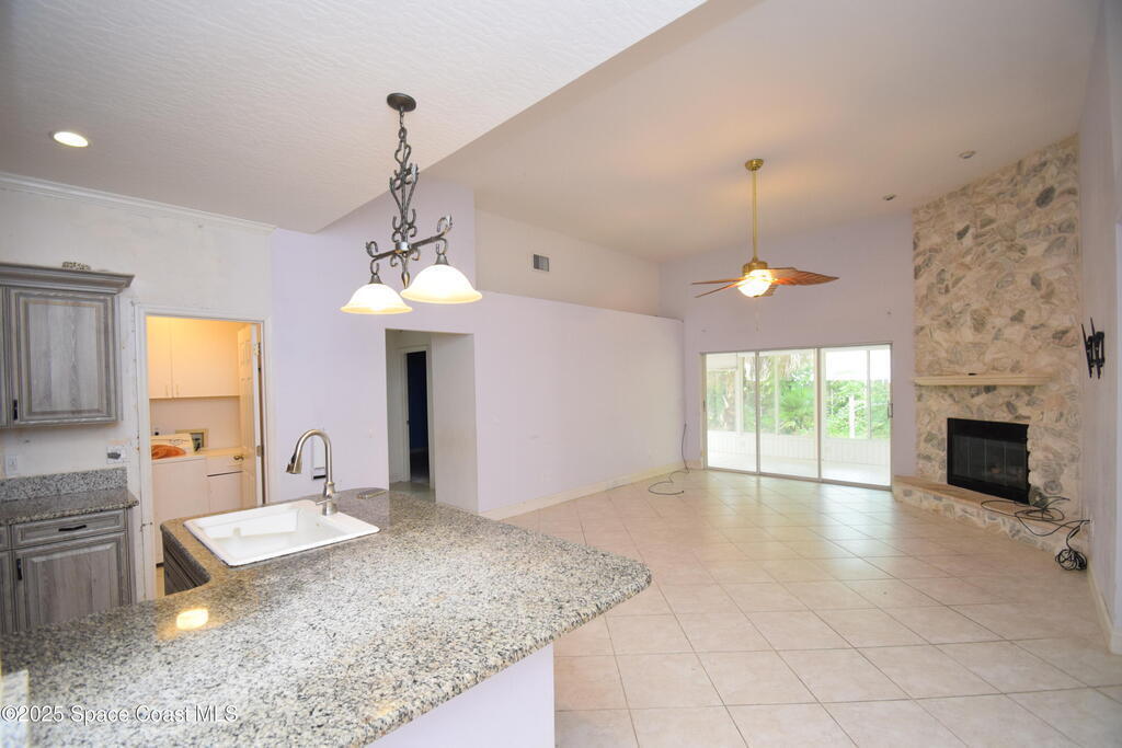 *5K Credit towards closing costs or home updates* Don't miss this 3 Bedroom / 2 Bath home in desirable Lake Washington Oaks. New roof July 2025, New Outside AC unit May 2025, Water Heater 2023. Kitchen remodel was completed in 2016 with granite countertops. Crank down Hurricane Shutters installed on all windows, with the exception of the front window, which has an automatic roll-down shutter. Formal living and dining rooms, as well as a large family room perfect for time together. The tasteful kitchen has abundant cabinet and counter space, and a breakfast bar that opens to the family room. A beautiful stone, gas fireplace adds coziness to the family room which offers a view of the enclosed porch and private backyard. The family room has glass sliding doors that lead to a large, enclosed sunroom. The primary bedroom is generously sized, while the master bath has a tub, walk-in shower and two sinks. Centrally located, with a little TLC, make this your dream home today