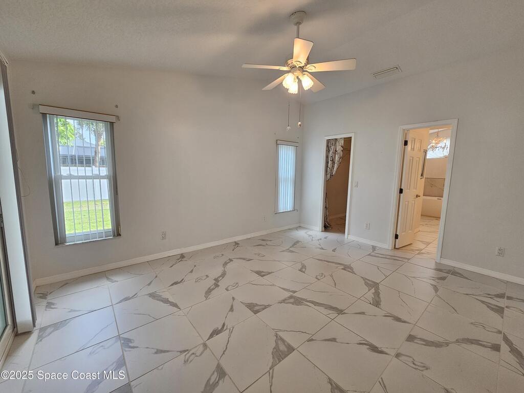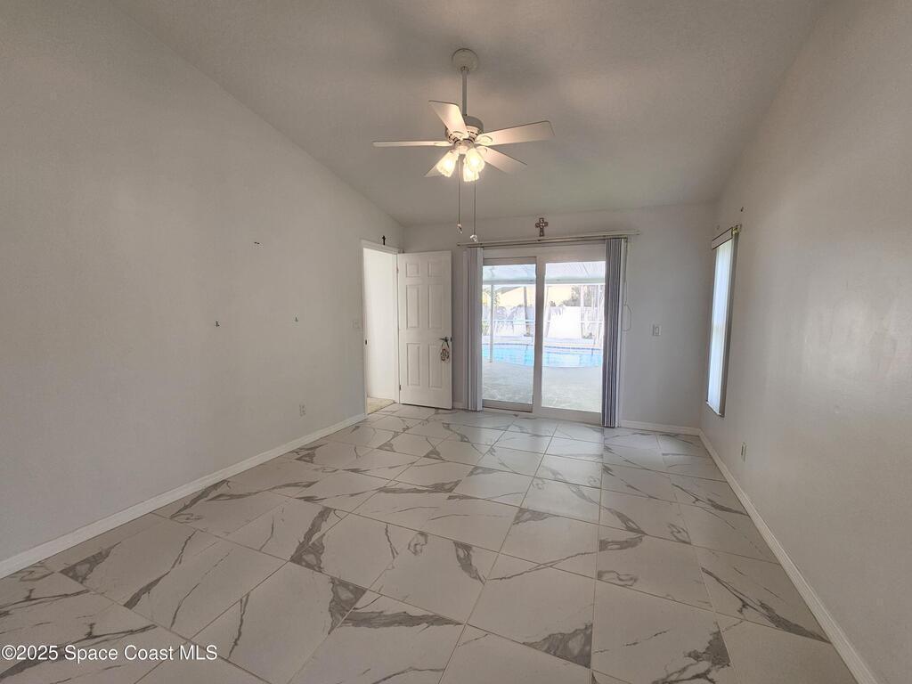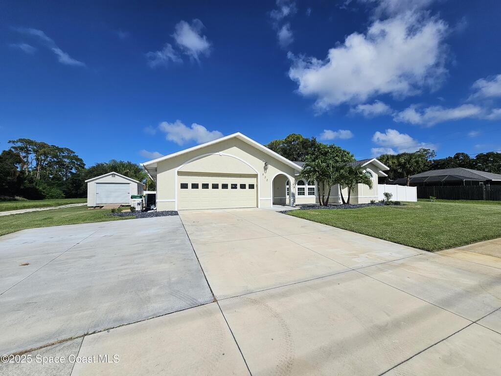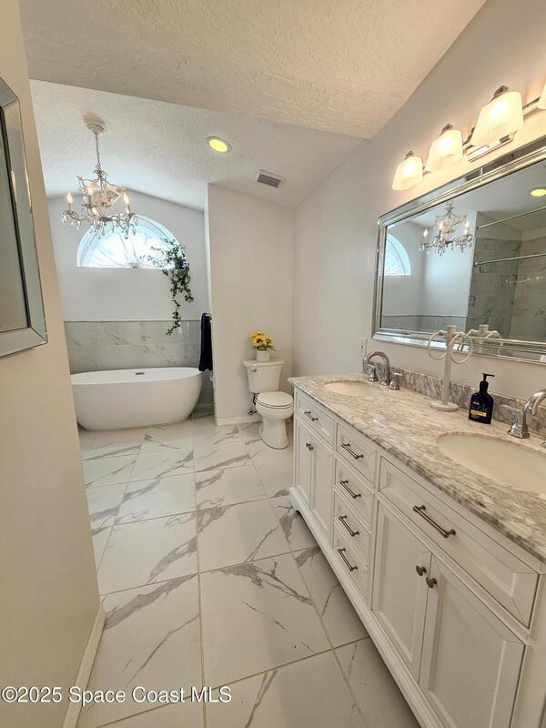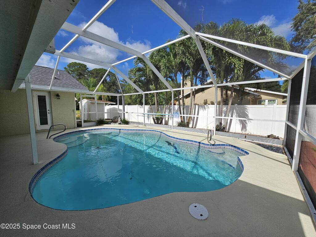Now available, this Merritt Island pool home delivers comfort, style, and a prime location. The private screened pool features a covered patio and brand-new BBQ grill, perfect for entertaining or relaxing in the shade. The fenced backyard offers privacy, and the oversized driveway provides plenty of parking--bring your boat. A 14' x 25' work shed adds generous storage. Inside, the split floor plan offers an open kitchen with new stainless steel appliances, natural gas stove, and plenty of counter space. A whole-house generator and hurricane-impact windows provide peace of mind. The master suite boasts pool access, walk-in closet, and a large bath with double sinks, soaking tub, and separate shower. The guest bath also opens to the pool for convenience. Located just 1 mile from Walmart, 3 miles from Publix, and minutes from Cocoa Beach, Patrick Space Force Base, and the Space Center. Watch rocket launches from your own yard. Pool care and pest control included. One mature pet considered