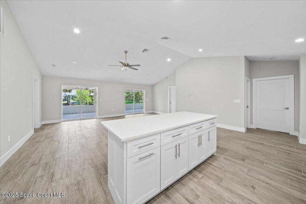 Ceiling Fan(s) , Eat-in Kitchen , Guest Suite , Kitchen Island , Open Floorplan , Primary Bathroom -Tub with Separate Shower , Primary Downstairs , Split Bedrooms , Vaulted Ceiling(s) , Walk-In Closet(s)