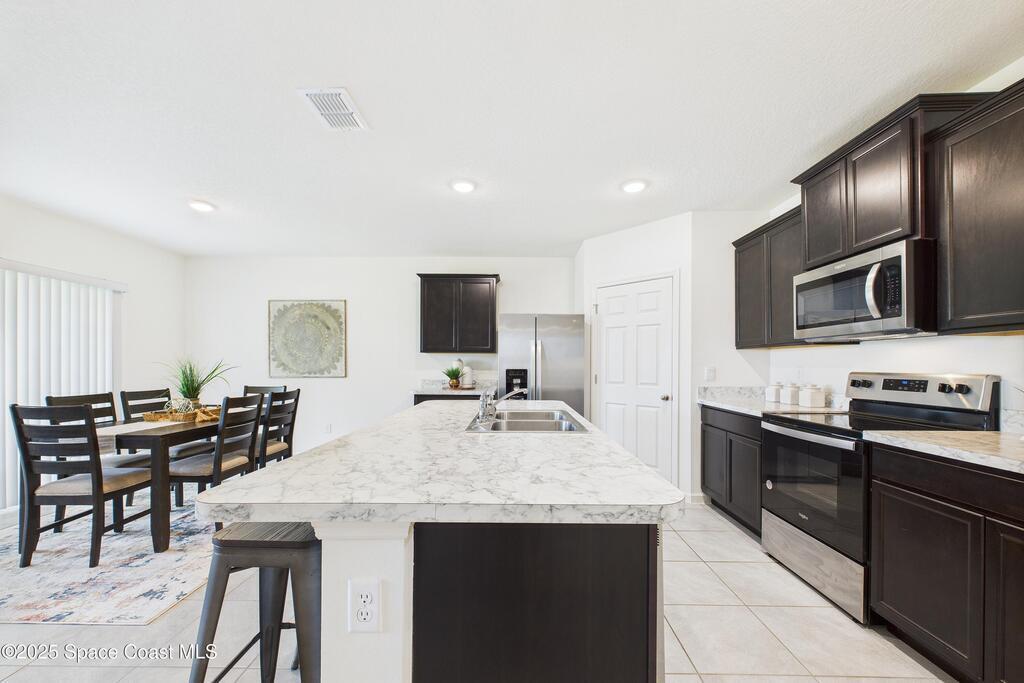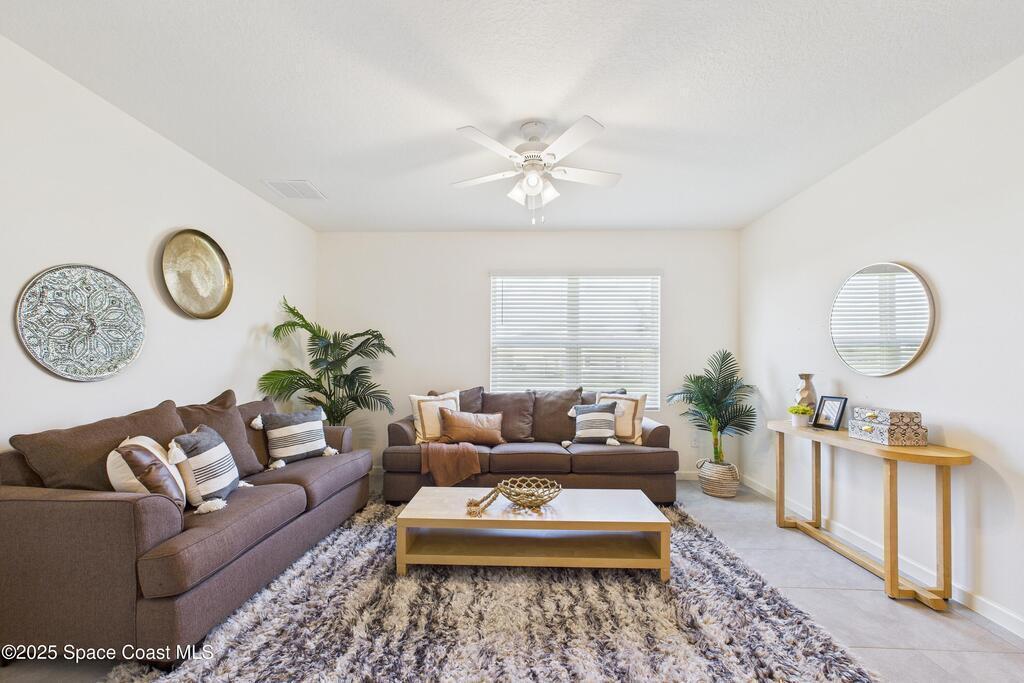 Welcome to 3479 Burrowing Owl Dr, a 2022-built gem in the sought-after Greens at Indian River Preserve in Mims, FL. This 4-bedroom, 2-bath home offers 1,916 sq ft of stylish, open-concept living. The bright family room flows into the dining area and gourmet kitchen, complete with a large island, sleek cabinetry, and stainless steel appliances. The private owner's suite provides a peaceful retreat, while three additional bedrooms offer space for family, guests, or a home office. Enjoy a charming rear porch, low-maintenance yard, and a two-car garage. Solid block and stucco construction ensures lasting quality. Just minutes from Indian River Preserve Golf Course, Titusville shopping and dining, I-95, and the Space Coast's beaches and Kennedy Space Center, this move-in ready Mims home delivers the perfect blend of comfort, convenience, and Florida living.