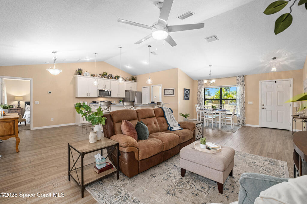 Why wait on a builder when you can have it all now? Built in 2019, this move-in-ready gem offers the crisp, modern feel of new construction with all the perks. Soaring vaulted ceilings, bright open living space, and a thoughtful split floor plan connecting three spacious bedrooms and two bathrooms. The custom eat-in kitchen steals the show with sleek quartz countertops, stainless steel appliances, and a breakfast bar. The primary suite is your private retreat, featuring a tray ceiling, walk-in shower, and generous closet space. Outside, enjoy nearly 1/4 acre of fenced yard--plenty of room to play, relax, or host weekend barbecues. The screened patio invites peaceful morning coffee or breezy evening downtime. With no HOA, bring your boat, RV, or other toys and truly make the space your own. A 2019 roof, brand-new gutters, and all major systems just 6 years old make this home the perfect blend of of comfort and peace. Move right in and start living your best life!