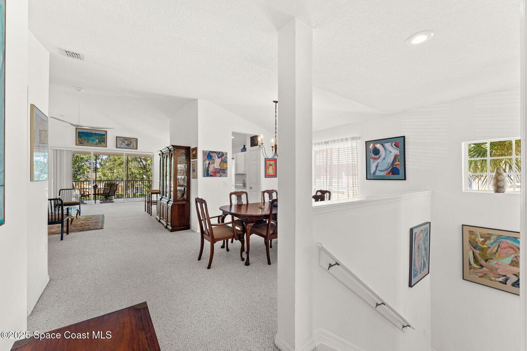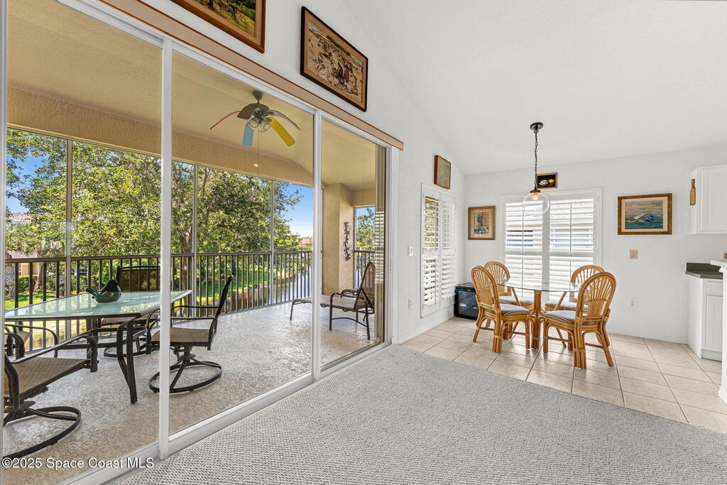 This 2 bedroom / 2 bathroom plus flex room unit is bathed in natural light and framed by soaring ceilings, the living area strikes a rare balance--expansive yet intimate. The open floorplan flows effortlessly onto an extended screened balcony, where birdsong greets you & tranquil water views offer daily serenity. Whether you're hosting holiday dinners or welcoming out-of-town guests, there's space to connect, reflect, & recharge. Overlooking the dining area, an 11x13 flex room with double doors expands the home's functional possibilities --a space that can be styled as a media room, library, office or enclosed to create a true third bedroom. The combination of tile & carpet underfoot adds comfort & texture, while a dedicated washer & dryer add function. This home has been more than a residence--it's been a place of peace, filled w/ laughter, quiet moments & a deep appreciation for the well-maintained Carriage Park community.