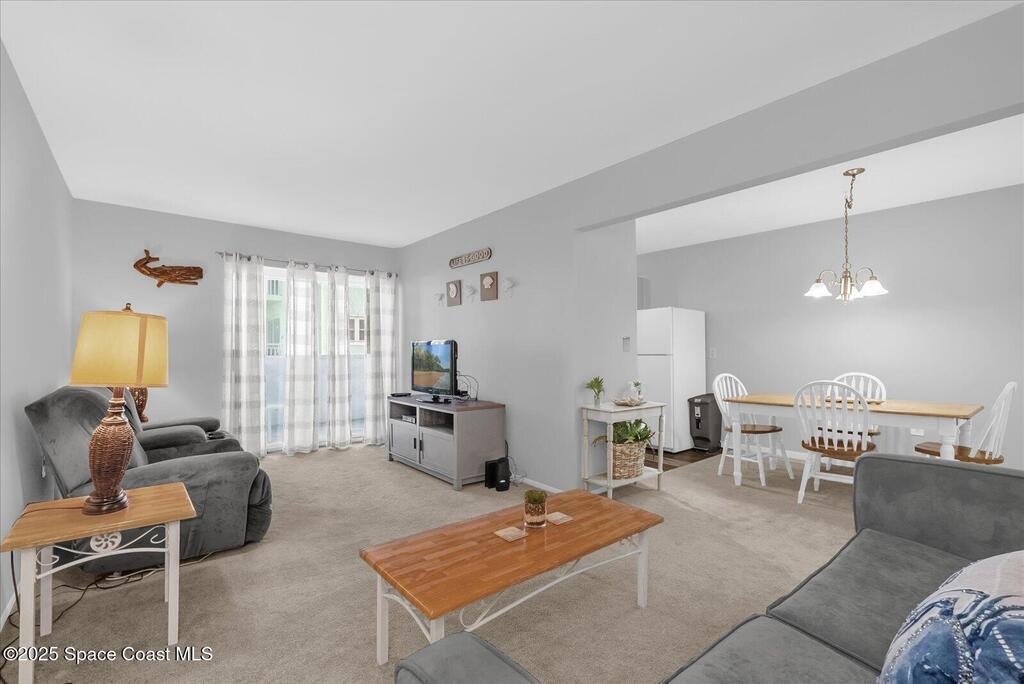 Step into serenity with this beautifully updated 1-bed, 1-bath condo nestled on the sandy shores of Cocoa Beach--where the beach is literally just steps away. Located in a friendly, oceanfront community, Unit #32 blends modern comfort with relaxed coastal living. Inside, enjoy carpet, tile, and laminate flooring, a stylish galley kitchen with gray cabinetry, white appliances, and a sleek backsplash. The cozy dining area flows into a bright living room with sliding glass doors leading to a screened-in porch--perfect for relaxing bug-free. The bedroom features a built-in closet, while the bathroom includes a shower/tub combo and gray vanity. A laundry room with built-in shelving adds convenience. Whether sipping morning coffee on the porch or enjoying sunset beach strolls, this charming condo offers effortless beachside living. Ideal as a full-time home, vacation getaway, or investment. Welcome home--where the ocean is your backyard.