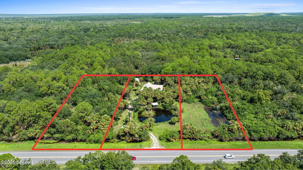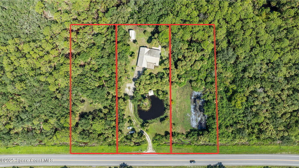 Escape to the country life you've always dreamed of in this 3 bed, 2.5 bath home with potential to personalize it to fit you perfectly! The home is situated on 1 acre and includes 2 additional 1 acre lots for a total of 3 acres complete with a front yard pond! It is tucked away just off of State Road 524 with I-95 and SR 520 near by for convenient access to Cocoa Village, Kennedy Space Center, Orlando, and more; but it still feels like your own private space. Inside, enjoy over 2,200 square feet of living area and a cozy wood-burning fireplace. Metal roof and an attached 2-car garage along with a detached 1-car garage offer durability and flexibility. No HOA. Mature trees provide natural privacy. The pond, that's your morning coffee view. Come enjoy the peace, and freedom of rural Florida living and zoning to bring your horses: up to 4 per acre!Schedule your personal showing today!