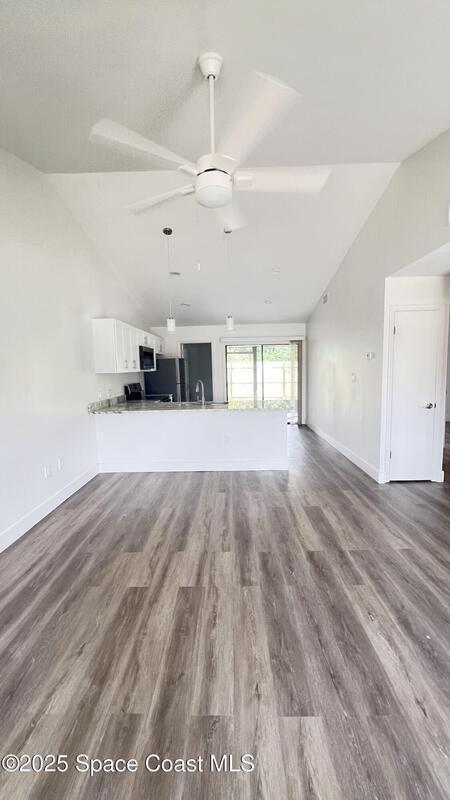 Fully renovated single story 2 bedroom 2 bath townhouse. The end-unit townhouse is located in a quiet small townhouse community. It has a brand-new kitchen featuring white shaker cabinets, premium quartz countertops, and all stainless steel appliances. Both bathrooms have been completely transformed with new fixtures, vanities, shower enclosures, and toilets. The townhouse features new luxury vinyl plank flooring seamlessly throughout the entire home, fresh lighting fixtures, ceiling fans, and window treatments. The level 5 smooth ceilings and newly painted interior and exterior add a polished touch, while new exterior doors, new locks, and new handlesets throughout ensure security and style. Relax on the large screened-in back porch while enjoying the privacy of a generous size fenced-in back and side yard. A spacious laundry room with a deep basin laundry sink and cabinets and a large exterior storage room provide ample space for your needs.