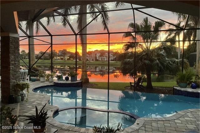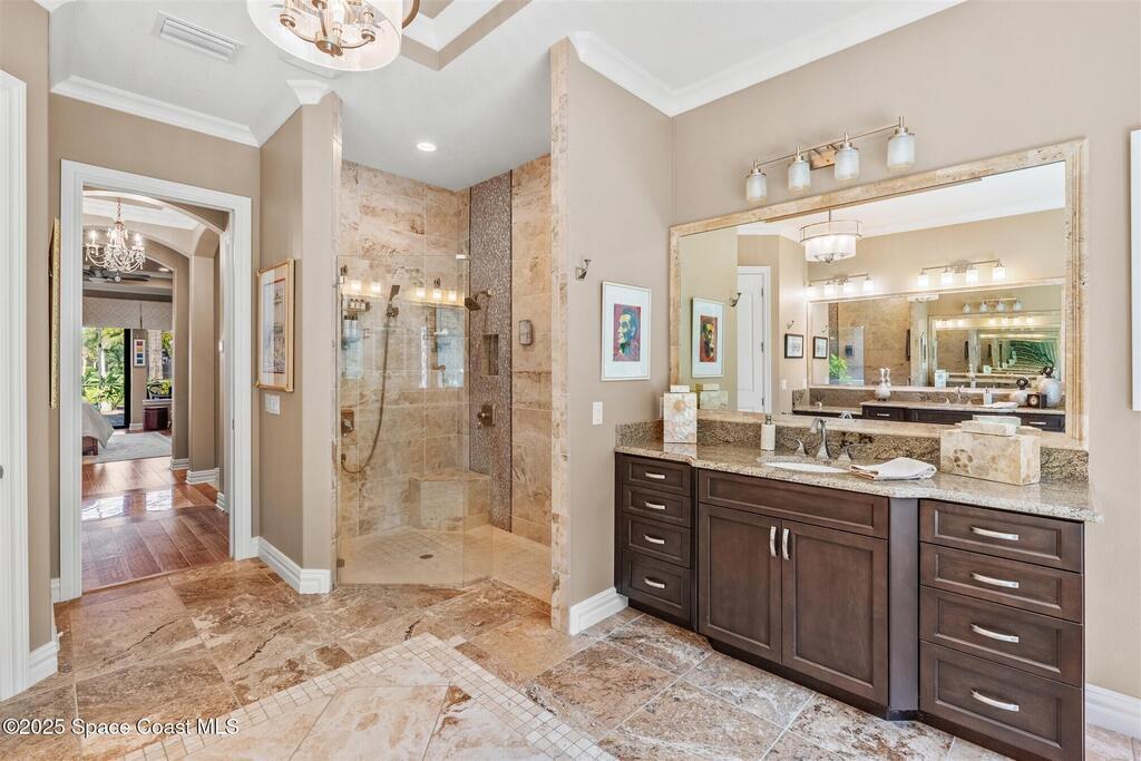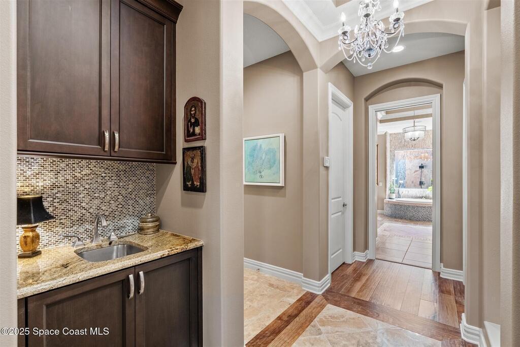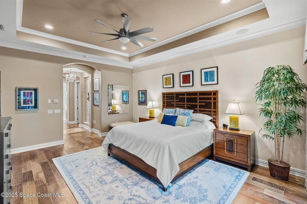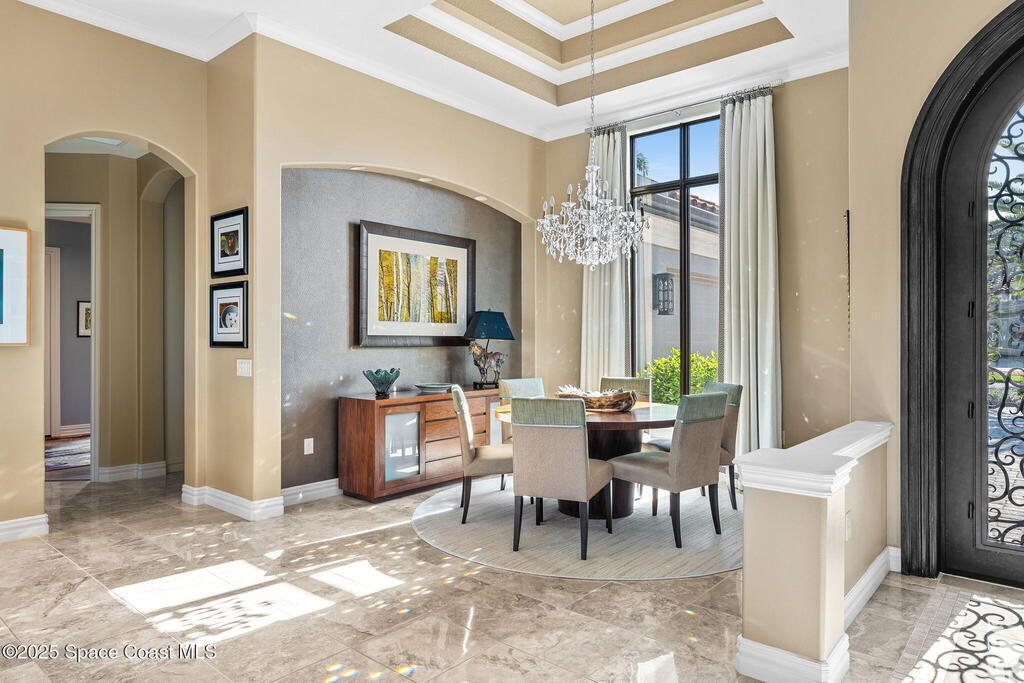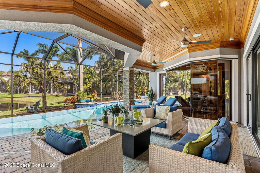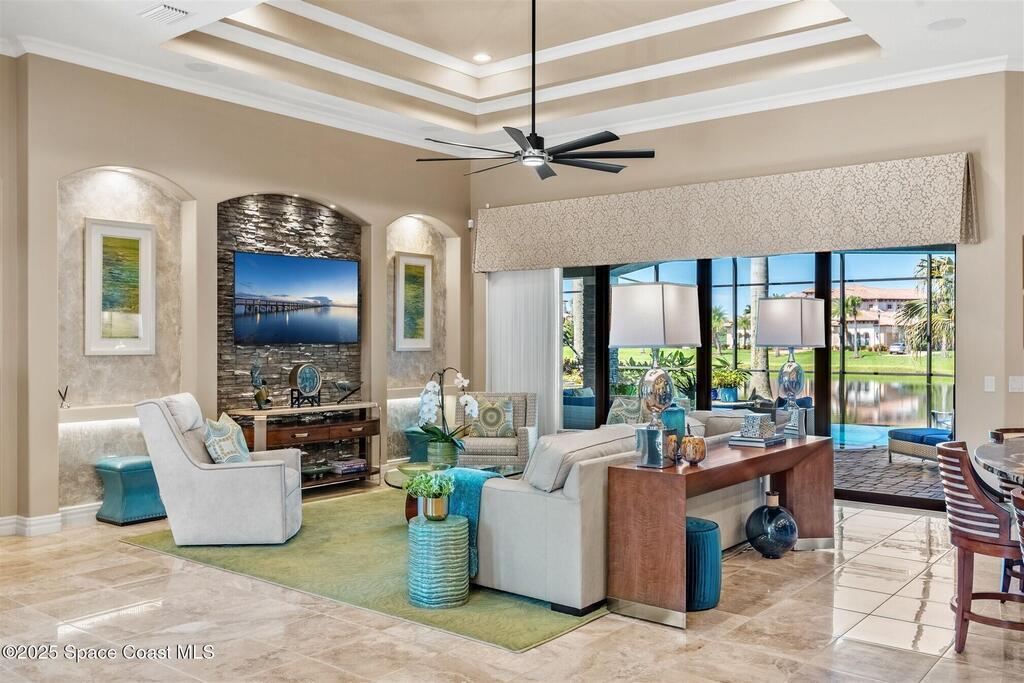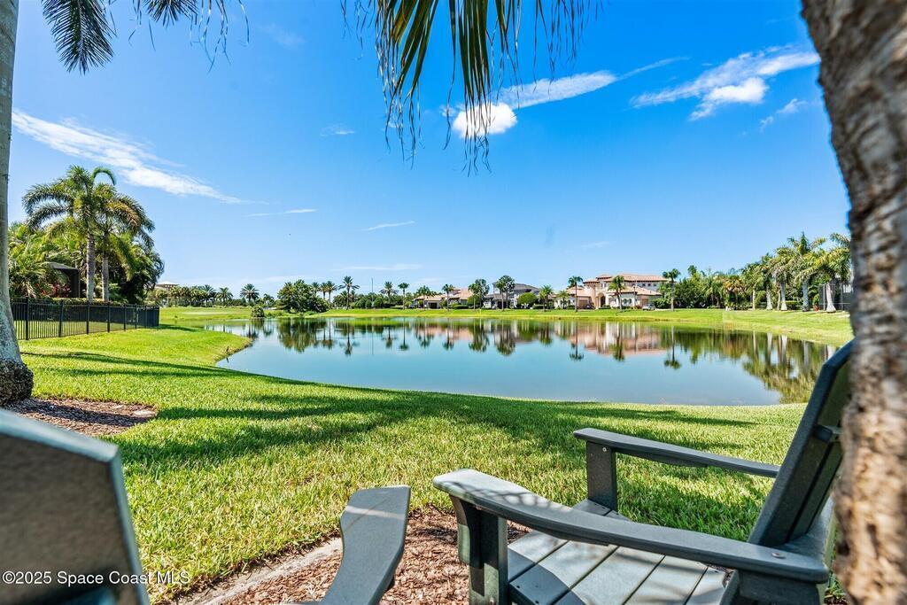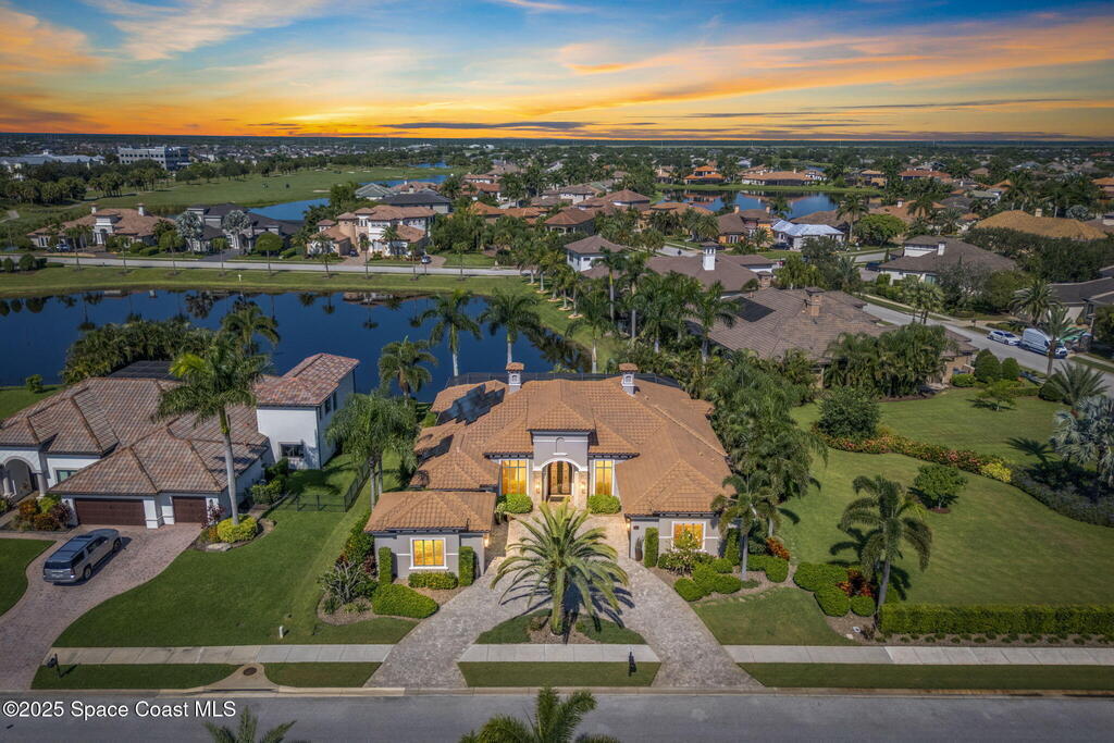 72-Hour Kick Out Clause in Affect.Welcome to the epitome of luxury living in the exclusive, gated Wyndham at Duran. This custom home by Brevard's renowned builder offers quiet luxury and an exceptional lifestyle set on a rare half-acre estate of 2 lots (with plenty of available land to build a casita, additional garage, or expand your home) within the sought-after Duran Golf Course community. The great room floor plan features four bedrooms, a private office, dining room, and pool bath on a picturesque waterfront cul-de-sac lot. The impressive curb appeal is enhanced by an expansive motor court and stately 10' Abbey iron double doors. Inside, the spacious great room has breathtaking quad sliders that reveal panoramic views of the infinity-edge pool, tranquil lake, golf course, and unforgettable sunsets. The home is filled with bespoke touches: designer window treatments, lighting, and fans; luxury wallpaper and...