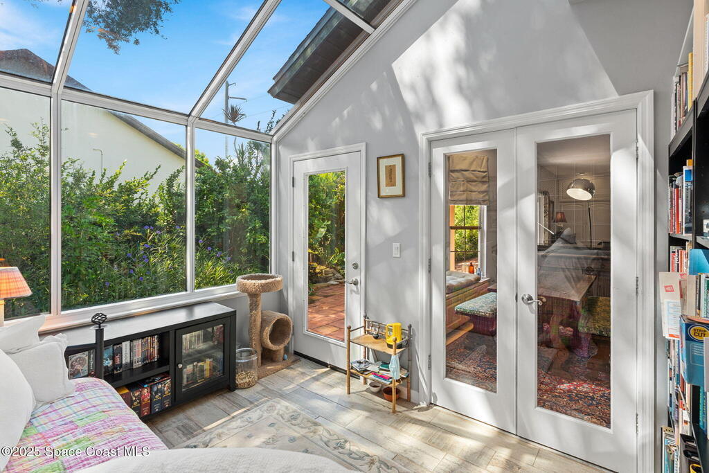 Welcome to your custom-built beachside pool retreat, perfectly set along a picturesque, tree-lined street in guard-gated The Sanctuary. A tray ceiling with ambient lighting & crown molding draws you into the great room, anchored by a gas fireplace with a new granite hearth. The thoughtfully designed single-story layout offers privacy with two spare bedrooms & a hall bath in one wing, a pool suite in another, and a generous primary suite with an attached private office, nursery, or sitting room. The kitchen showcases designer cherry cabinetry, granite counters, a Sub-Zero cabinet-overlay refrigerator, gas Miele cooktop, and double oven. An impact-glass sunroom invites serene mornings, while a whole-home water filtration system, insulated interior walls, newer HVAC with UV light, tankless water heater, December 2020 roof, and whole-home generator add comfort & efficiency. Outdoors, the Spanish-tiled lanai opens to the heated pool, embraced by lush tropical foliage for a secluded retreat