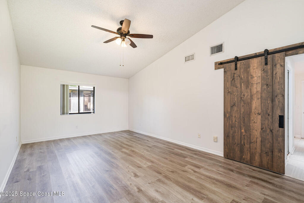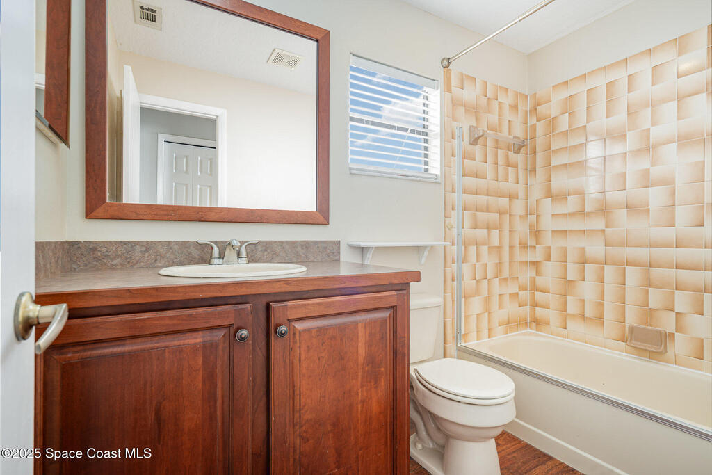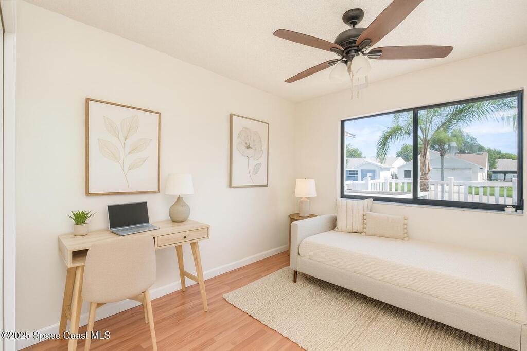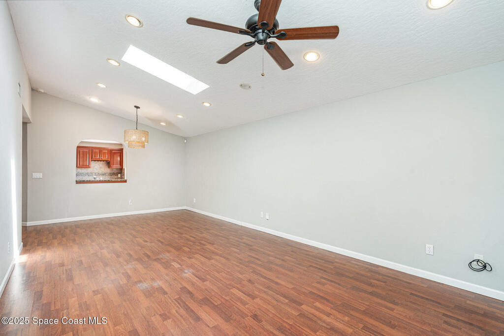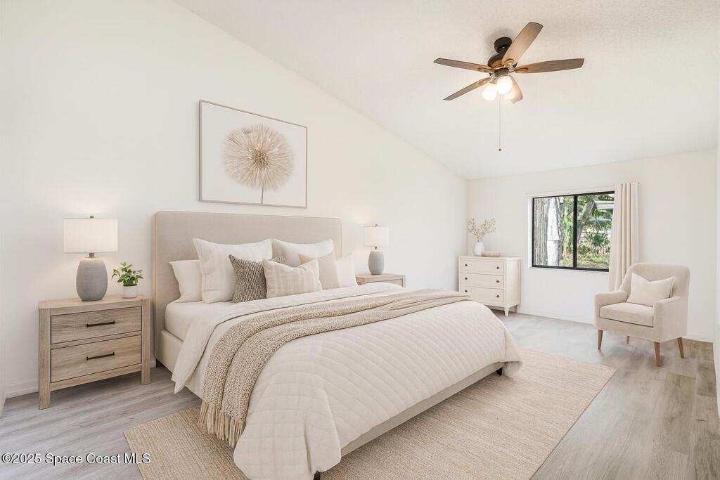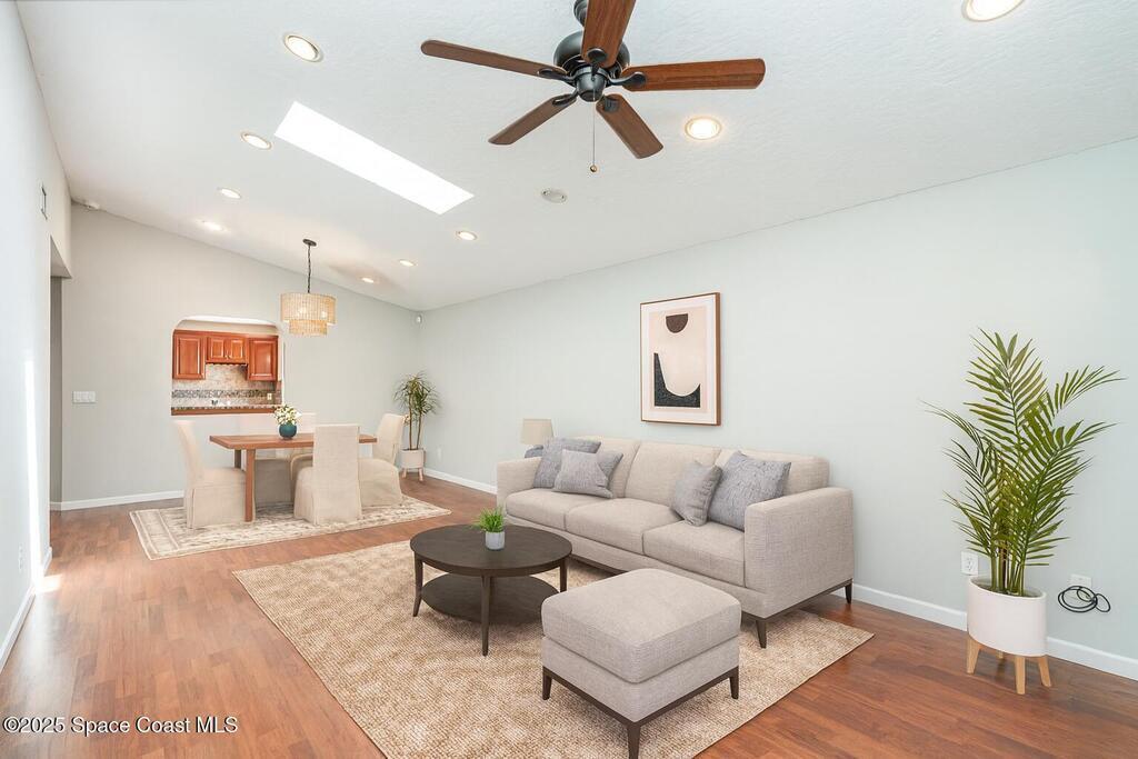 *** BRAND NEW HVAC*** Don't miss the opportunity to tour this stunning 3-bedroom, 2-bathroom residence, meticulously maintained and thoughtfully updated! The home boasts upgraded cabinetry in the kitchen and bathrooms, complemented by beautifully coordinated countertops and a stylish backsplash in the kitchen. Enjoy the spaciousness of vaulted ceilings in the living and dining areas, as well as in the main bedroom, where skylights fill the room with natural light, creating a warm and inviting atmosphere. The main bedroom has a large bathroom with double sinks. The house has a spacious 2 car garage where the washer and dryer are located. Unwind on your private back porch, take a stroll to the community pool for a refreshing dip, or enjoy the serene surroundings of this desirable neighborhood. Ideally situated near the community pool, clubhouse, and tennis courts. Enjoy easy access to shopping, schools, Wickham Park, the King Center, and Eastern Florida State College