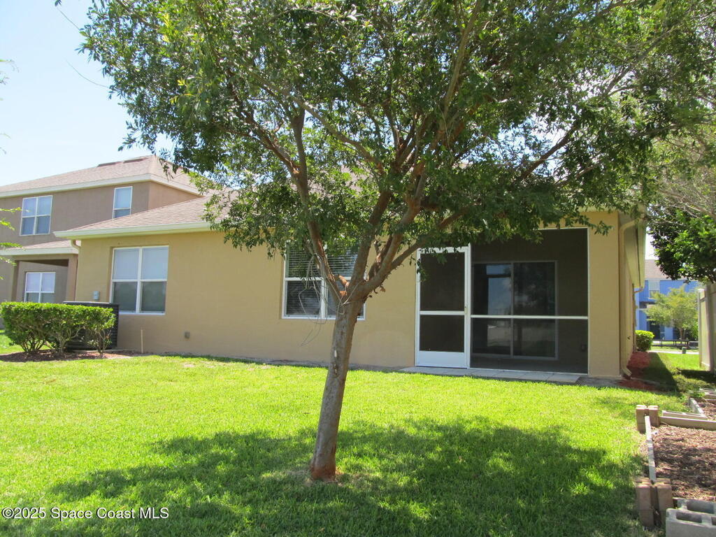 Welcome home to this gently used, in great condition, 4 bedroom, lakeview home in a very convenient location close to Wickham Rec Park, Atlantic beaches & the King Center. This is a great open room concept with the living/dining/kitchen in the back of the home with views of the lake. The kitchen is big with an island & granite counters, walk-in pantry & all appliances are included even the washer & dryer! Brand new neutral carpet installed in the bedrooms, living area & foyer. Tile in all wet areas. Exterior freshly painted. Main bath with double sink vanity, soaking garden tub, walk-in tiled shower & a huge 7x8 walk-in closet. Window blinds & ceiling fans in every room. AC replaced in 2024. Well pump for irrigation. Storm shutters for peace of mind. Backyard partially fenced. Step out to the screened porch & enjoy your coffee watching the ducks & birds in the lake. Small garden plot for fresh vegies too! Easy 1 hour drive to theme parks in Orlando. Ask for buyer's closing costs!