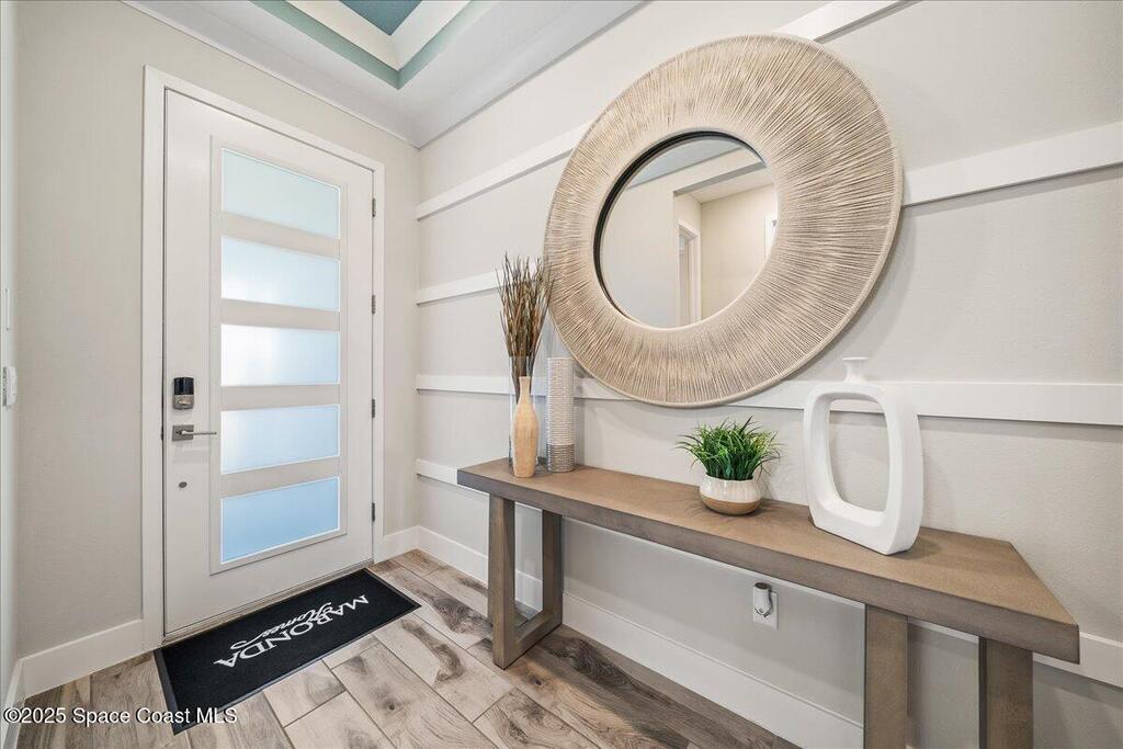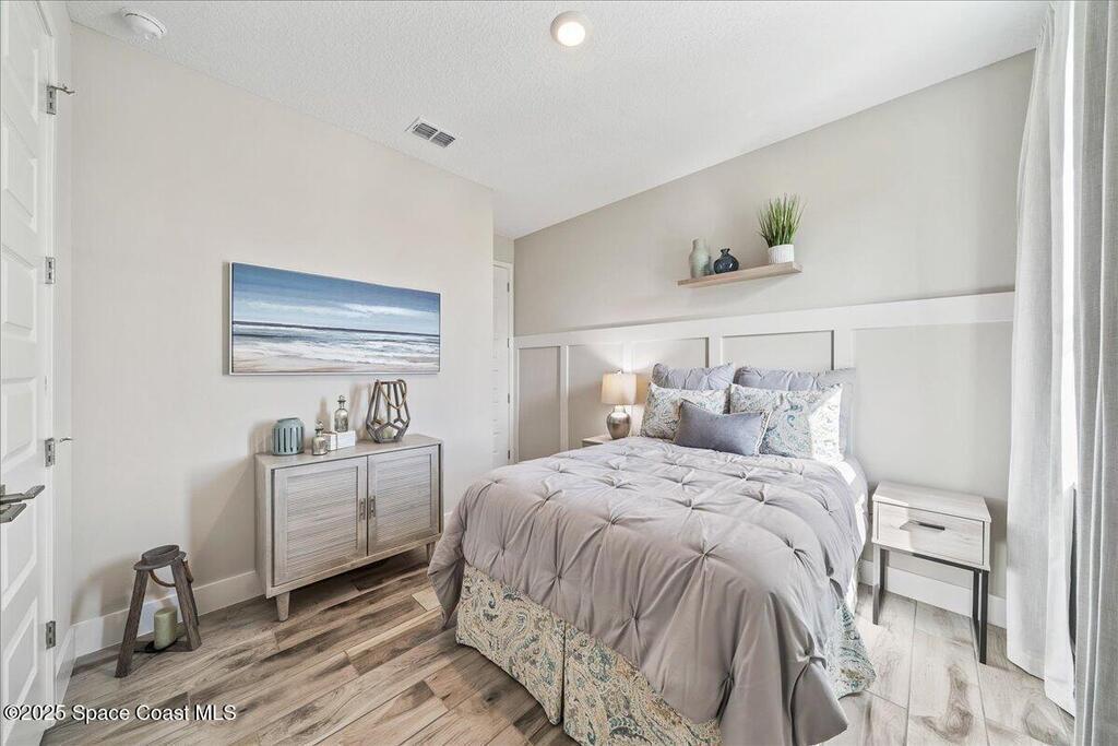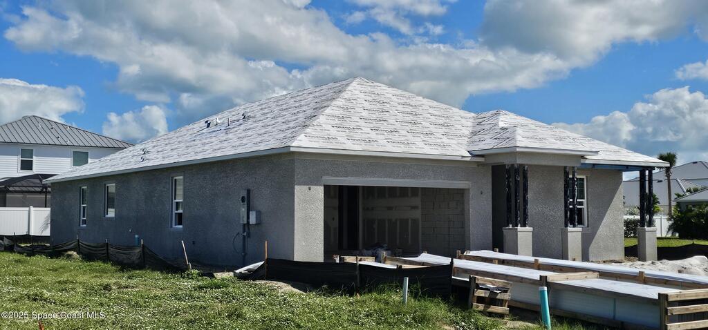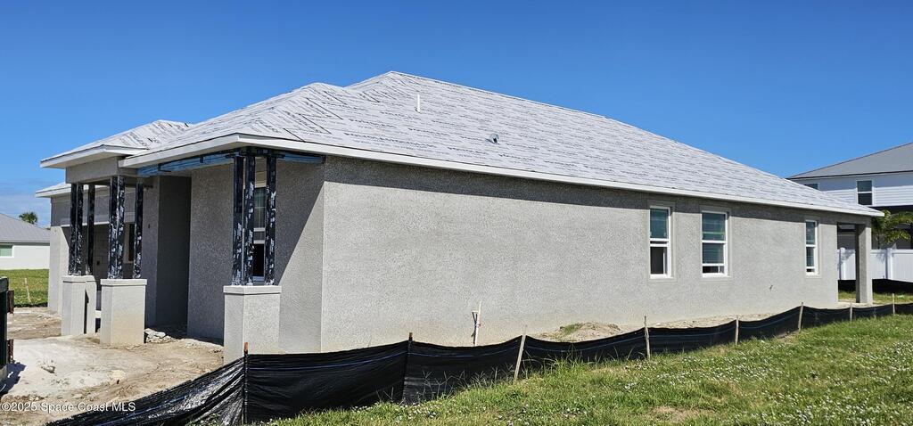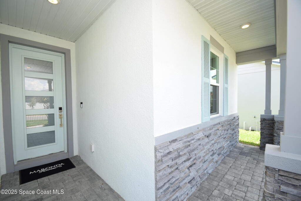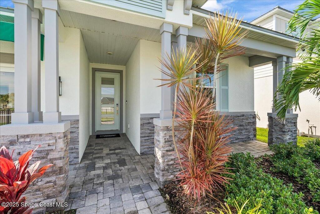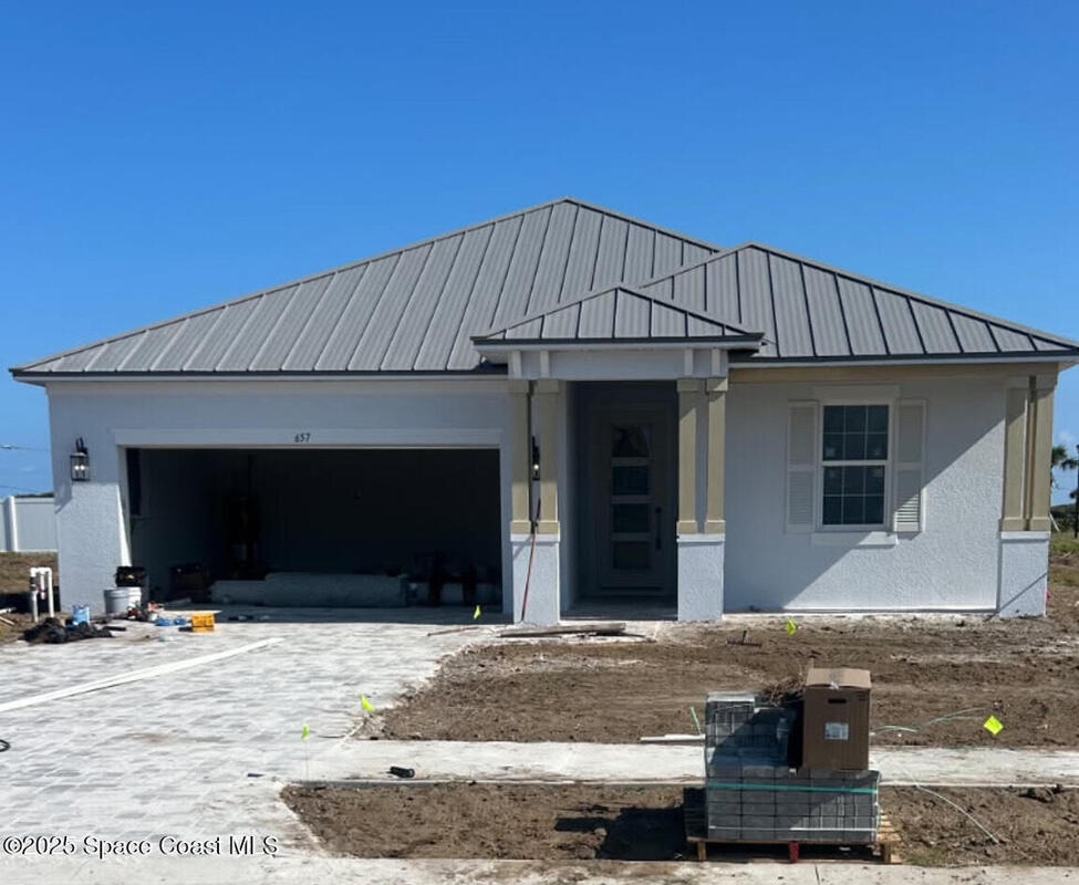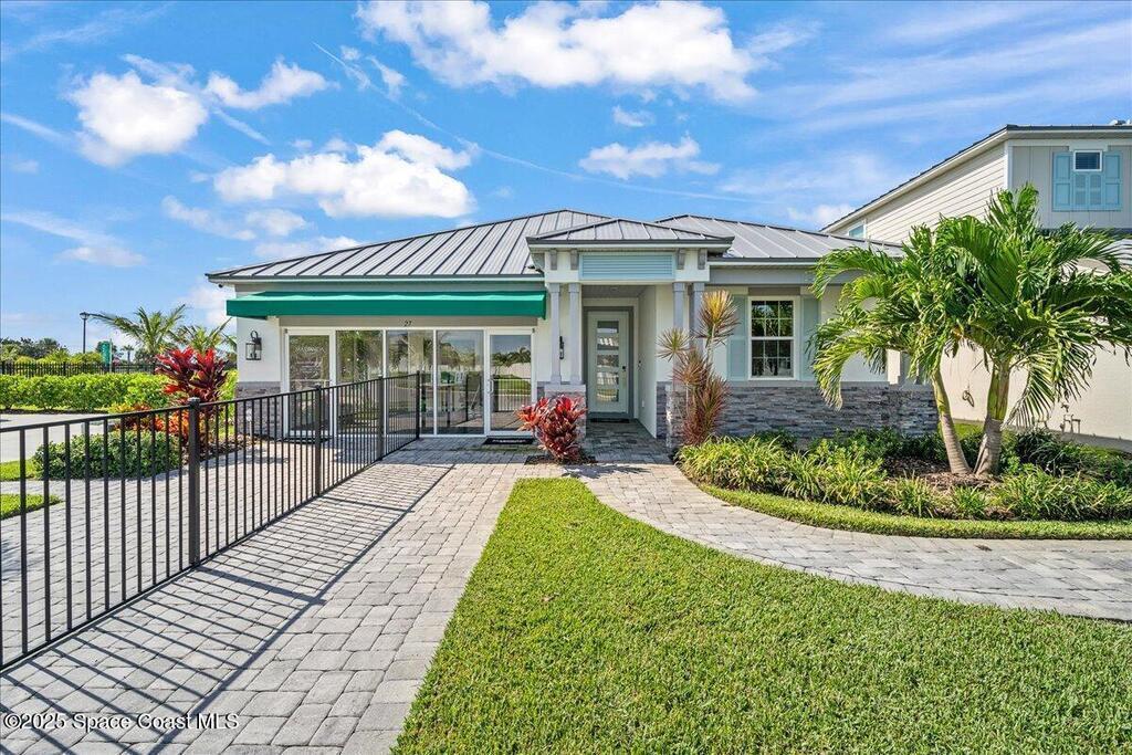 Brand-New Atlantis Model - Only 800 feet from the beach. New Value Price... Offered at an amazing value of: $699,900. This 4 bed, 2 bath, 2,154 sq ft home in The Vue at Satellite Beach blends modern design with coastal living. Step inside to 9'4'' ceilings, crown molding, an open layout, and an 8' glass front door. The gourmet kitchen features quartz counters, an oversized island, shaker cabinetry, and stainless appliances including a double oven. The owner's suite and upgraded bedrooms pair with tile in main areas and carpet in bedrooms. Outdoors enjoy a screened patio, paver lanai and driveway, metal roof, and room for a pool. Built with hurricane impact windows, smart home technology, and a builder's 2-10 warranty. Gated community includes a pool, low $88 HOA, no CDD fees, city water/sewer, irrigation well, and no flood zone for lower insurance. Completion Dec 2025 with $10K toward closing costs plus 3-year rate protection from preferred lender.