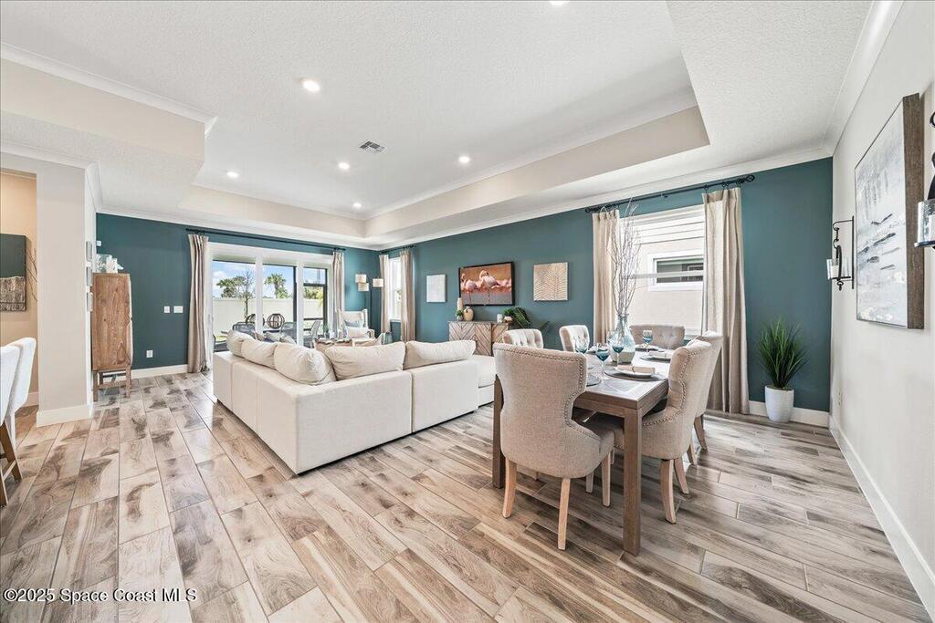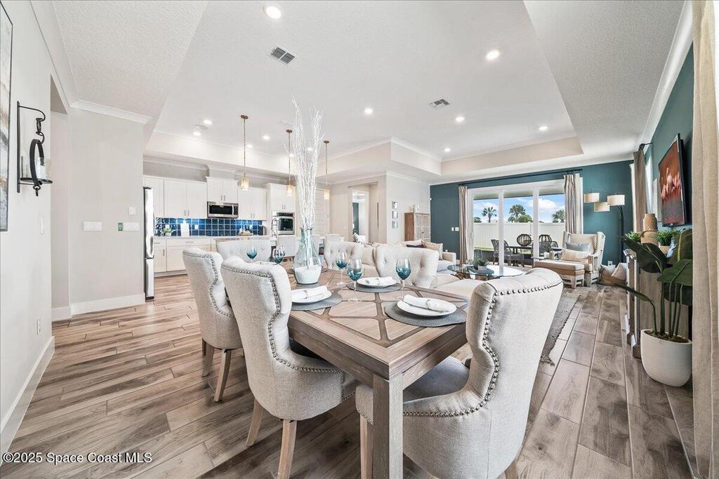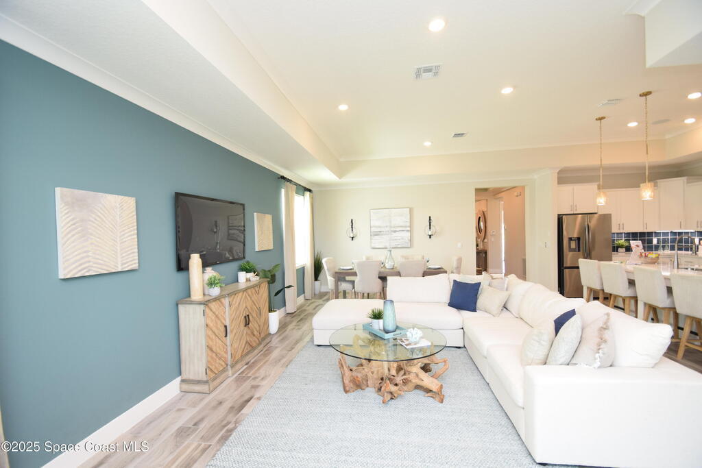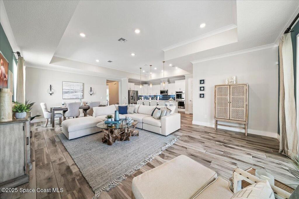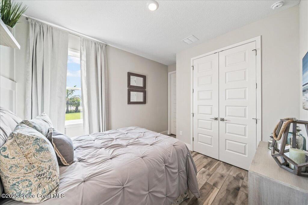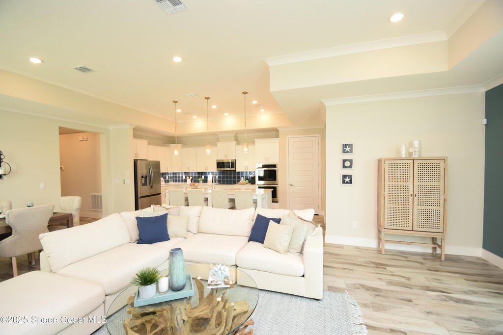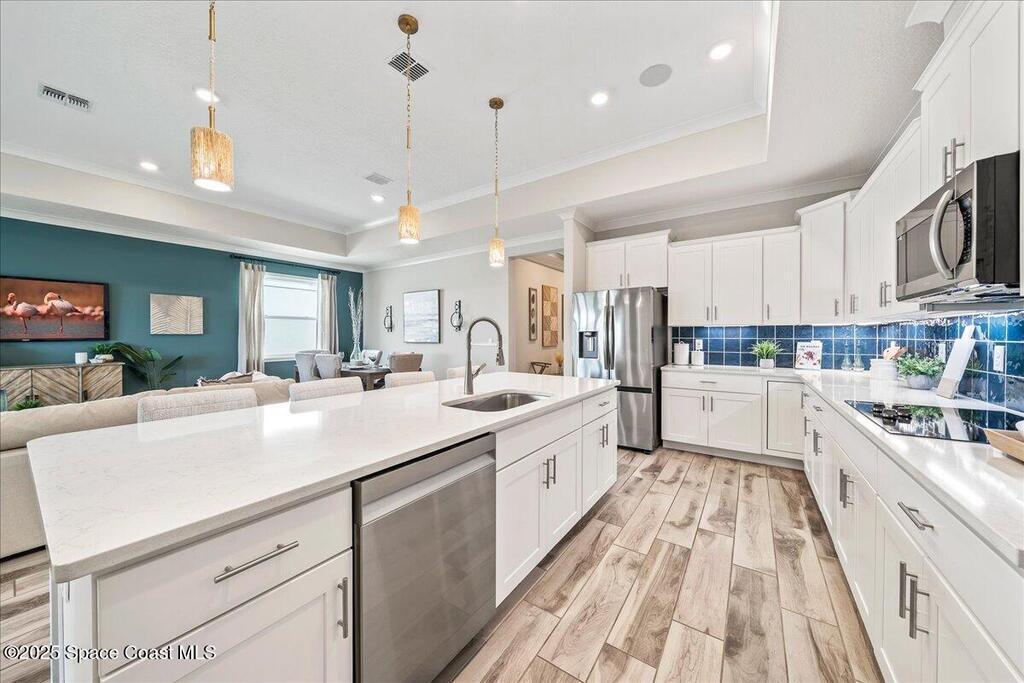 Brand-New Atlantis Model - Only 800 feet from the beach. New Value Price... Offered at an amazing value of: $699,900. This 4 bed, 2 bath, 2,154 sq ft home in The Vue at Satellite Beach blends modern design with coastal living. Step inside to 9'4'' ceilings, crown molding, an open layout, and an 8' glass front door. The gourmet kitchen features quartz counters, an oversized island, shaker cabinetry, and stainless appliances including a double oven. The owner's suite and upgraded bedrooms pair with tile in main areas and carpet in bedrooms. Outdoors enjoy a screened patio, paver lanai and driveway, metal roof, and room for a pool. Built with hurricane impact windows, smart home technology, and a builder's 2-10 warranty. Gated community includes a pool, low $88 HOA, no CDD fees, city water/sewer, irrigation well, and no flood zone for lower insurance. Completion Dec 2025 with $10K toward closing costs plus 3-year rate protection from preferred lender.