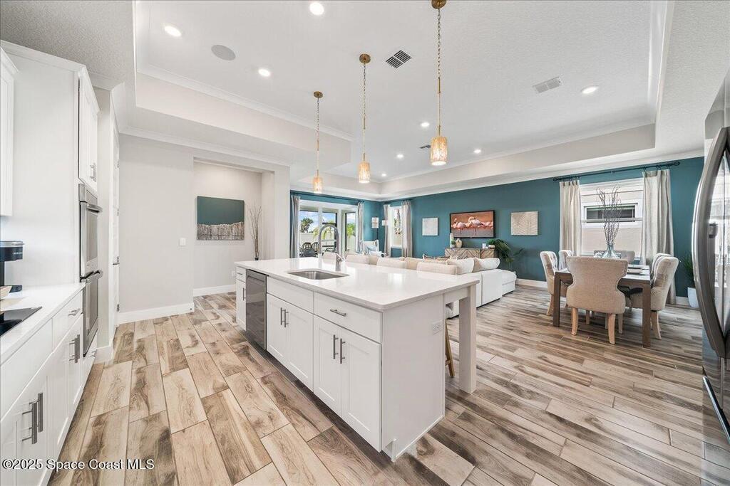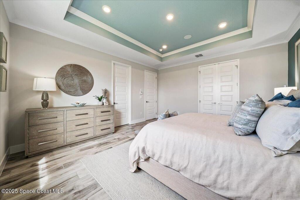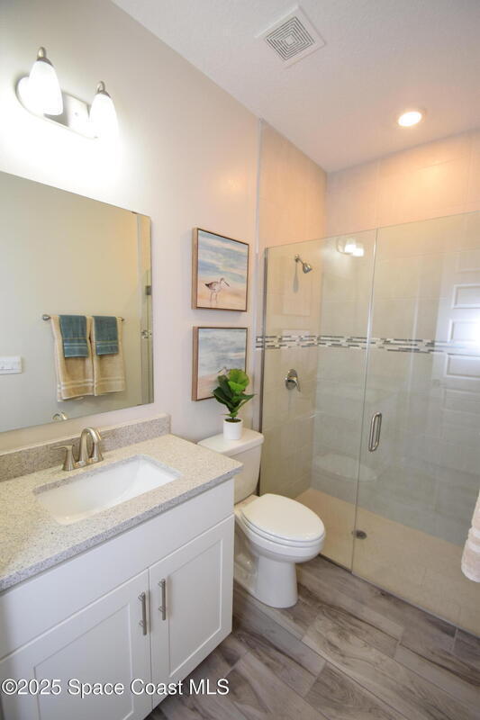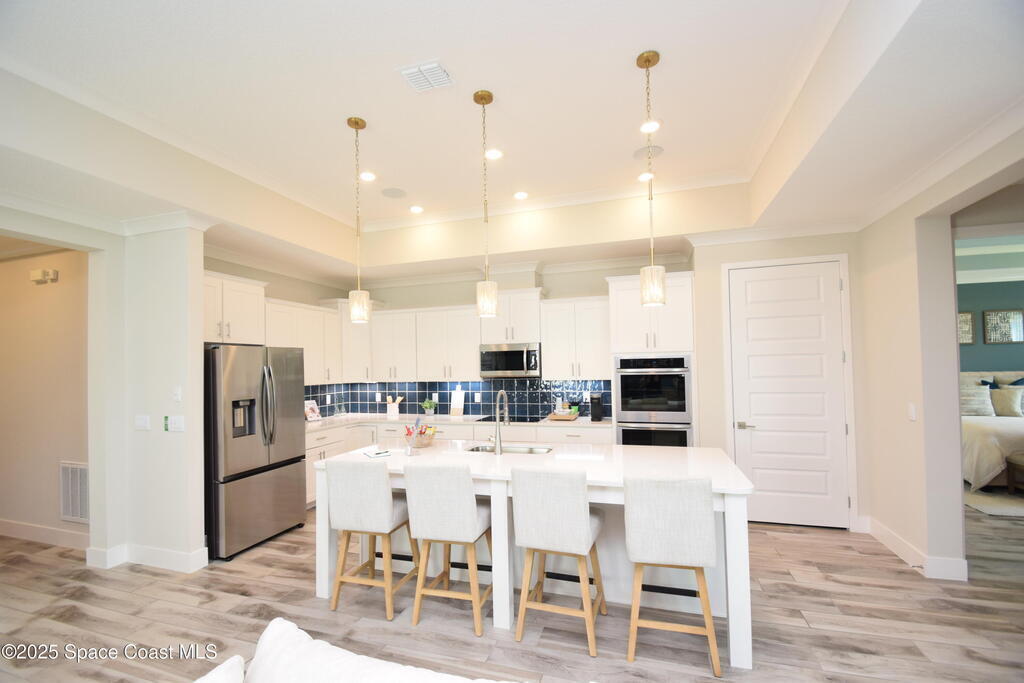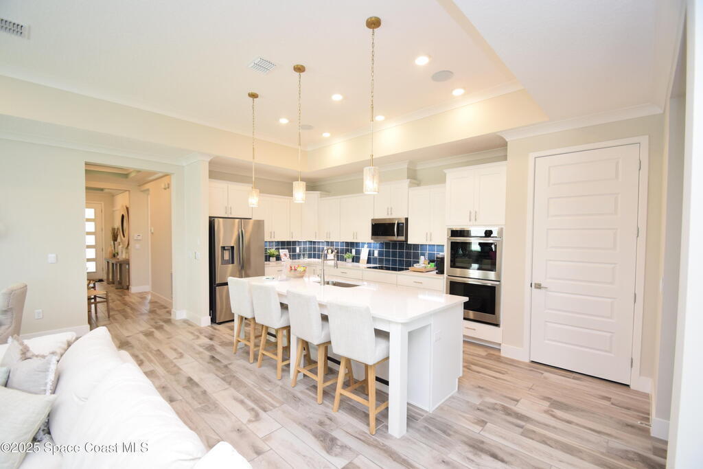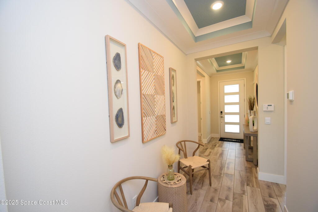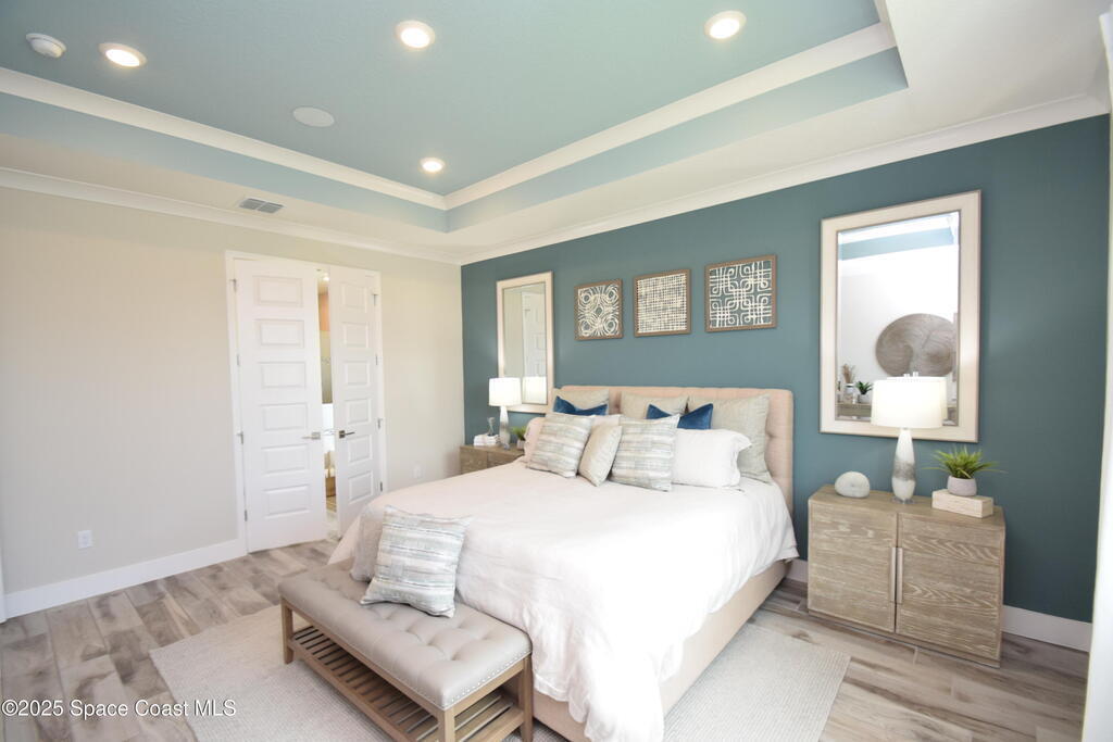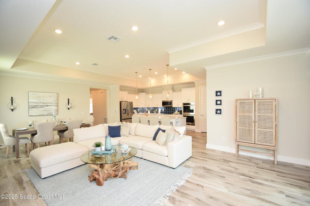 Brand-New Atlantis Model - Only 800 feet from the beach. New Value Price... Offered at an amazing value of: $699,900. This 4 bed, 2 bath, 2,154 sq ft home in The Vue at Satellite Beach blends modern design with coastal living. Step inside to 9'4'' ceilings, crown molding, an open layout, and an 8' glass front door. The gourmet kitchen features quartz counters, an oversized island, shaker cabinetry, and stainless appliances including a double oven. The owner's suite and upgraded bedrooms pair with tile in main areas and carpet in bedrooms. Outdoors enjoy a screened patio, paver lanai and driveway, metal roof, and room for a pool. Built with hurricane impact windows, smart home technology, and a builder's 2-10 warranty. Gated community includes a pool, low $88 HOA, no CDD fees, city water/sewer, irrigation well, and no flood zone for lower insurance. Completion Dec 2025 with $10K toward closing costs plus 3-year rate protection from preferred lender.