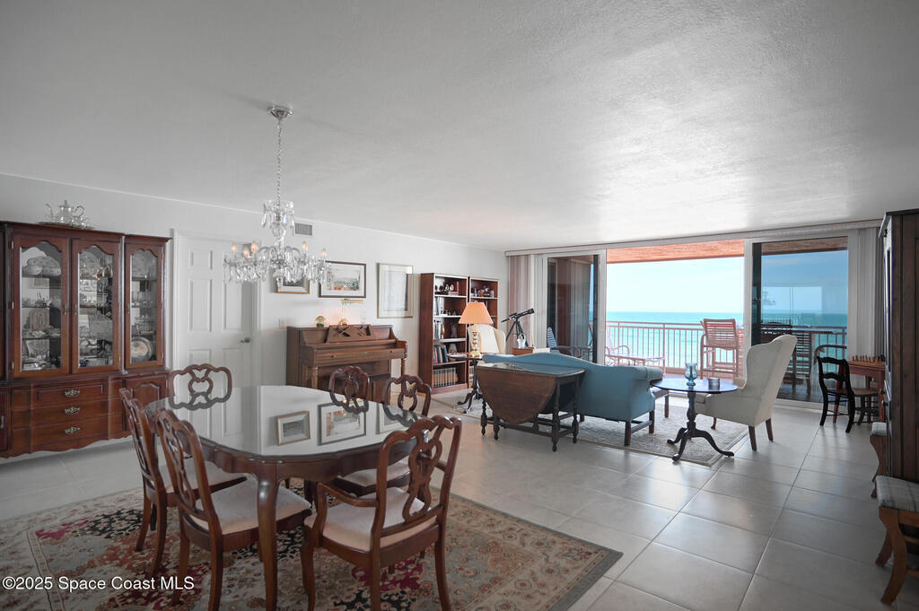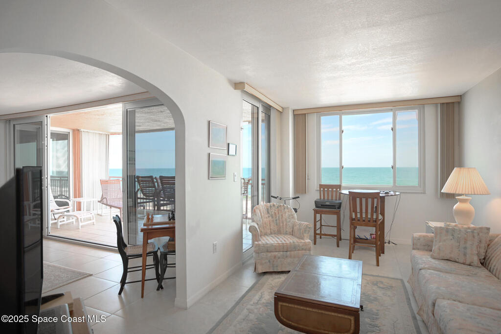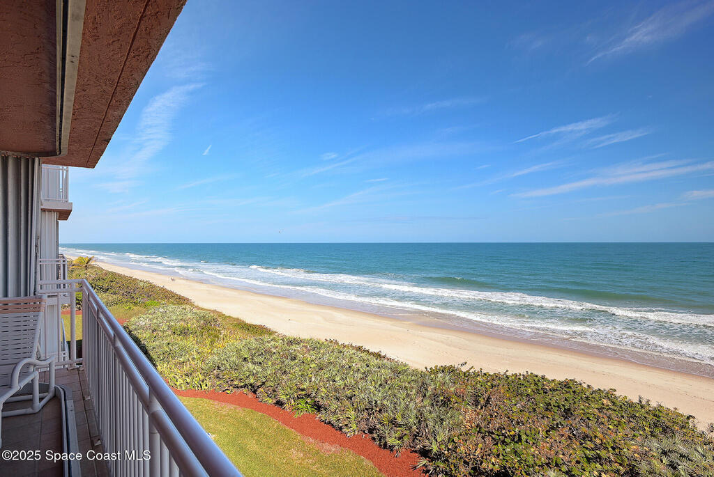 Stunning one level, 4th floor DIRECT oceanfront condo has the best views of rocket launches and sea turtles nesting and hatching right from your balcony. Spacious condo has tile floors throughout and is the perfect height to view both the sunrise over the ocean and the sunset over the Indian River. In addition to three bedrooms and 3 full baths there is a bonus space that is perfect for workout spot, overflow guests, or office. Recently replaced AC/Heating inside and out. RARE TO FIND!!!! TWO CAR GARAGE indoor parking spaces along with 2 storage closets. Building freshly painted. Love the great room and huge balcony overlooking the ocean, sand and occasional beach stroller. Breakfast nook has amazing views of sunsets. Hurricane shutters for added peace of mind. Community offers two elevators, secure lobby, huge heated pool and hot tub, Tiki Hut, full time maintenance manager and assistant, workout room and endless expansive beach that is perfect for long walks.