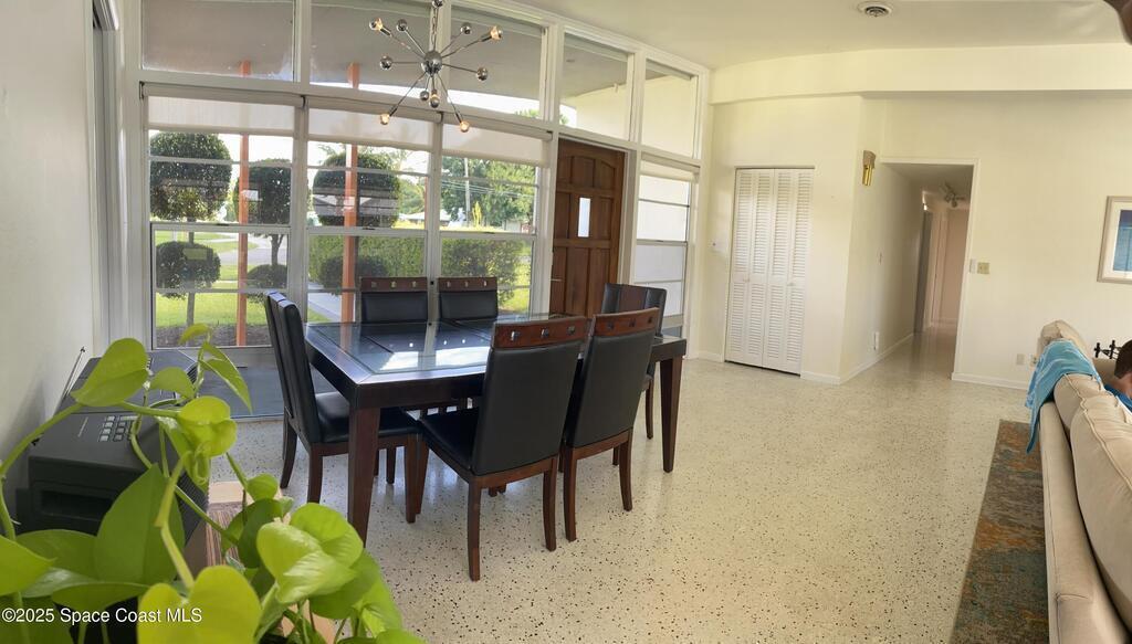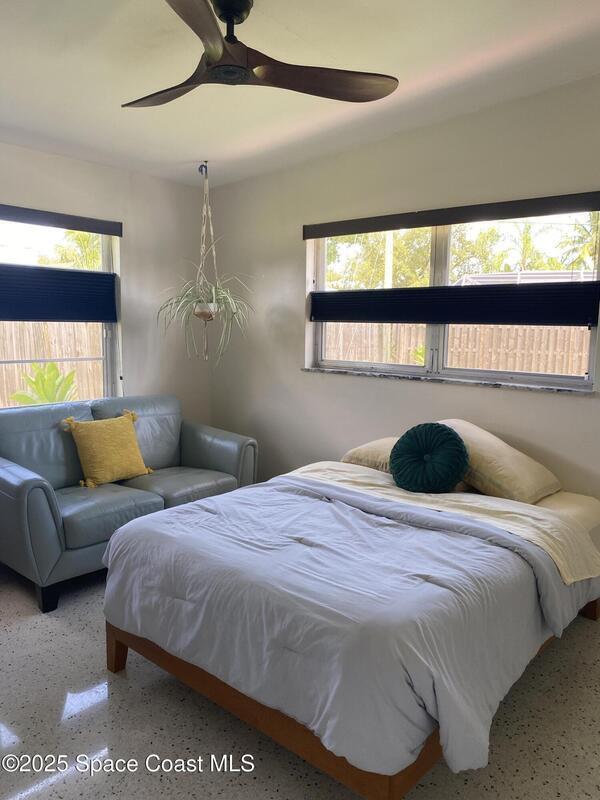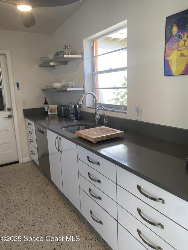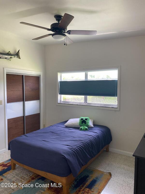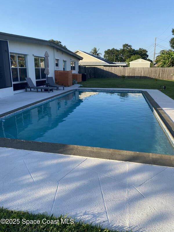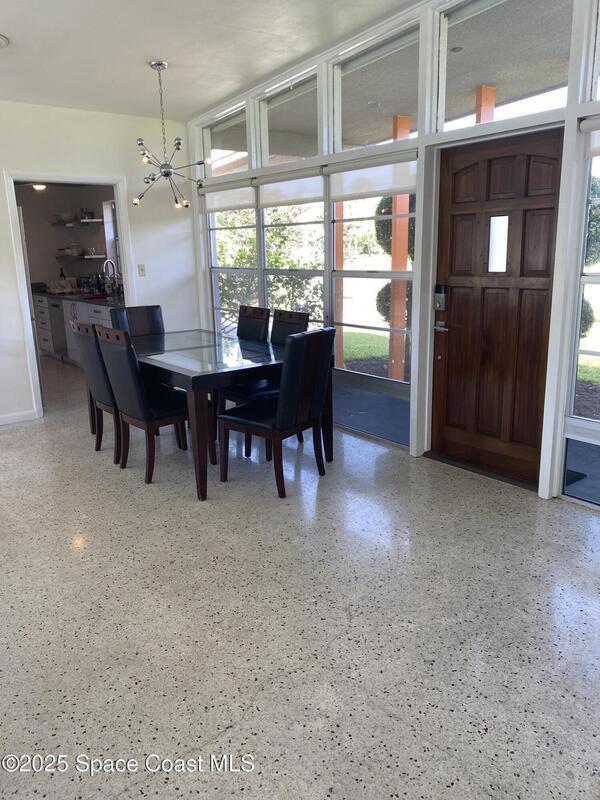 Mid-Century CBS modern home with 21st-century enhancements. No HOA, no restrictions. Desirable Vero Shores safe neighborhood, only five miles from the beach. Full hurricane protection includes shutters and custom hurricane garage doors.15X30 heated saltwater pool (2020heat pump, 2018energy-efficient V/S pool pump, 2024 saltwater system) Screened porch with ceiling fan overlooking large fenced backyard. Terrazzo floors throughout, renovated kitchen: gas range, SS appliances, custom cabinets, r/o filtration, pantry, laundry room. Features high ceilings-bright airy interiors. Electric updated:200amps/2020, insulated 2-car garage, 2018 Main H20 line repiped w/new shut-off valve. Located close to shopping, pharmacy, gas, and groceries. Seller is motivated. Rmsizeapprox.