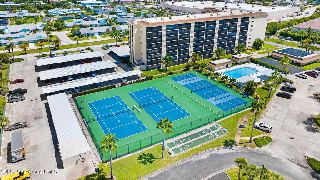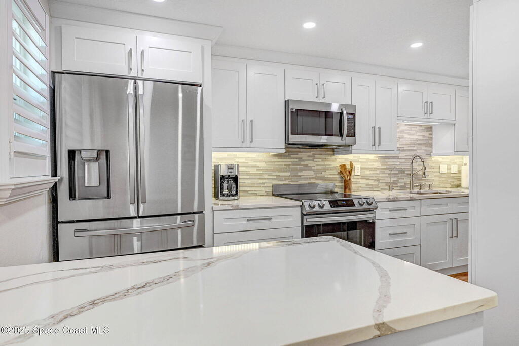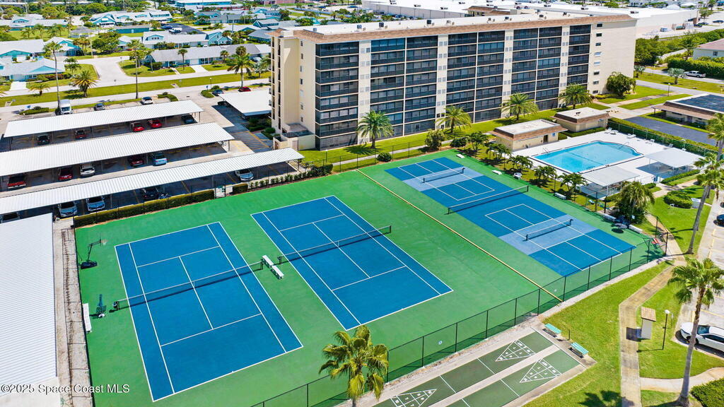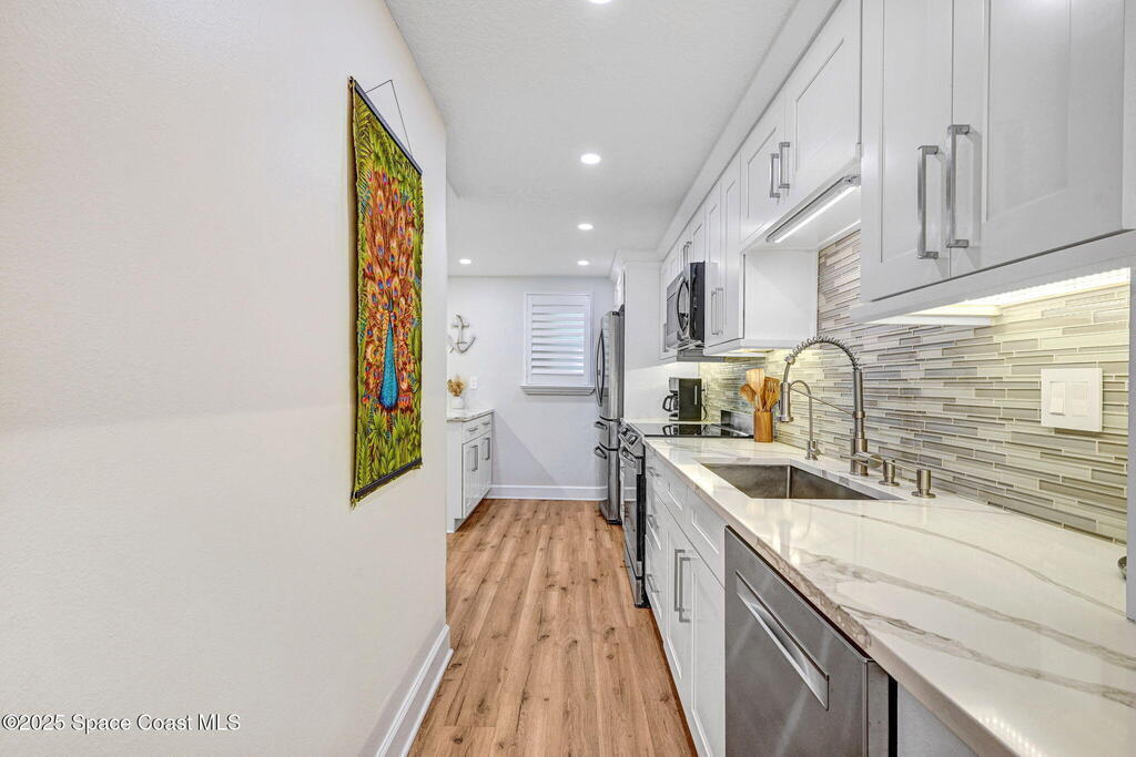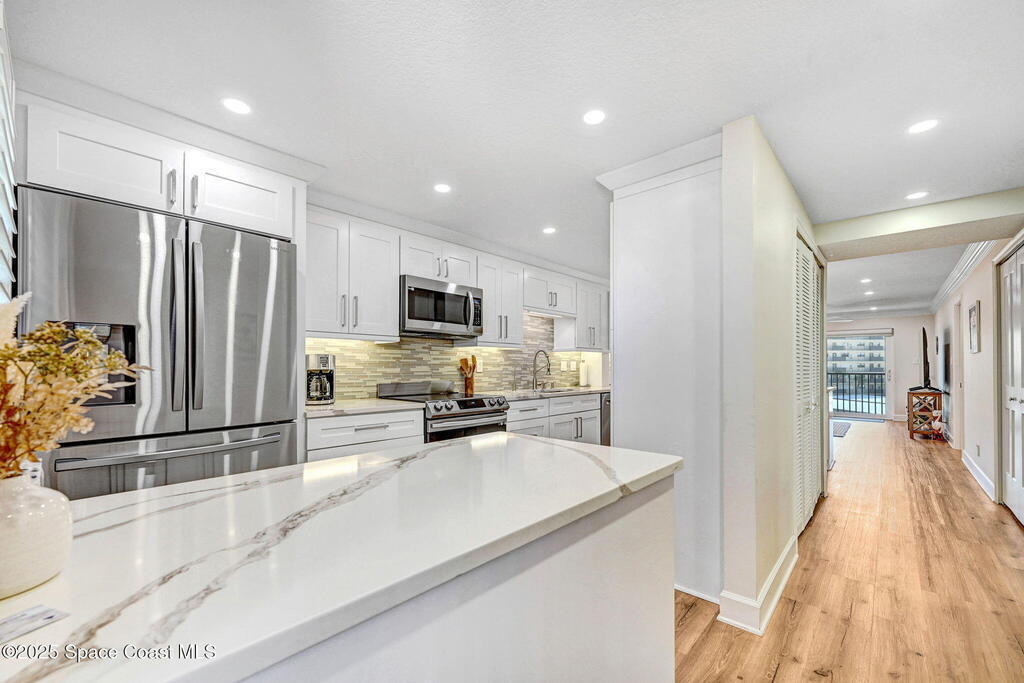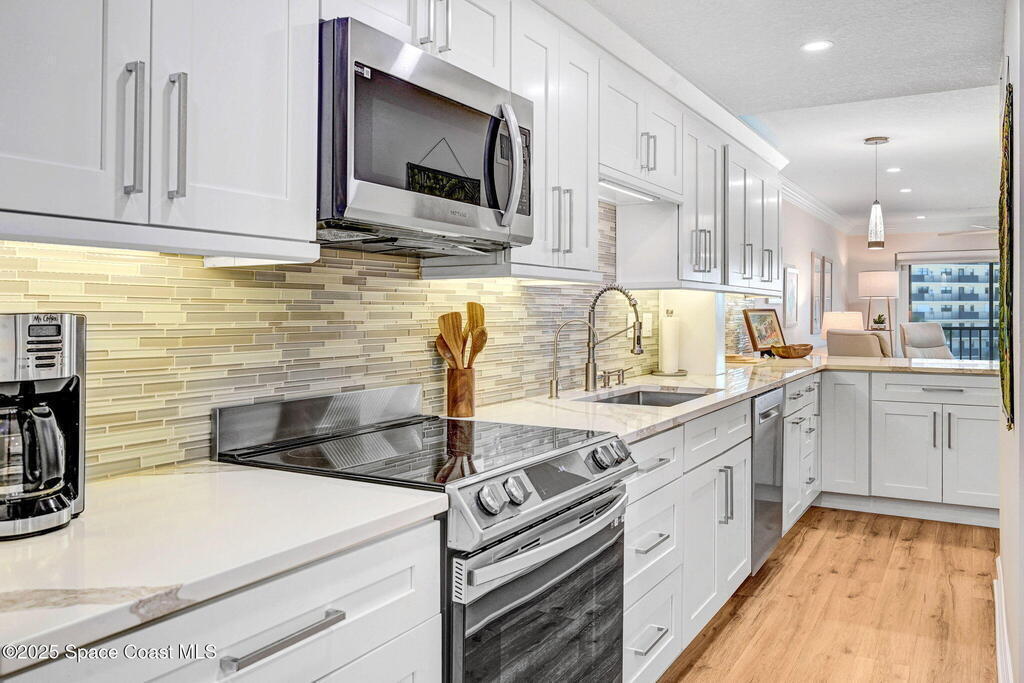 Discover coastal living at its best at 500 Palm Springs Boulevard #408, Indian Harbour Beach. This fully remodeled condo is move-in ready and beautifully upgraded with modern finishes throughout. Step inside to find a stylish kitchen featuring quartz countertops, soft-close cabinetry, and all appliances included. The open living and dining areas showcase luxury vinyl plank flooring, creating a warm and inviting atmosphere. Enjoy the convenience of an in-unit washer and dryer and the peace of mind that comes with impact windows. Relax knowing you have your own covered parking spot, and take advantage of the community's impressive amenities -- including basketball, tennis, pickleball, shuffleboard, a sparkling pool, and a clubhouse. Best of all, you're just a short bike ride to the beach, where you can soak up the Florida sunshine every day. This condo perfectly blends comfort, style, and location.