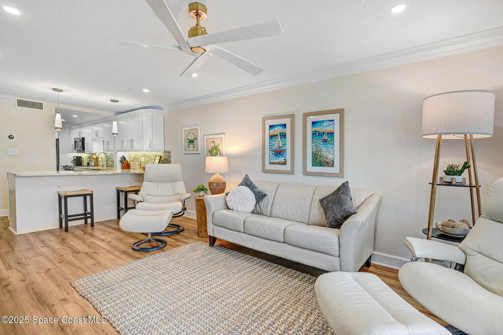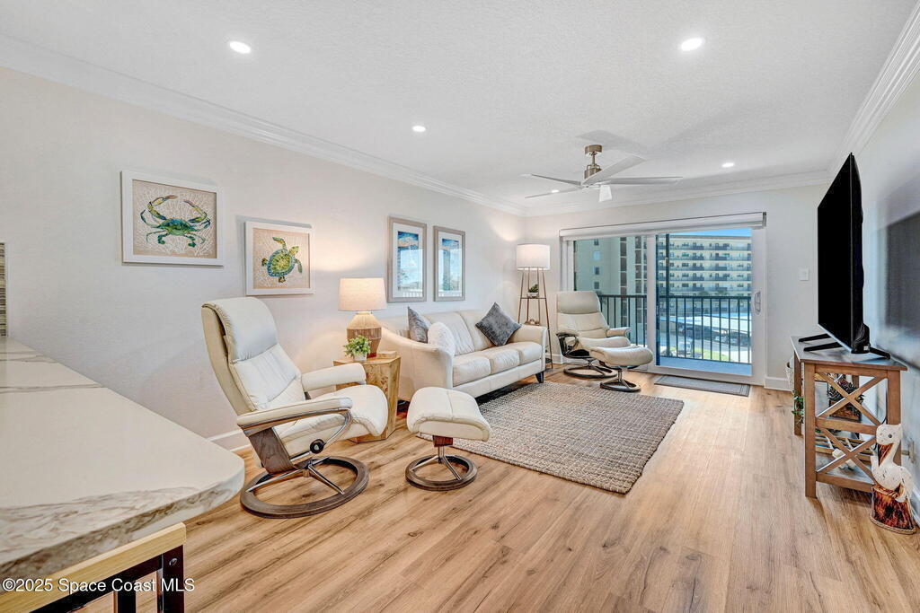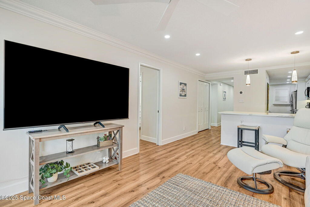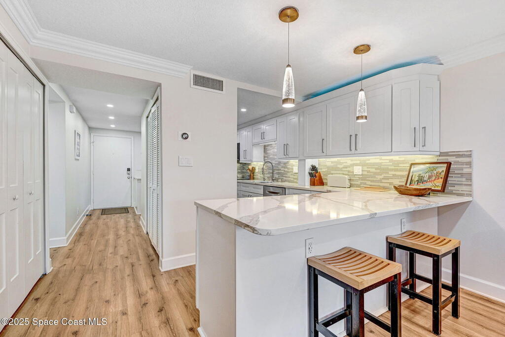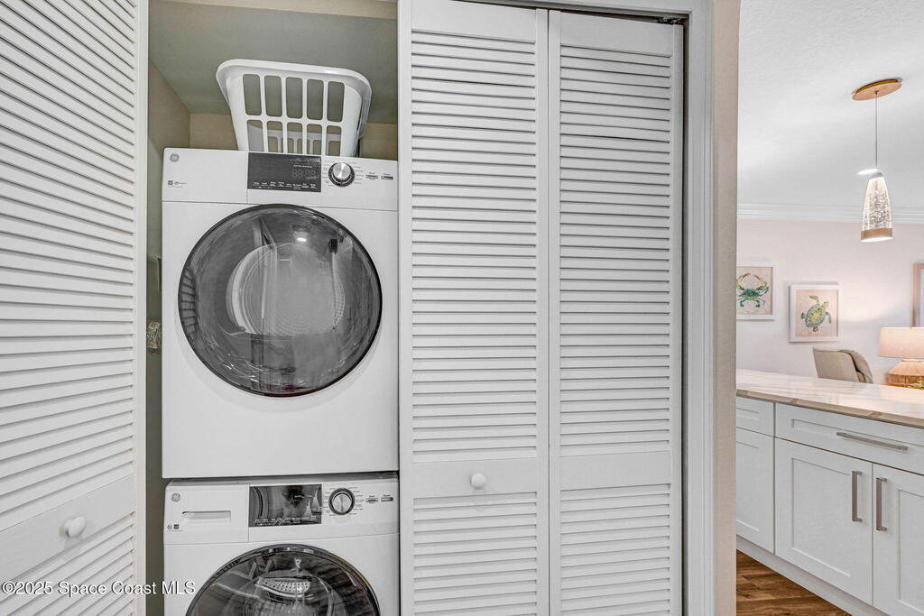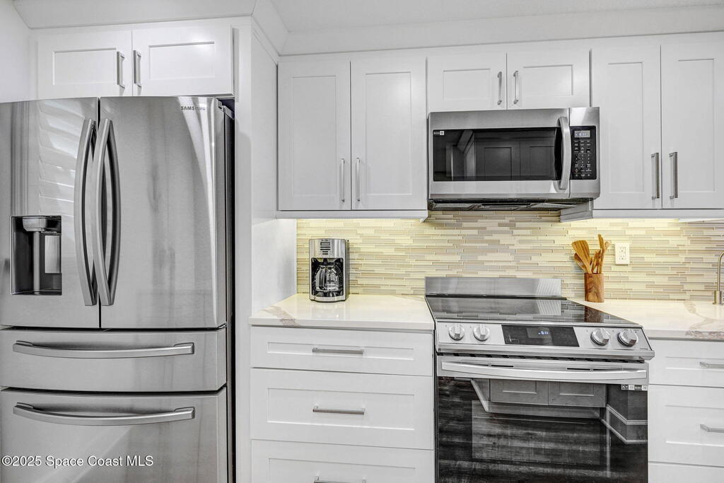 Discover coastal living at its best at 500 Palm Springs Boulevard #408, Indian Harbour Beach. This fully remodeled condo is move-in ready and beautifully upgraded with modern finishes throughout. Step inside to find a stylish kitchen featuring quartz countertops, soft-close cabinetry, and all appliances included. The open living and dining areas showcase luxury vinyl plank flooring, creating a warm and inviting atmosphere. Enjoy the convenience of an in-unit washer and dryer and the peace of mind that comes with impact windows. Relax knowing you have your own covered parking spot, and take advantage of the community's impressive amenities -- including basketball, tennis, pickleball, shuffleboard, a sparkling pool, and a clubhouse. Best of all, you're just a short bike ride to the beach, where you can soak up the Florida sunshine every day. This condo perfectly blends comfort, style, and location.