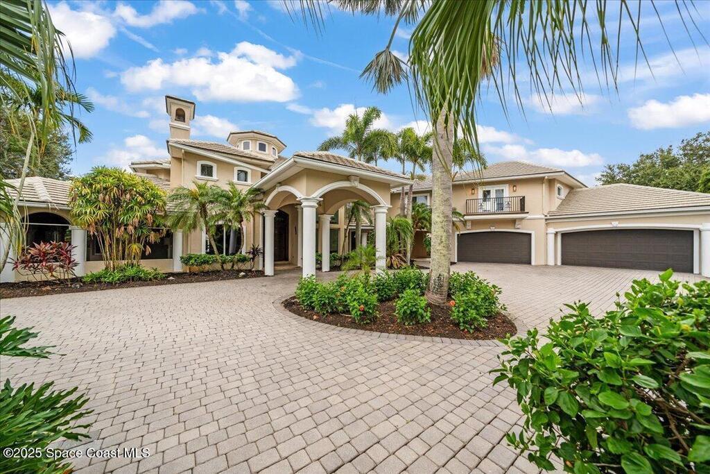 Welcome to 154 Lansing Island Drive, a residence that embodies the very best of waterfront luxury in Brevard County's most prestigious gated community. Lansing Island is known for its exclusivity, guarded gatehouse, and iconic drawbridge entry, yet it is this estate's extraordinary setting that truly sets it apart. Resting on one of the larger lots on the island, measuring 1.19 acres, the property enjoys an unrivaled position with nearly 300 feet of water frontage, capturing almost 180 degrees of water views.This phase of Lansing Island was originally reserved as the developer's lots, chosen for their premier size and setting. While most homes on the island rest on smaller parcels with limited outdoor space, this estate offers a rare abundance of backyard grounds. Expansive lawns shaded by a central oak create a true estate feel, something seldom found here, offering the ideal setting for entertaining on any scale.