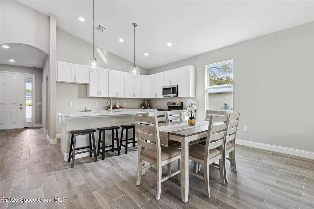 NO CLOSING COST LOANS AVAILABLE. One or more photo(s) has been virtually staged--New Construction. This Luxurious 4-bedroom, 2 Bath Property is exquisitely built with all of the upgrades nestled in the heart of Palm Bay. Inside you will find a wonderfully open floor plan perfect for gatherings and entertaining. The capacious Chef's Kitchen is stylishly equipped with a prep island, solid wood cabinets, stainless steel appliances and ample storage. The contemporary living space is bursting with natural light and a flowing layout that is inviting and relaxing. Luxuriate in the vast Primary Suite that offers a collection of modern conveniences. This beautiful house is full of INCLUDED upgrades: solid wood soft close cabinets in the kitchen and in the bathrooms, luxury vinyl plank flooring (no carpet), and floor-to-ceiling tiles in the showers, bathroom niches, granite countertops in the kitchen and baths, 9'4'' ceilings, 8-foot doors and an electric garage with controls.