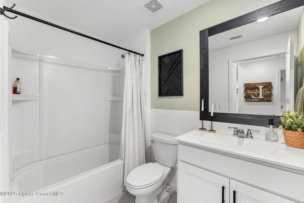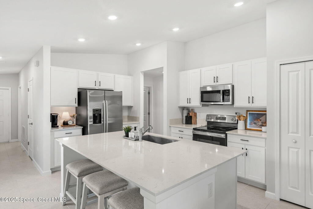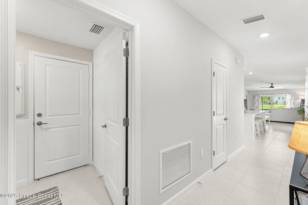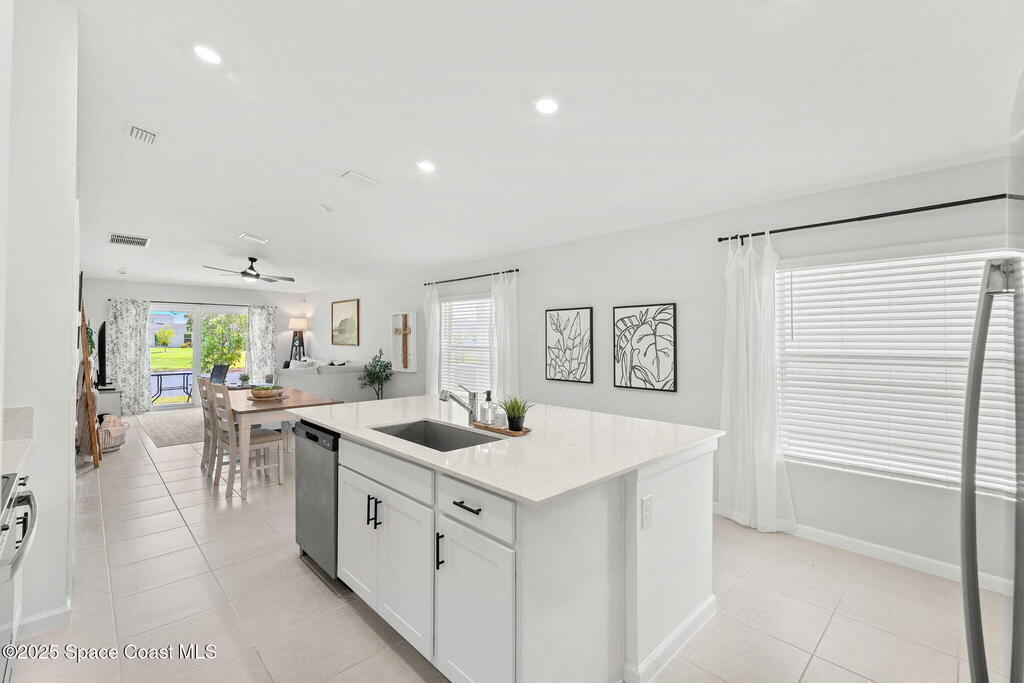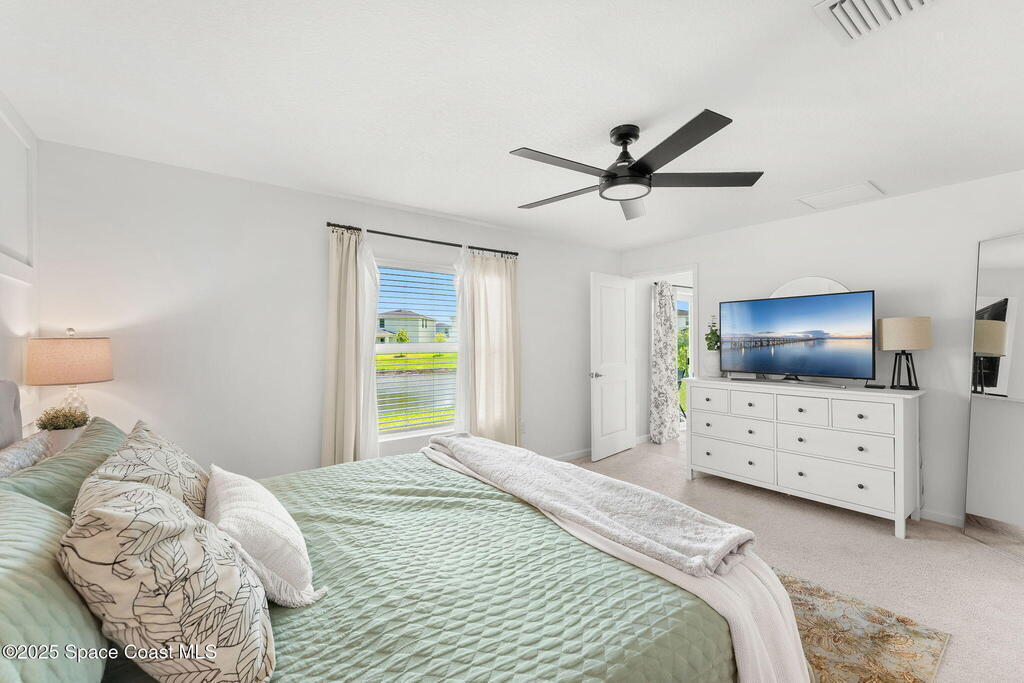 Discover this stunning, like-new home in the desirable gated community of Tillman Lakes in Palm Bay! Built in November 2023, this meticulously maintained 3-bedroom, 2-bath residence blends modern design, comfort, and thoughtful upgrades throughout its 1,451 sq. ft. of living space.Step inside to an open and inviting split floor plan that's perfect for everyday living or entertaining. The chef-inspired kitchen is a true centerpiece, featuring quartz countertops, a large farmhouse sink, stainless steel appliances, and upgraded hardware on the kitchen and bath cabinets.You'll love the hurricane-impact windows for peace of mind and energy efficiency, Venetian blinds throughout, new ceiling fans, and a custom wood wall feature in the primary bedroom adding warmth and style. The living area and bathrooms have freshly painted accents, bringing a bright and modern touch.Additional highlights include stylish tile and plush carpet flooring, a spacious 2-car garage with storage,