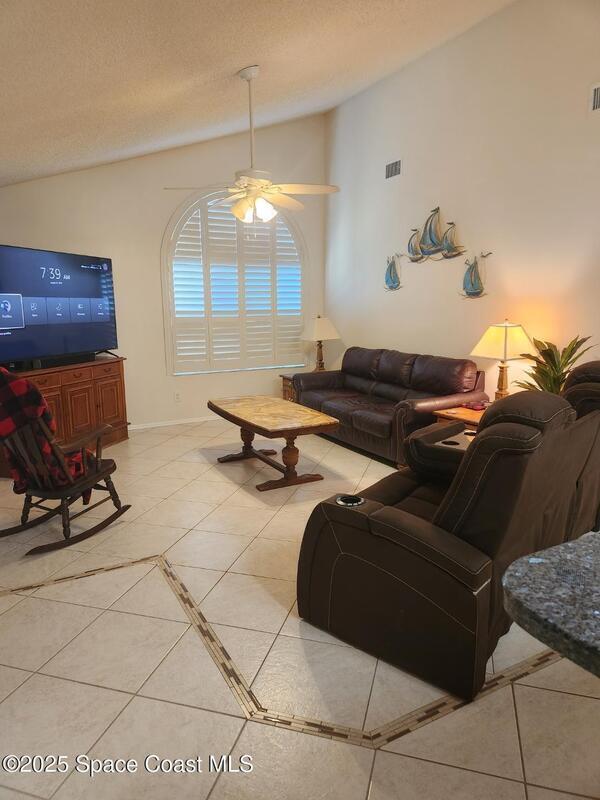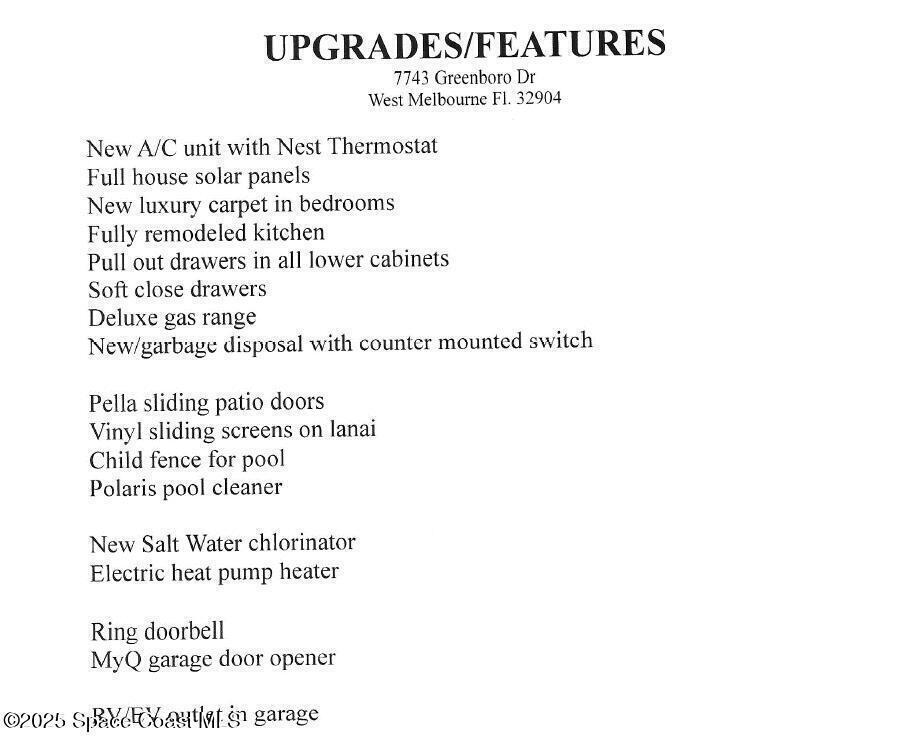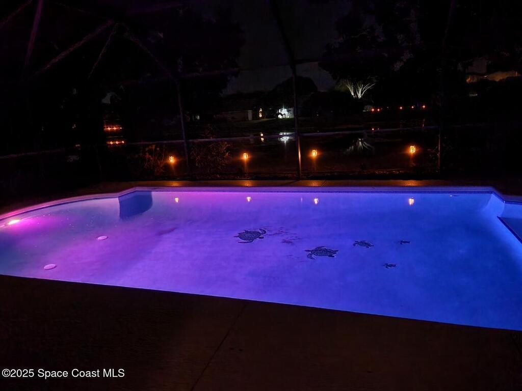 Beautiful lakefront pool home, lots of room with Vaulted Ceilings with two Skylights in the formal living room. upgraded with whole house Solar Panels- Paid in Full. EV Charger, New Roof in 2023, Interior paint in 2024, new luxury carpet in the bedrooms, New Kitchen Cabinets with soft close drawers and pull-out shelving, Granite counter tops, New pool salt system, New gas stove and new A/C and nest thermostat, 2025. the kitchen has Stainless Steel appliances and tile backsplash. The Master Bedroom has two Walkin closets. Natural Gas,The large 11 X 25 ft. patio with vinyl sliding doors is perfect for entertaining and overlooks the fully screened in pool. Conveniently located by shopping, Golfing, the Melbourne Airport, I-95 and just 15 minutes from the Beach. Your only an hour from the Orlando attractions like Disney World, Universal studios, Seaworld and more.