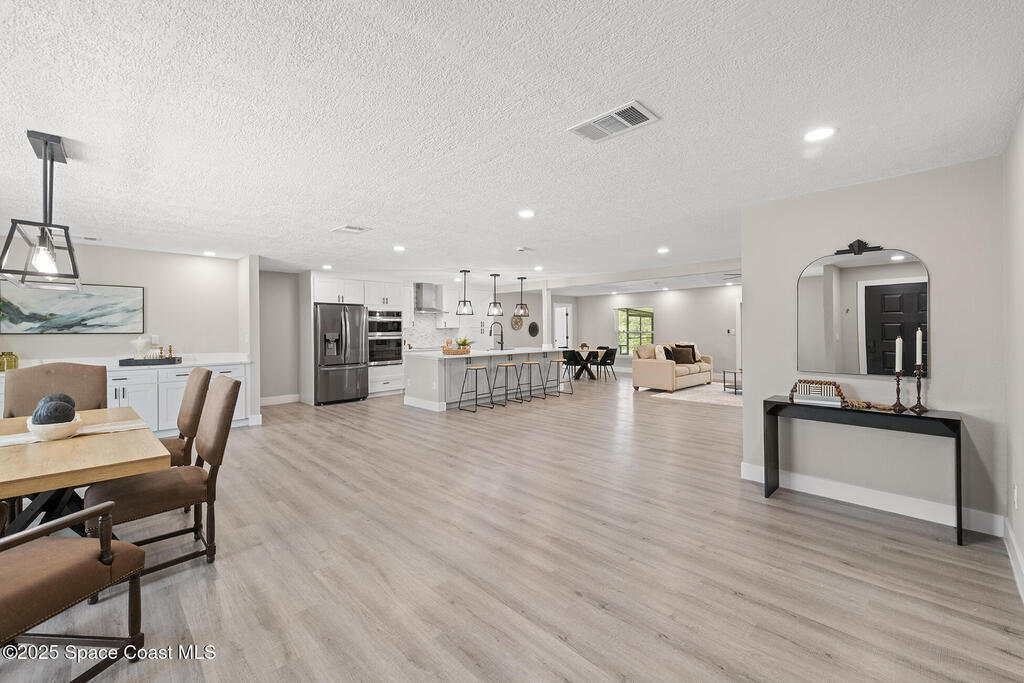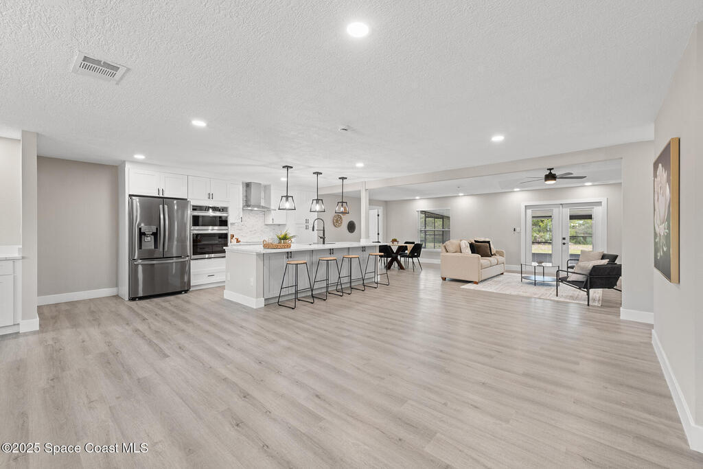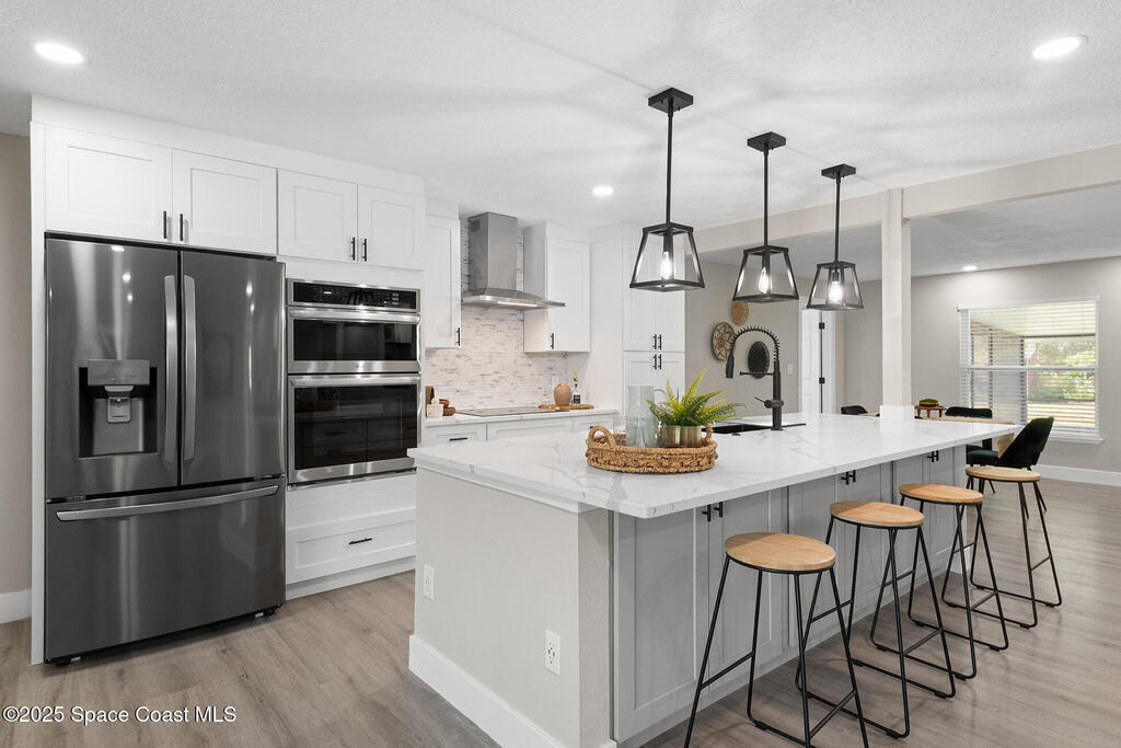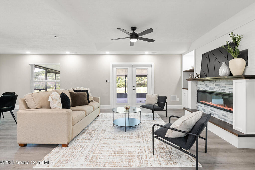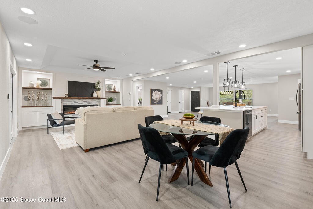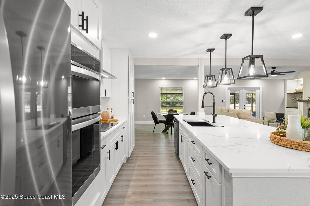 WHERE COUNTRY MEETS MODERN!!!! FULLY RENOVATED 4 bedroom 2 1/2 bathroom, just under 2700 sqft living on 1 ACRE LOT. The owner has all the upgrades and features of a new construction and wasted no cost on making this a dream home. NEW LUXURY VINYL throughout with quiet walk padding noise resistant. KITCHEN FULLY done with high-end LG stainless steel refrigerator, dishwasher, oven/microwave combo and flat stove top with hood. TONS of soft close cabinetry with quartz calcutta countertops in kitchen with a HUGE ISLAND, dining, laundry, and bathrooms. Living room has a built-in custom fireplace with shelving which includes a PRE-WIRED SPEAKER SYSTEM WITH SPEAKERS great for entertaining. HURRICANE IMPACT WINDOWS, DOORS, and GARAGE DOOR. Master bathroom is to die for, high-end tile with waterfall backsplash, custom rainshower, french drain, and dual 3-way to customize how you would like to shower. Master has own high in Bidet toilet. HUGE PATIO, black high chain-link dog-run on side of house
