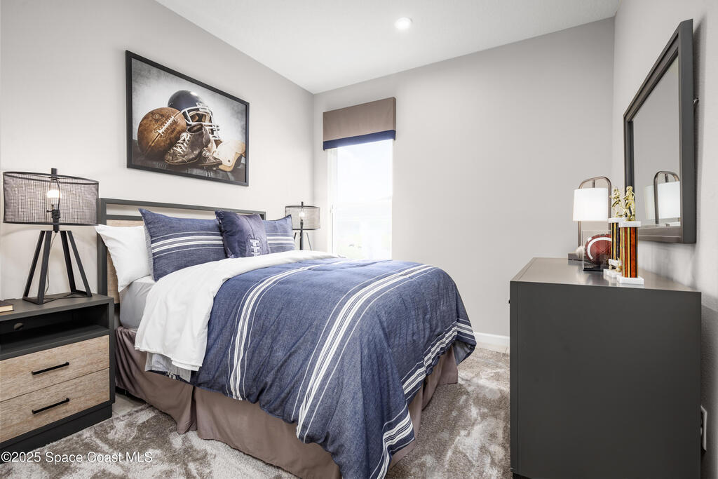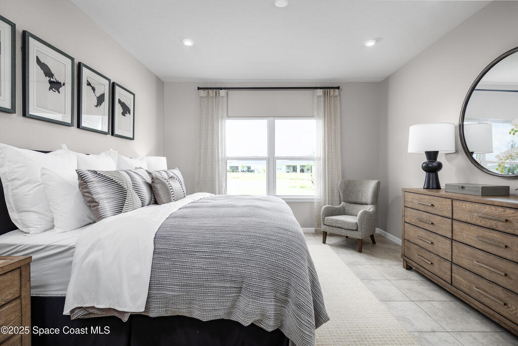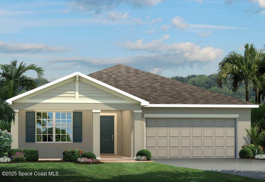 Brooks Landing. Close to area beaches, recreation & entertainment. Near Chain of Lakes Park, Indian River Lagoon, & Kennedy Space Center. The Adeline single-family home is the next level of great living. Enter through the inviting front porch or attached 2-car garage into the large foyer. Inside, laughter comes from the spacious great room, the heart of your home. The adjoining gourmet kitchen, with large center island and connected dining space, can flow seamlessly outside to a covered lanai. After you've relaxed with loved ones, let them retreat to either of 2 bedrooms while you recharge in your main-level owner's suite with its dual vanity bath and expansive walk-in closet. This is all you've wanted, all on one level. WIFI-enabled garage opener and Ecobee thermostat. Take advantage of closing cost assistance when using our affiliated lender. STOCK PHOTOS, PRICES SUBJECT TO CHANGE.