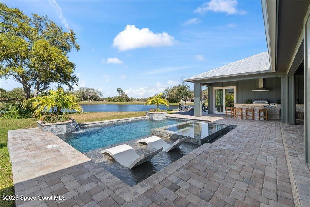 To be built in prestigious Aripeka at Viera, this stunning luxury home sits on a private cul-de-sac lot (.39 acres) with serene lake and preserve views. Featuring 5 bedrooms or 3 bedrooms + a large office, and a spacious game room, this home is designed for modern luxury living. Enjoy high-end features such as hurricane-impact windows and doors, metal roof, natural gas, spray foam insulation for energy efficiency. Entertain in style with a chef-inspired kitchen boasting Dacor appliances and quartz countertops throughout. Elegant tile flooring flows seamlessly through the open layout, leading to your private pool oasis. A 522 sq. ft. detached garage with mini-split A/C is perfect for a workshop or can be converted into a guest house with kitchenette for multi-generational living (additional cost). Located in the highly desirable Viera area, minutes from beaches, shopping, I-95, and A-rated schools.--don't miss the chance to create your dream home!