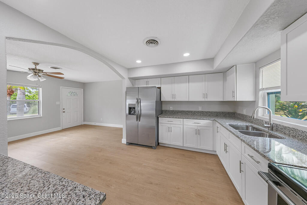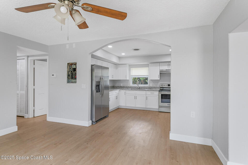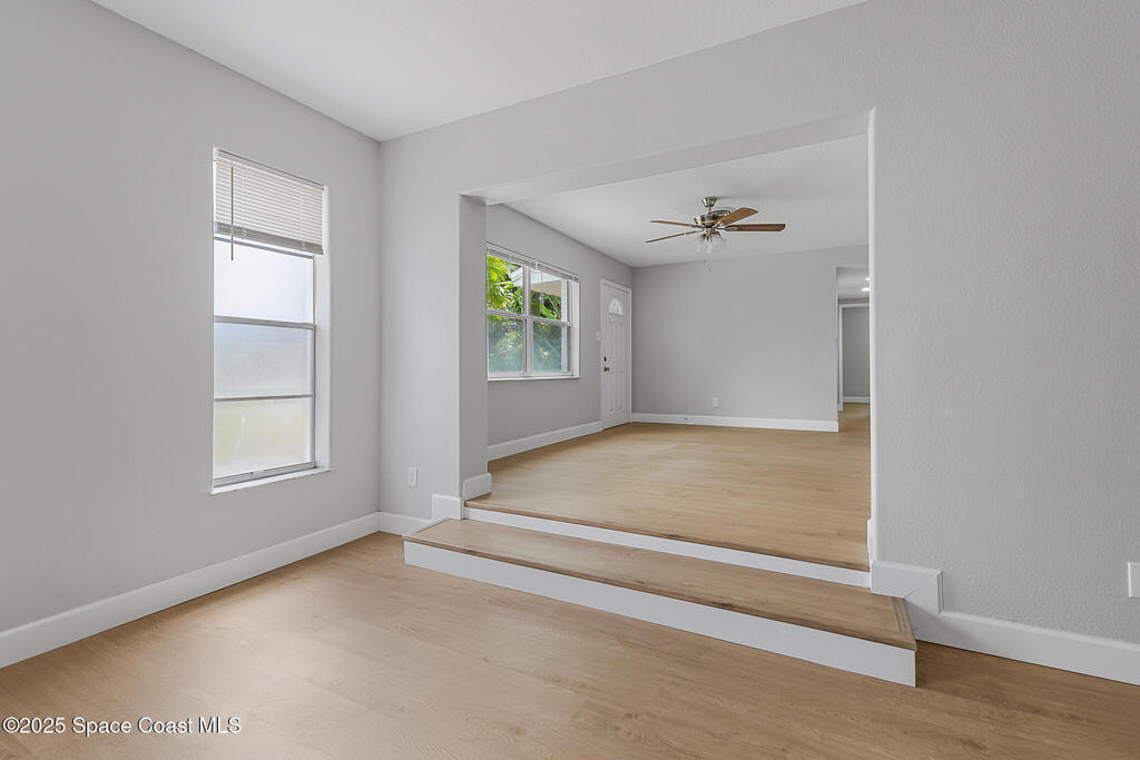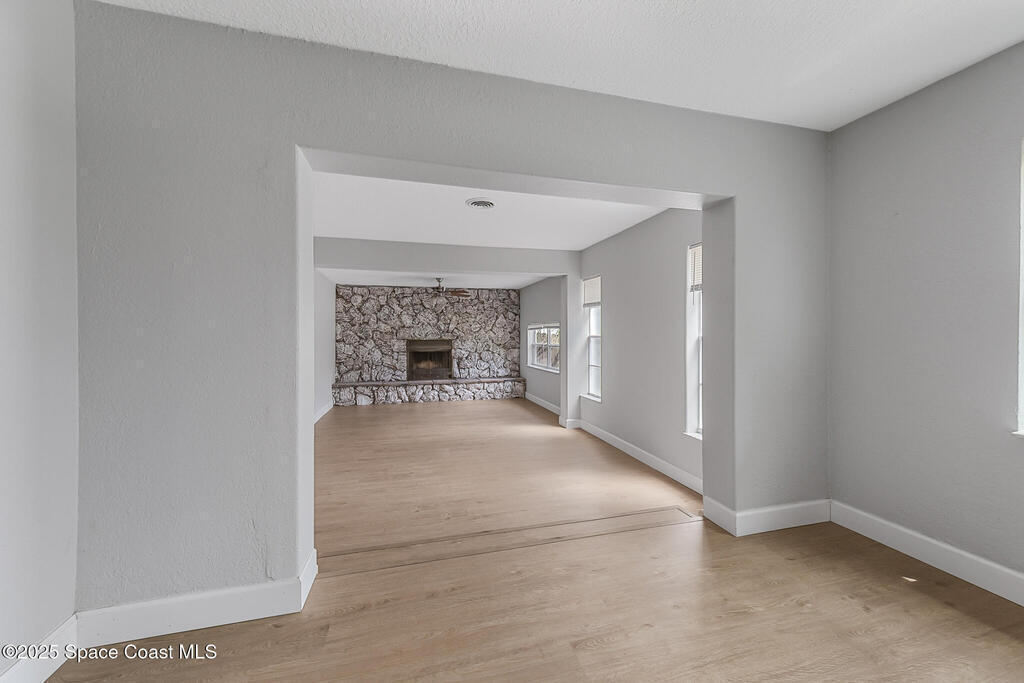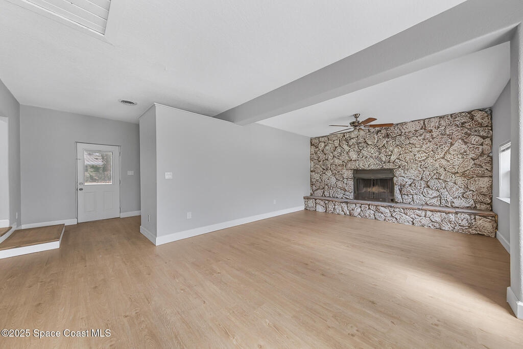 Tucked away in beautiful Merritt Island, this enchanting 2-bedroom, 2-bathroom home offers 1,128 square feet of warmth, charm, and lasting comfort. Recently updated with care, it's ready to welcome you with a brand-new roof and A/C (2025), luxury vinyl plank flooring, updated kitchen and baths, fresh paint inside and out, and an upgraded panel--ensuring peace of mind for years to come. From the moment you step inside, you're greeted by a cheerful foyer that flows into the dining space, setting the tone for a home that feels both open and intimate. At the heart of it all, the kitchen beckons with its arched entryway, generous counter space, and abundant cabinetry--offering everything you need for both quiet family dinners and lively gatherings. Just steps away, the family room feels like the soul of the home. With its striking stone-accented fireplace and sunlight streaming through walls of windows, it's a place to cozy up during cool nights or simply bask in the warmth of natural