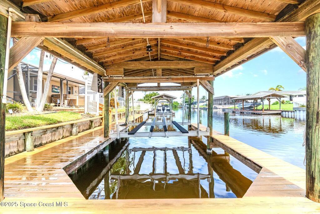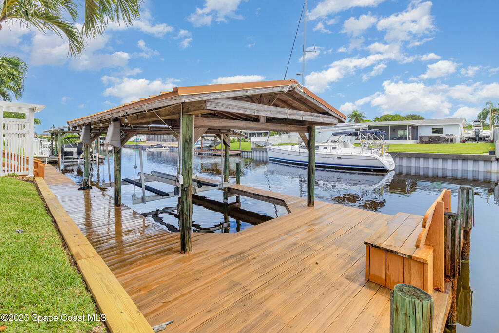 This Canal Front home in Satellite Beach is waiting for you!4 beds, 2 full baths, open concept floorplan with split bedrooms, hard surface flooring, gas appliances and inside laundry! Outside a Sparkling Heated screened in pool! An 80ft canal lot & boathouse with newer dock decking (2023), newer poles & boatlift cable (2023) and recently DREDGED CANAL (2025) Await you! The home also features a Metal Roof (2016) & a Generac Home Generator! The home has a two car attached garage PLUS a bonus outside Storage Room by Generator! Hurricane Shutters Surround the home! The canal has access to both the Banana River & Indian River! You will be a short distance to the beach, have easy access to I-95, restaurants, shopping, Holmes Regional Medical Center, Melbourne-Orlando International Airport, Northrop-Grumman, L3Harris, SpaceX, Blue Origin and more! Satellite Beach is about 30 minutes from NASA, KSC, Port Canaveral and about One hour from Disney World & Universal Studios