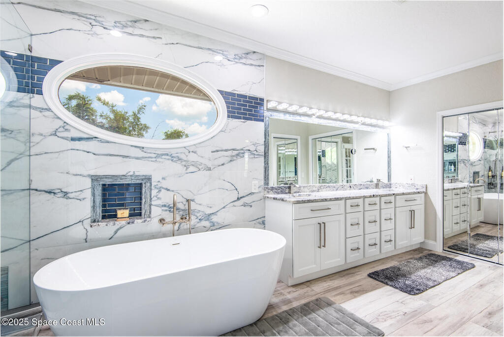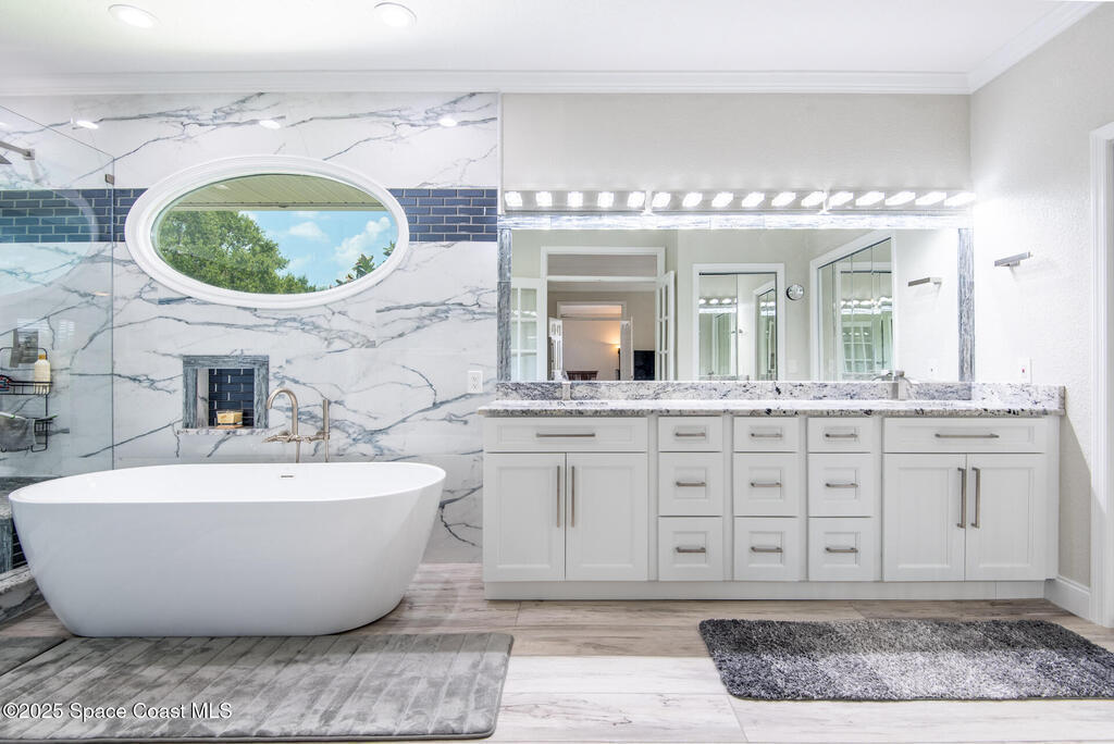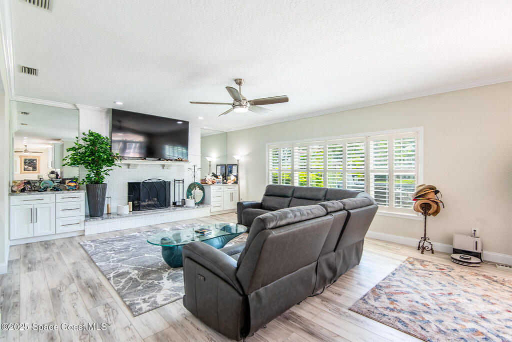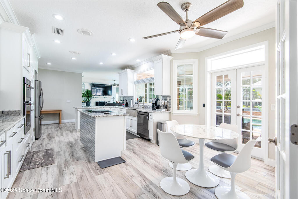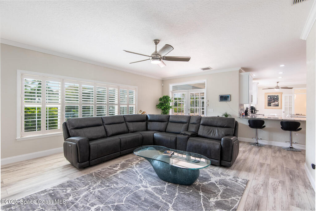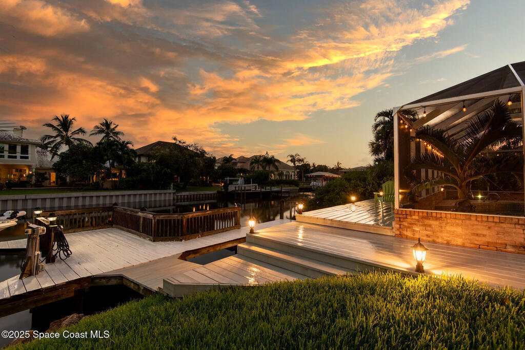 Exquisite canal front residence in the amazing Windward Cove subdivision in the Kiwi Racquet and Fitness Club neighborhood offers luxury living with four bedrooms, three bathrooms, and an impressive 3,643 sq ft of meticulously crafted interiors. A boater's dream, the property boasts 97 feet of pristine water frontage, a private dock with a boat lift, brand new deck and direct access to navigable Banana River. The screened-in pool and spa outdoor provides splendid entertainment. Living room with gas fireplace overlooking the amazing spacious kitchen with island, granite counter tops and fully remodeled cabinets. All three bathrooms tastefully remodeled. Hurricane impact windows provides the perfect comfort in Florida living. New roof in 2021 and the whole house with high end luxury lifetime vinyl plank floor. This rare waterfront sanctuary seamlessly combines elegance, exclusivity, and the ultimate coastal lifestyle.