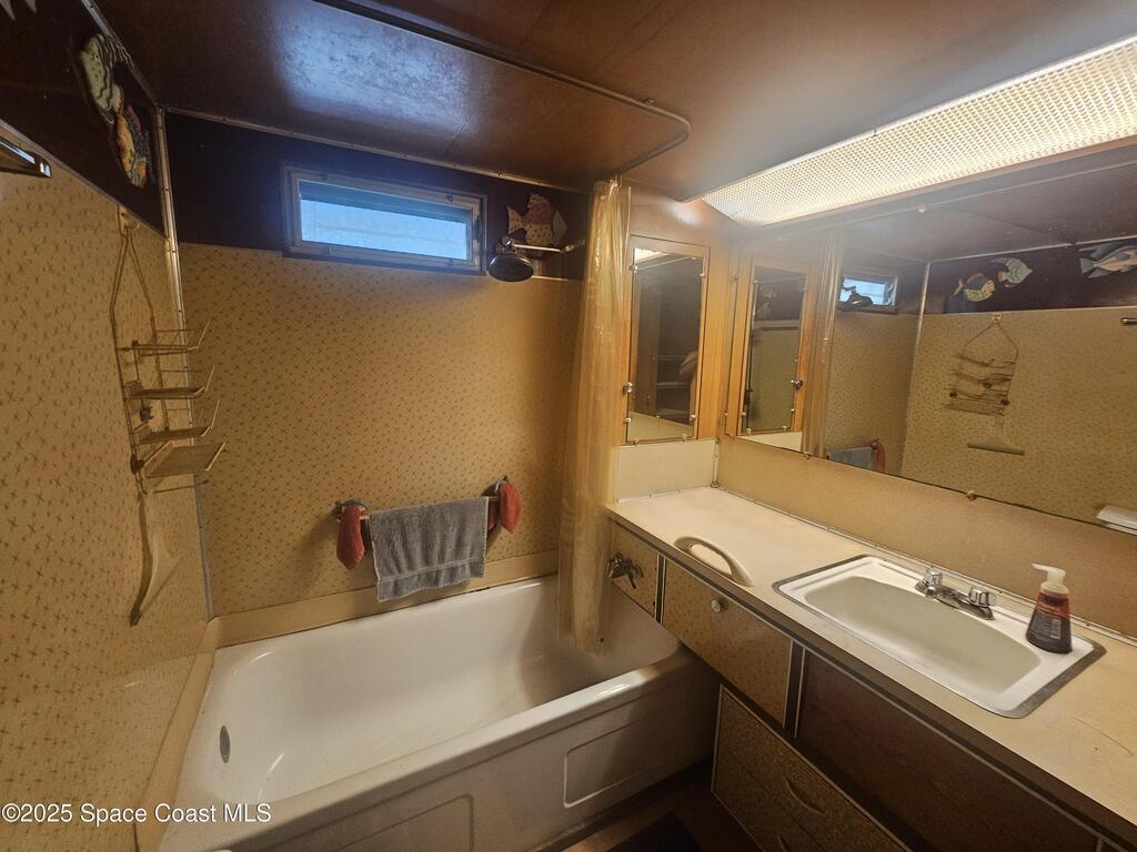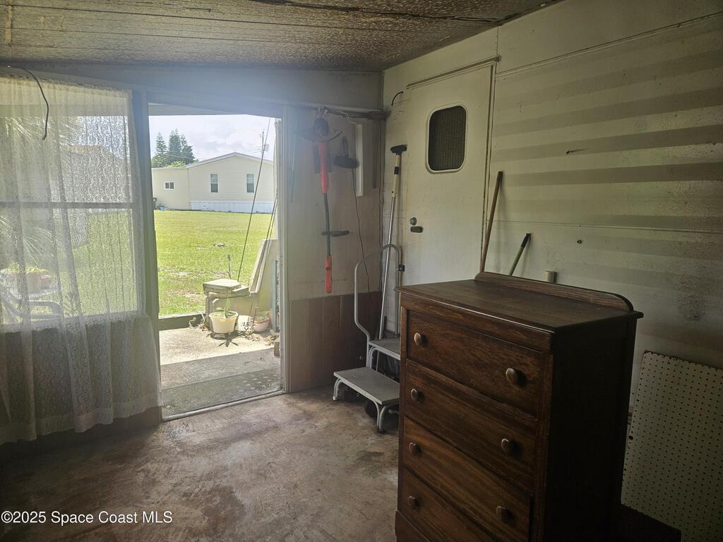 LOWEST PRICED trailer in the county!! This home has withstood 29 Florida hurricanes since 1959. All appliances in working condition. Has a metal roof over the trailer roof and thus no leaks. Laminate floor is solid. Has an enclosed 300 sf room to store your kayak or set up a workshop? Has washer/dryer hookups. Sits up on elevated lot. **Over 55 community with clubhouse, pool, and a dock on Turkey Creek. is just 15 minutes to Beach or I-95.